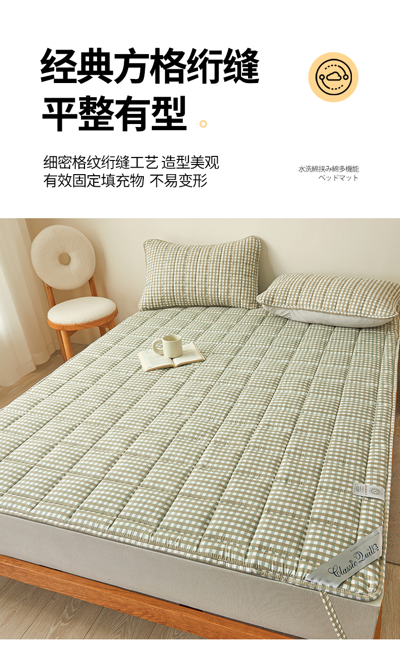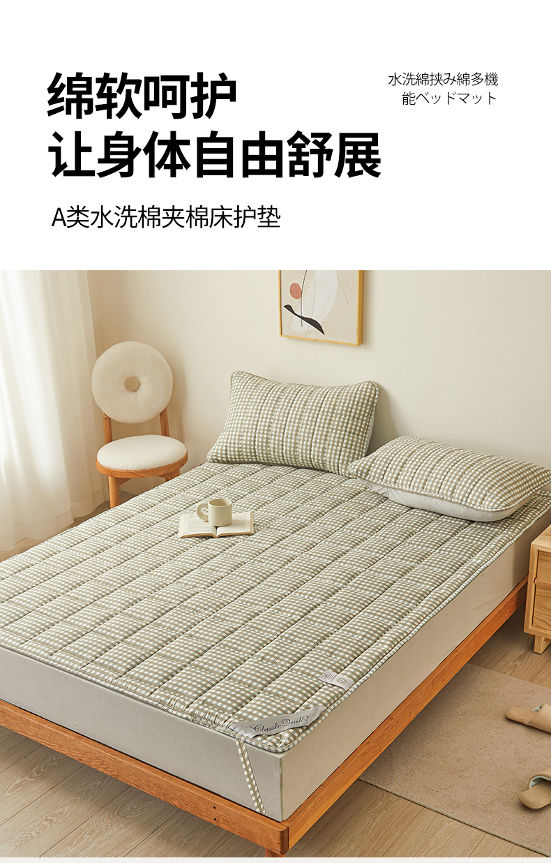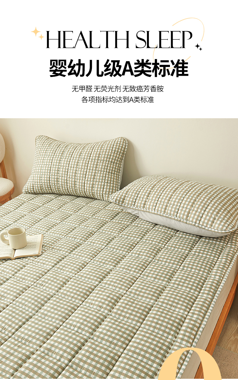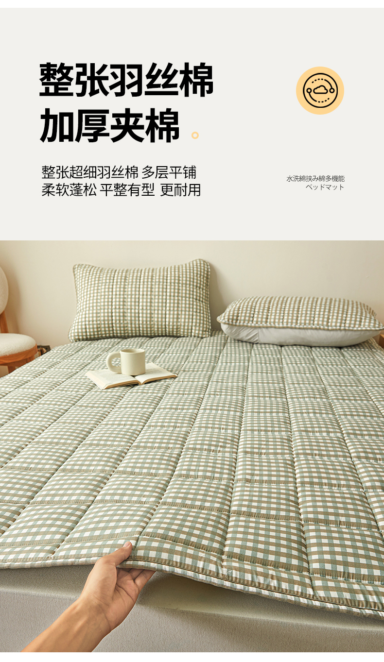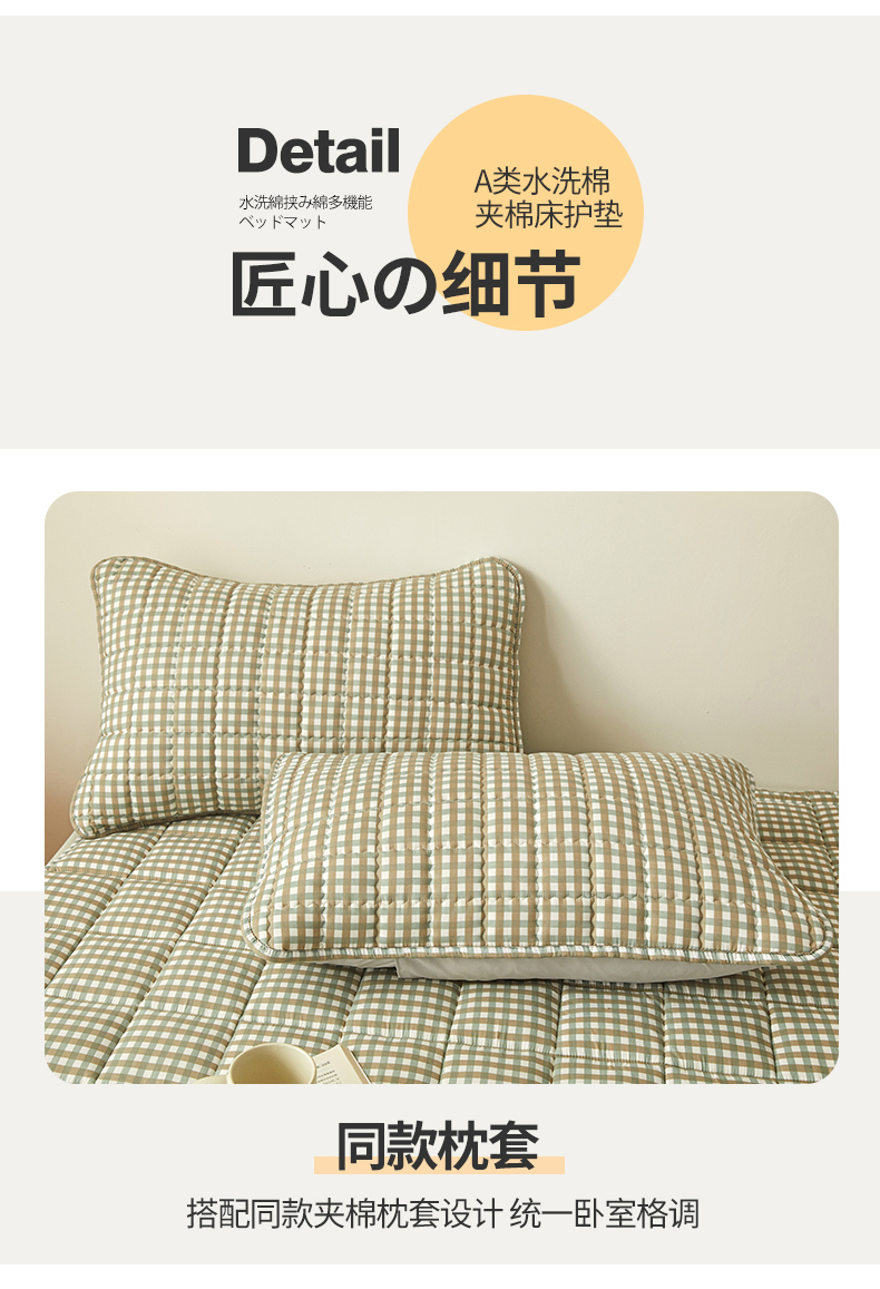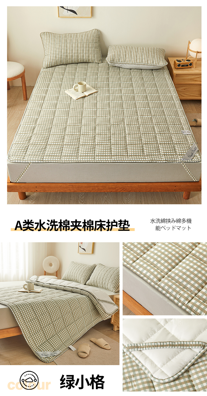满羽家纺 2023新款加厚水洗棉夹棉床护垫床垫 绿小格