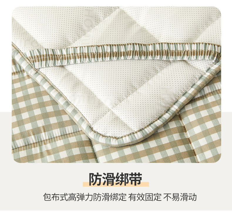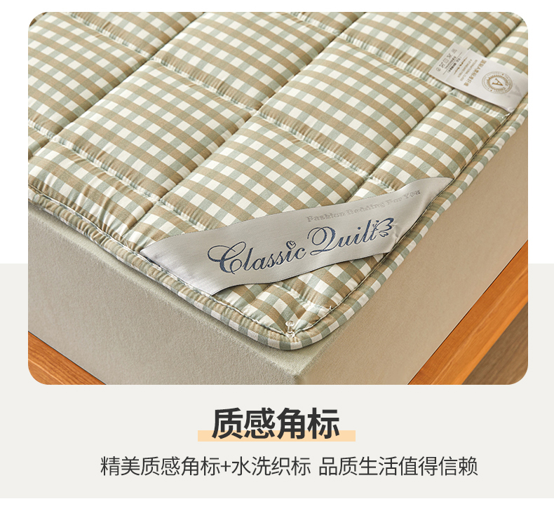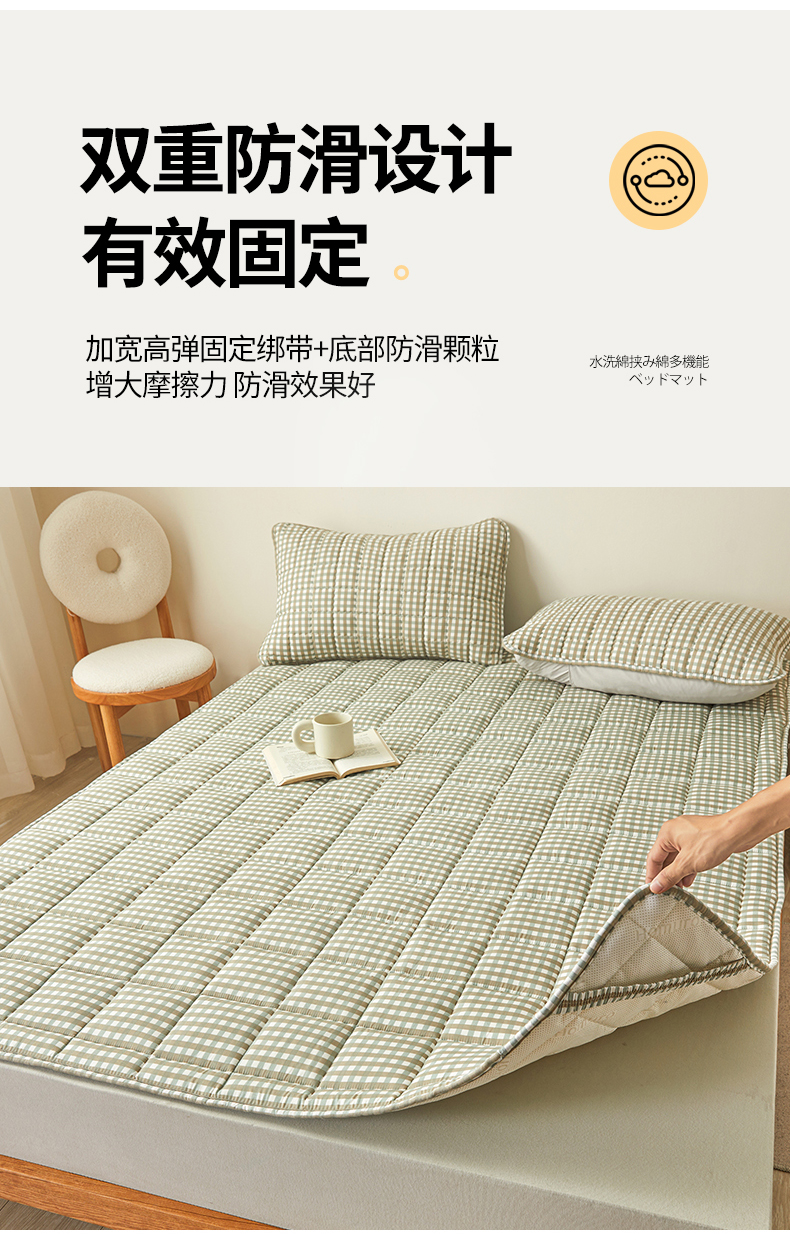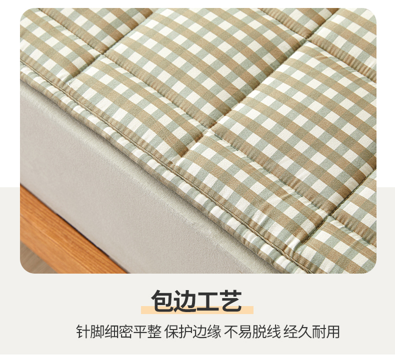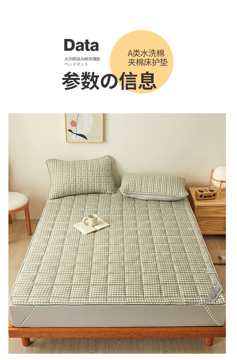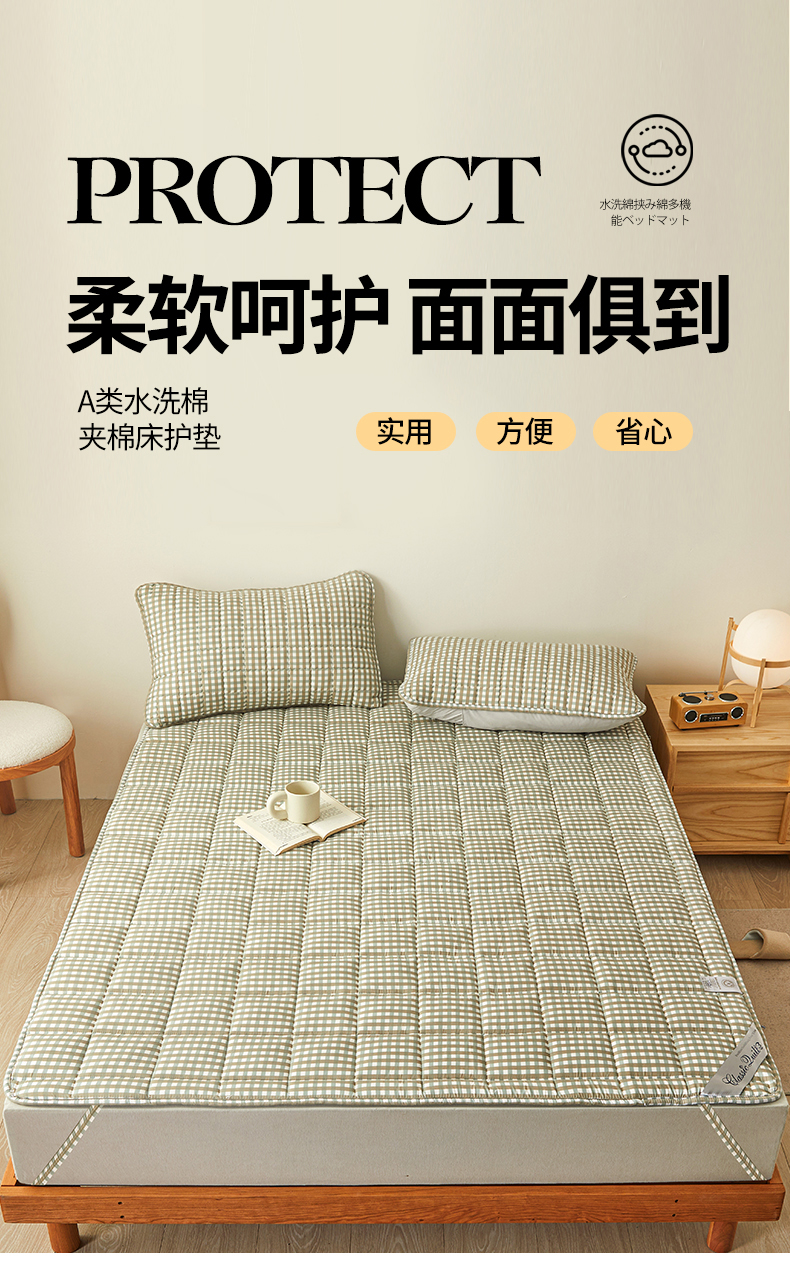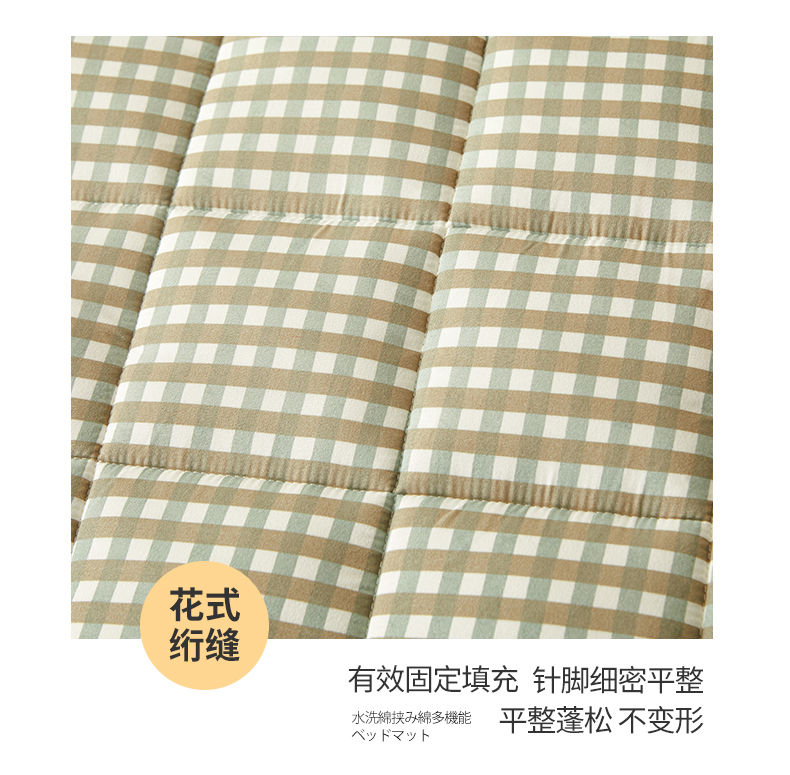 满羽家纺 2023新款加厚水洗棉夹棉床护垫床垫 绿小格