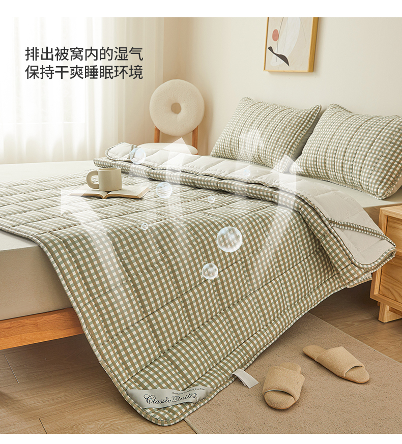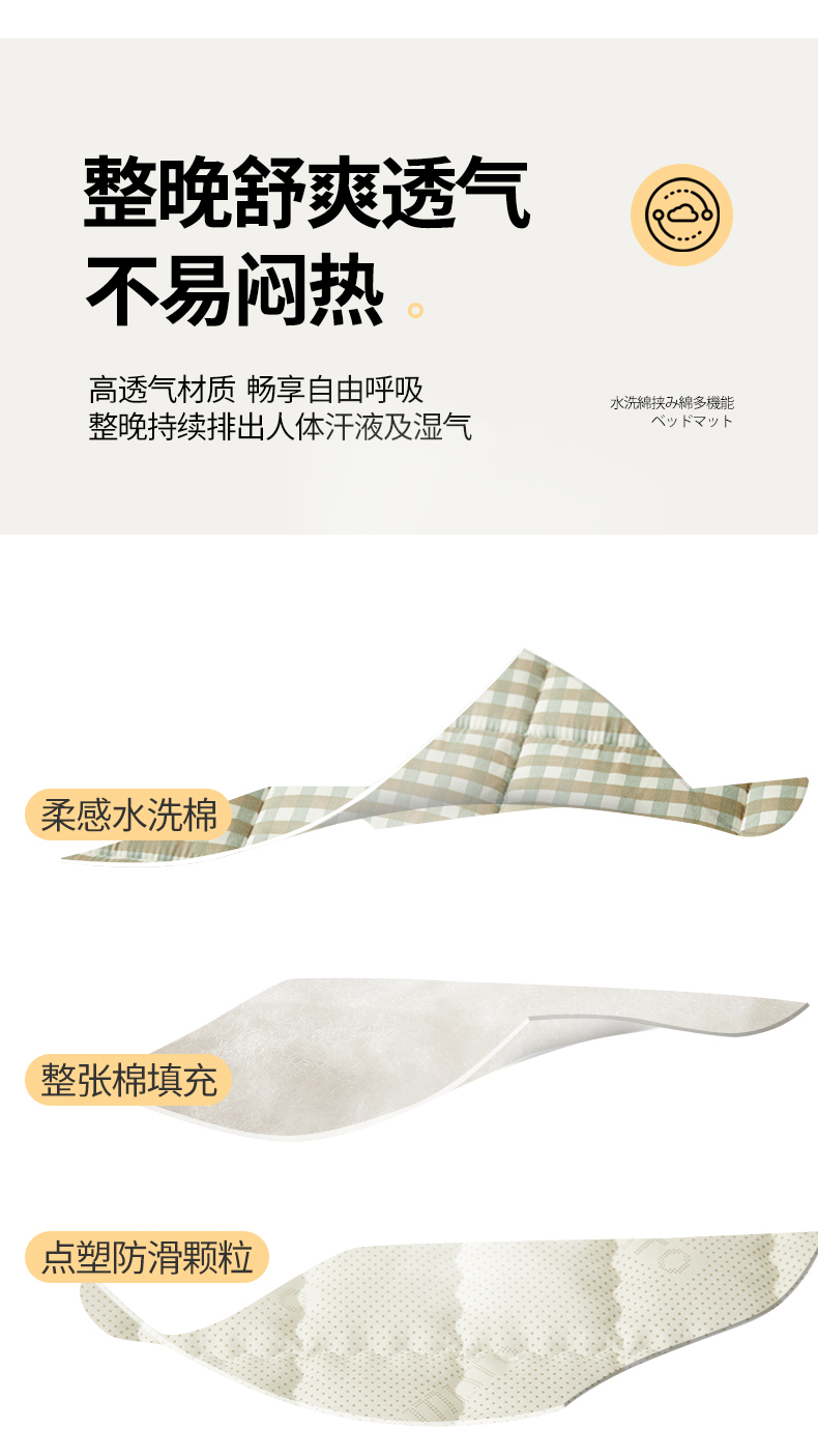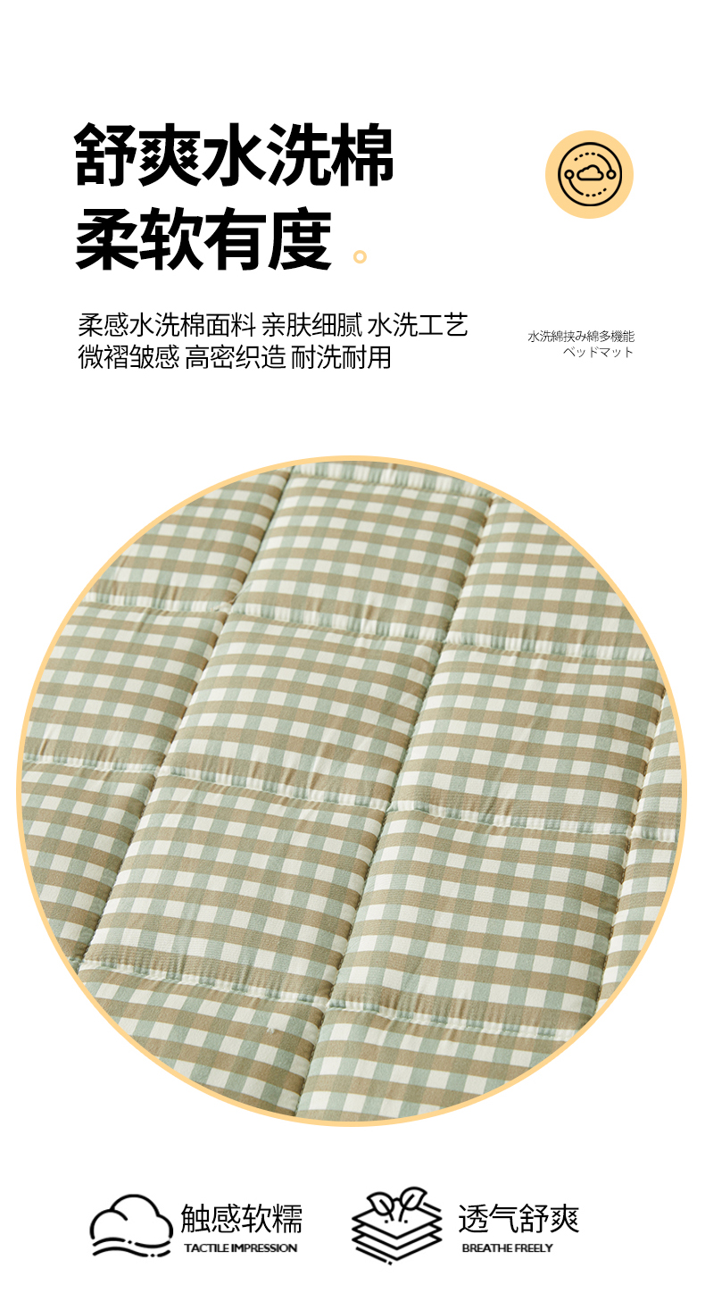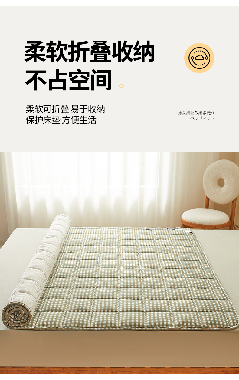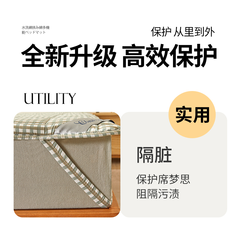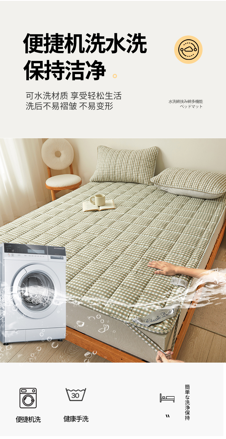 满羽家纺 2023新款加厚水洗棉夹棉床护垫床垫 绿小格
