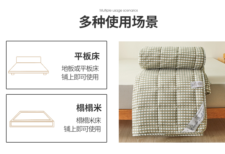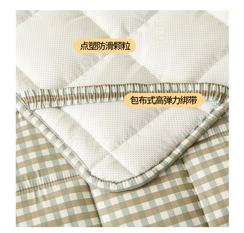 商品名称:满羽家纺 2023新款加厚水洗棉夹棉床护垫床垫 绿小格