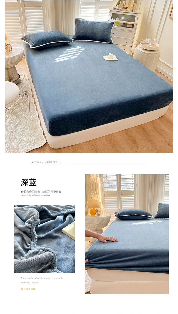 857 2023新款牛奶绒床笠 深蓝