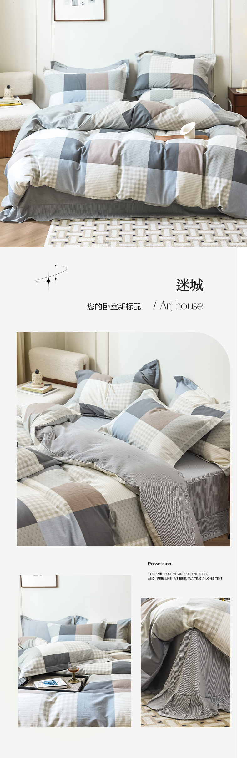 (总)卡巴伦家纺 2025新款全棉超细旦磨毛刺绣拼接四件套-旷野(会员:-20元 控价:358元),旷野-白,旷野-灰,旷野-咖,旷野-紫