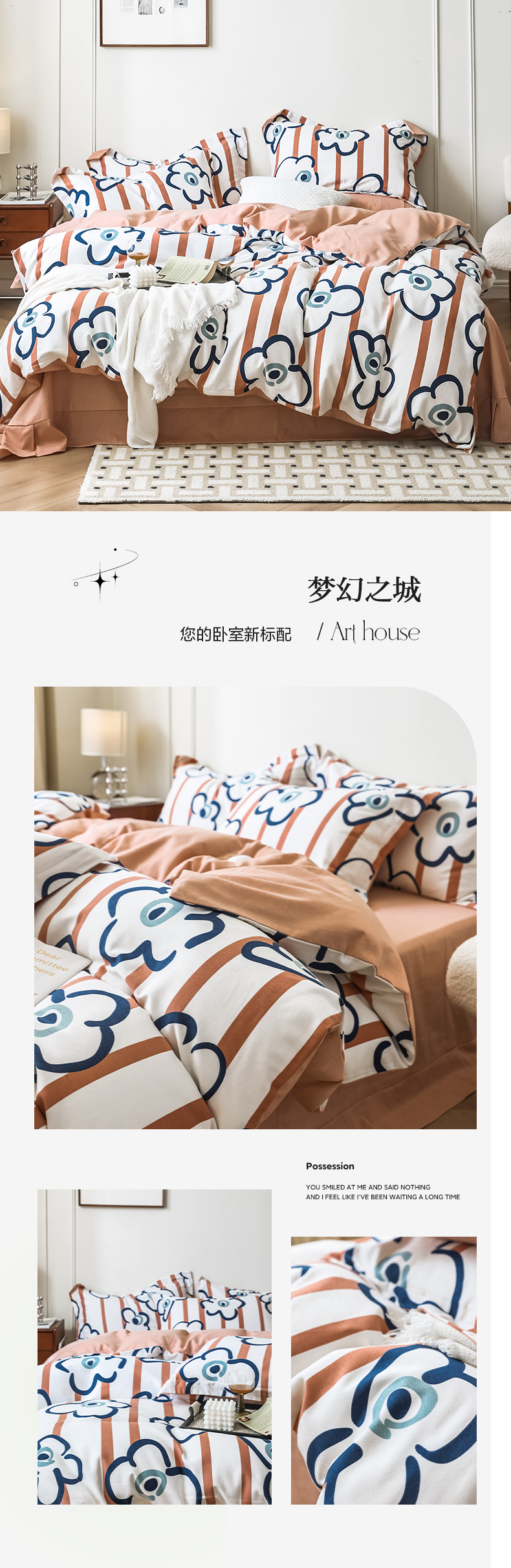 商品名称:(总)卡巴伦家纺 2023新款原棉磨毛印花简约四件套系列