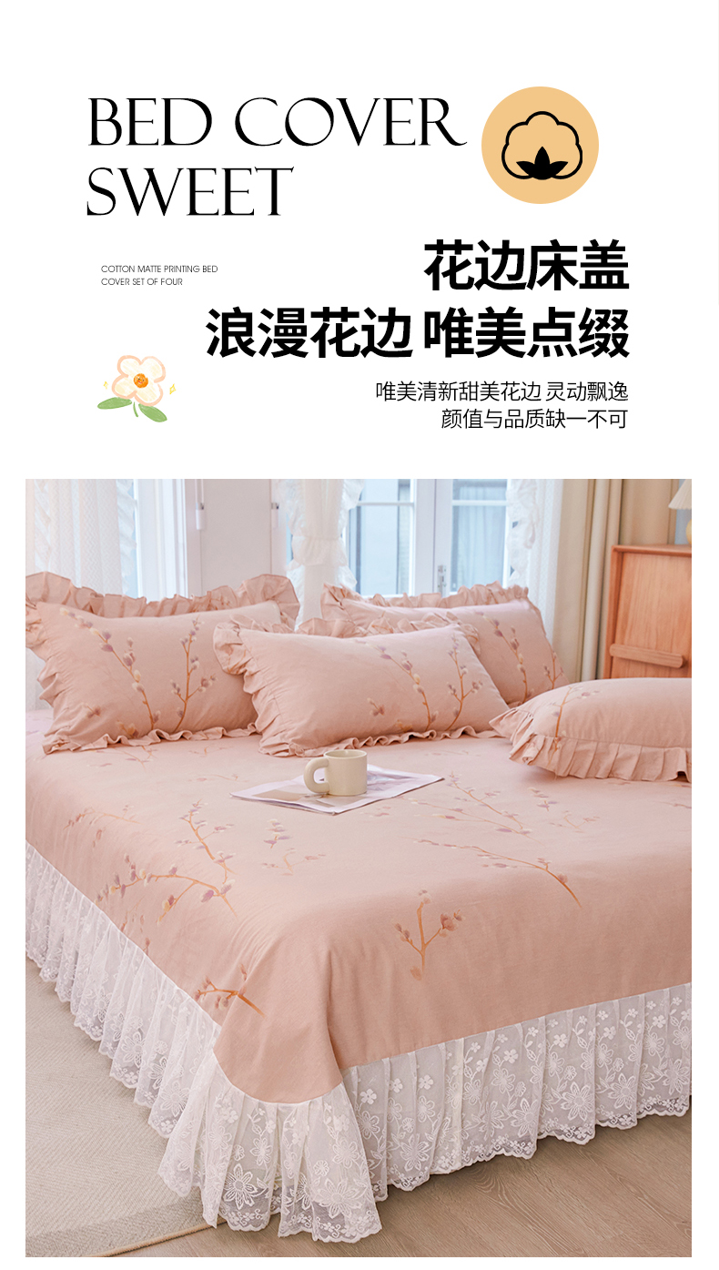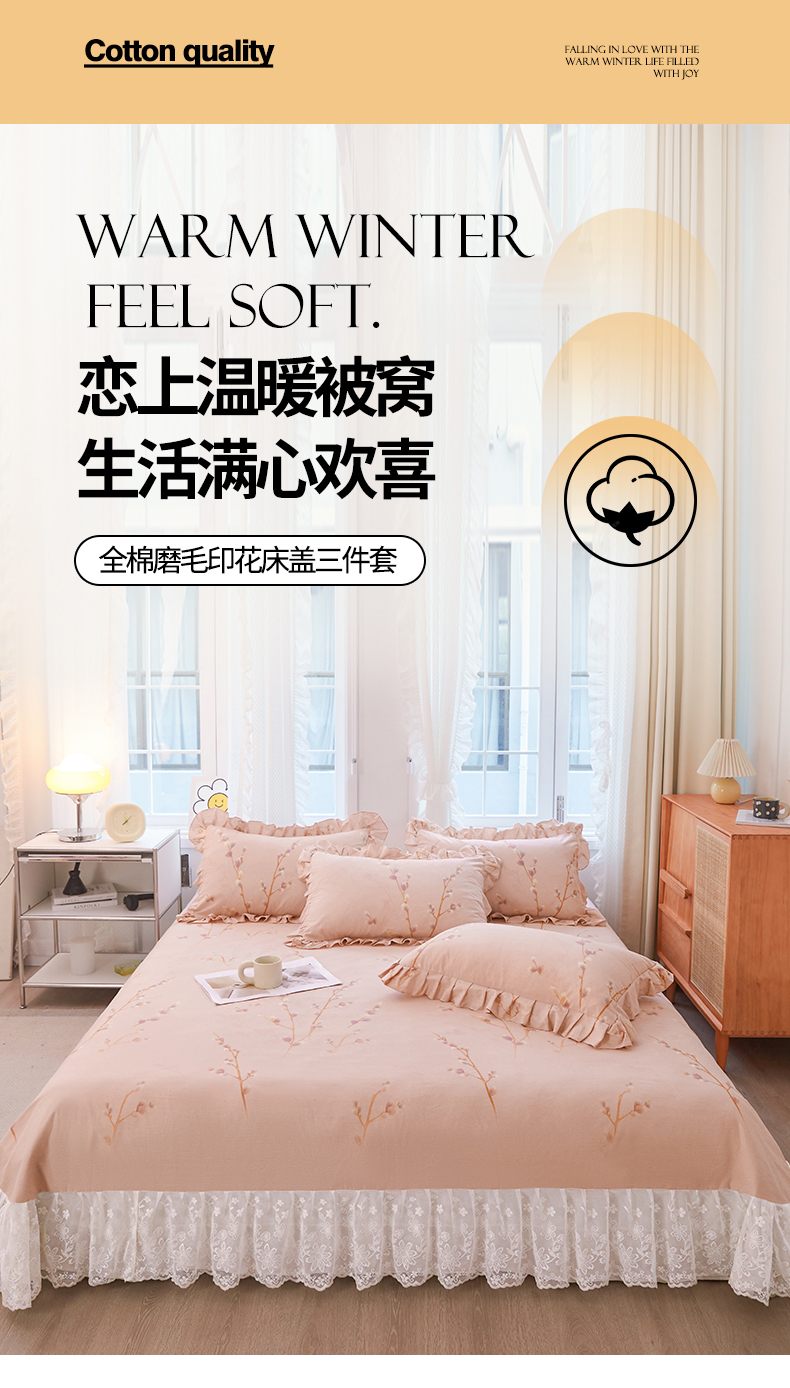 宜凡家纺 2023新款全棉加厚磨毛印花床盖三件套 梅枝