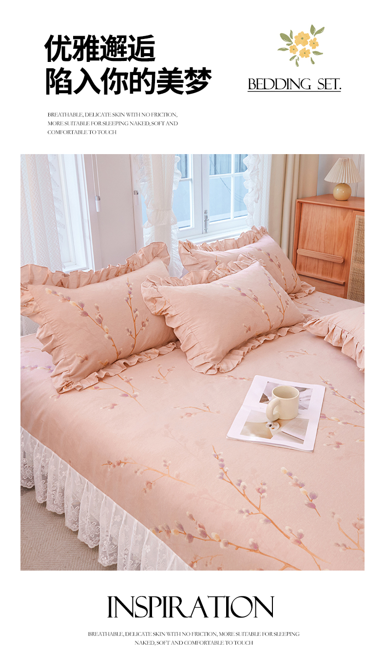 (总)宜凡家纺 2025新款全棉数码印花床裙四件套系列一,静若幽兰,浮云织梦,梦幻花园,陌上花开