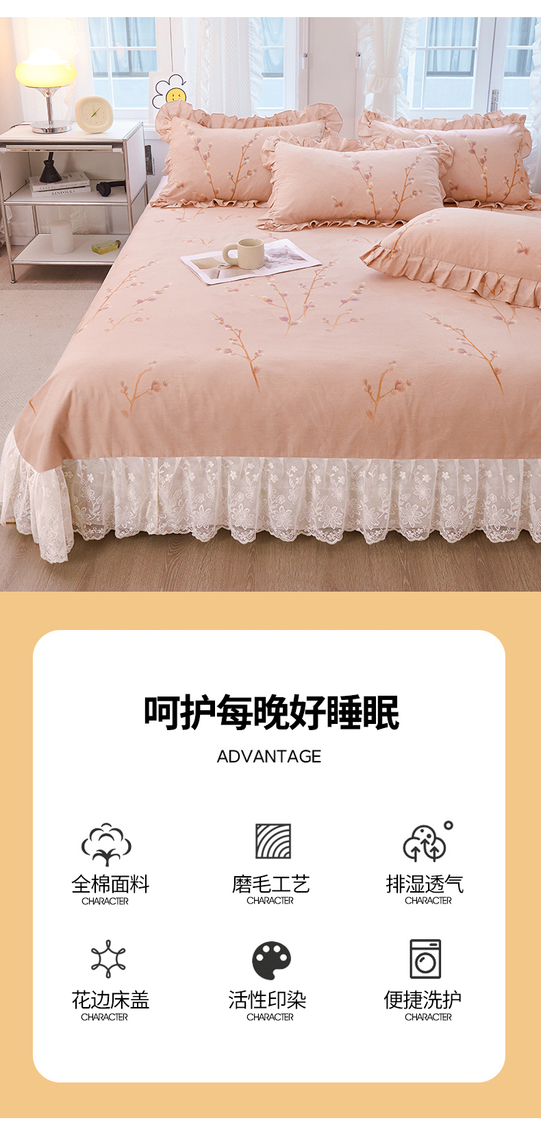 商品名称:宜凡家纺 2023新款全棉加厚磨毛印花床盖三件套 梅枝