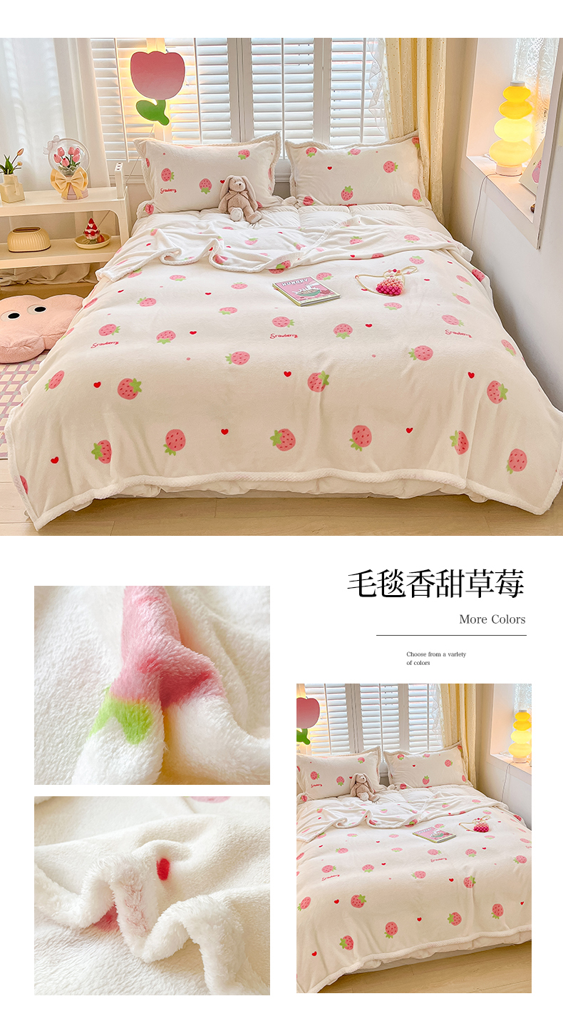 商品名称:川悦生活 2023新款双面240克宽边牛奶绒毯子 毛毯香甜草莓