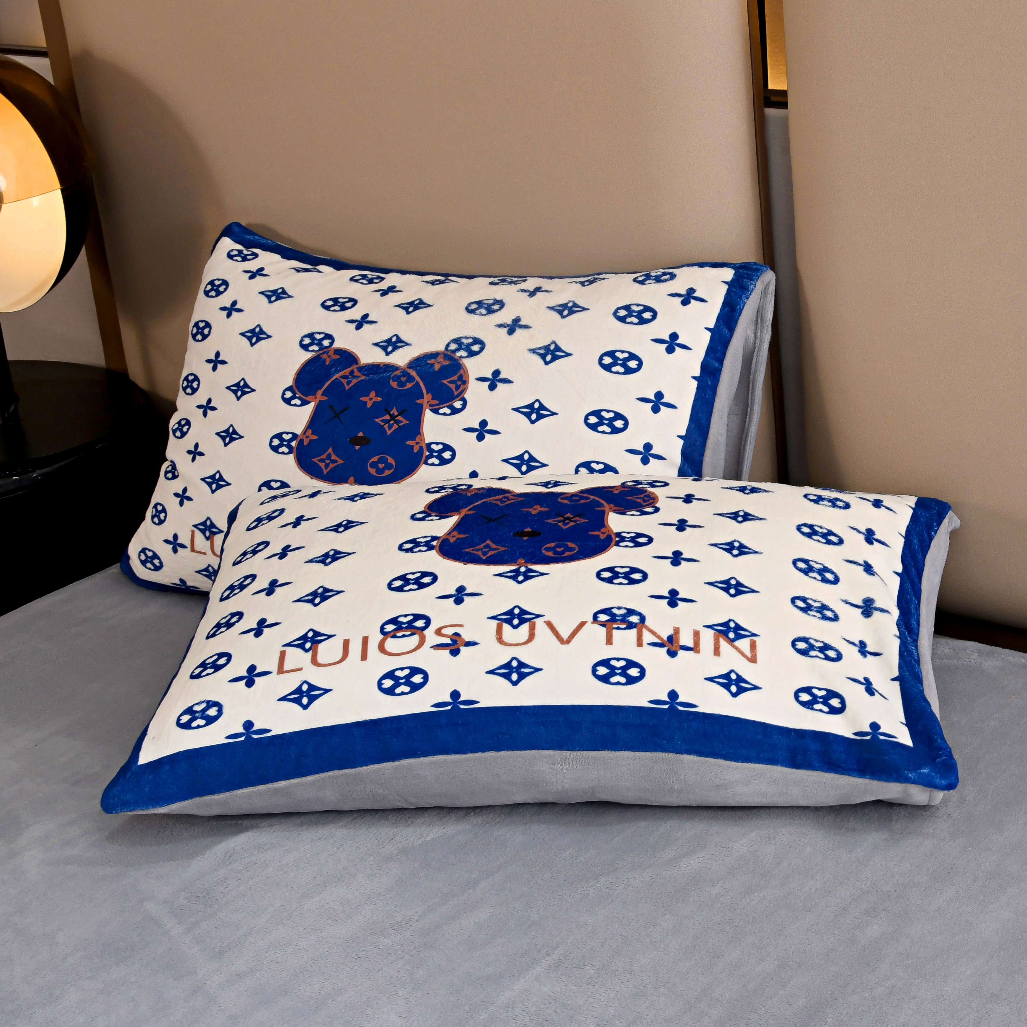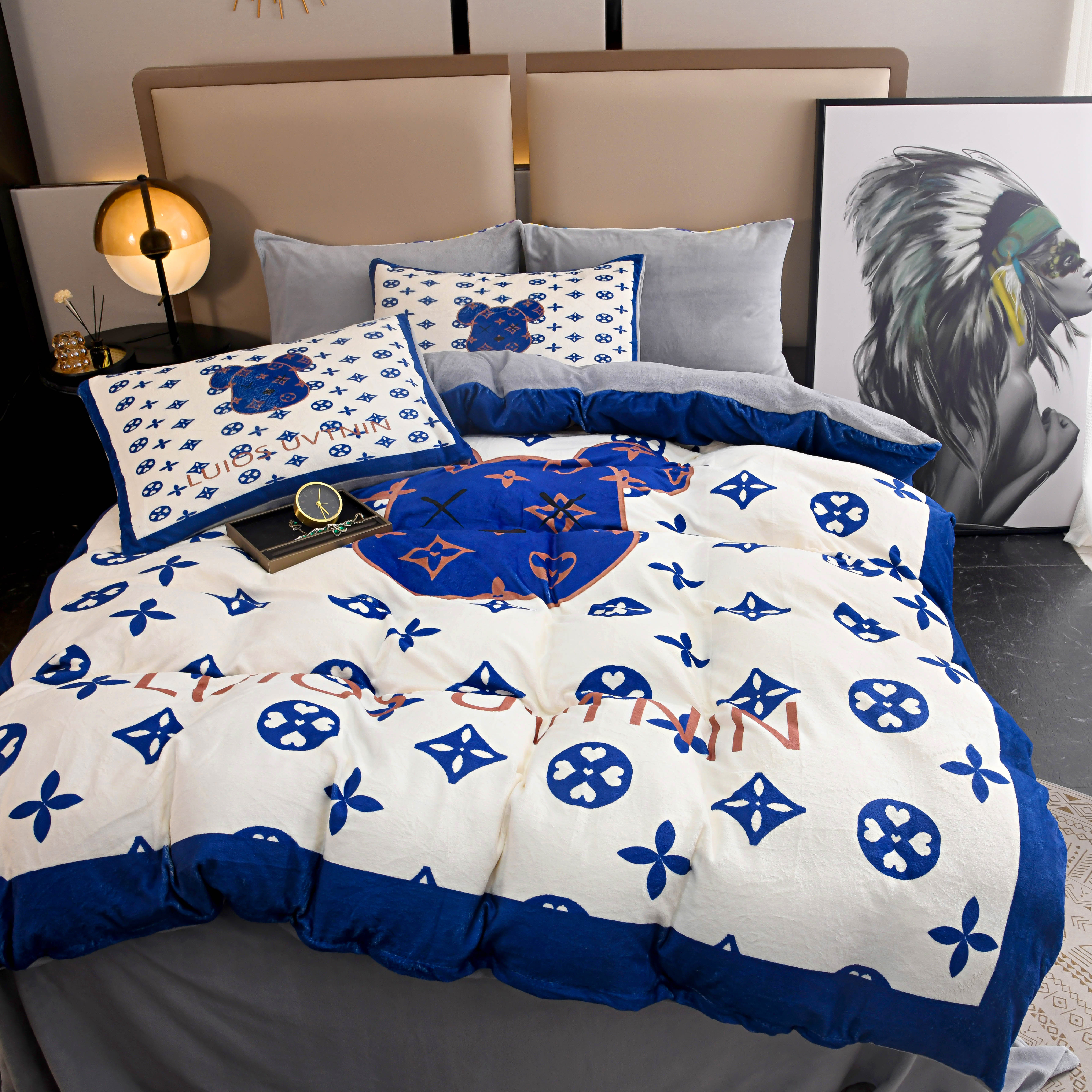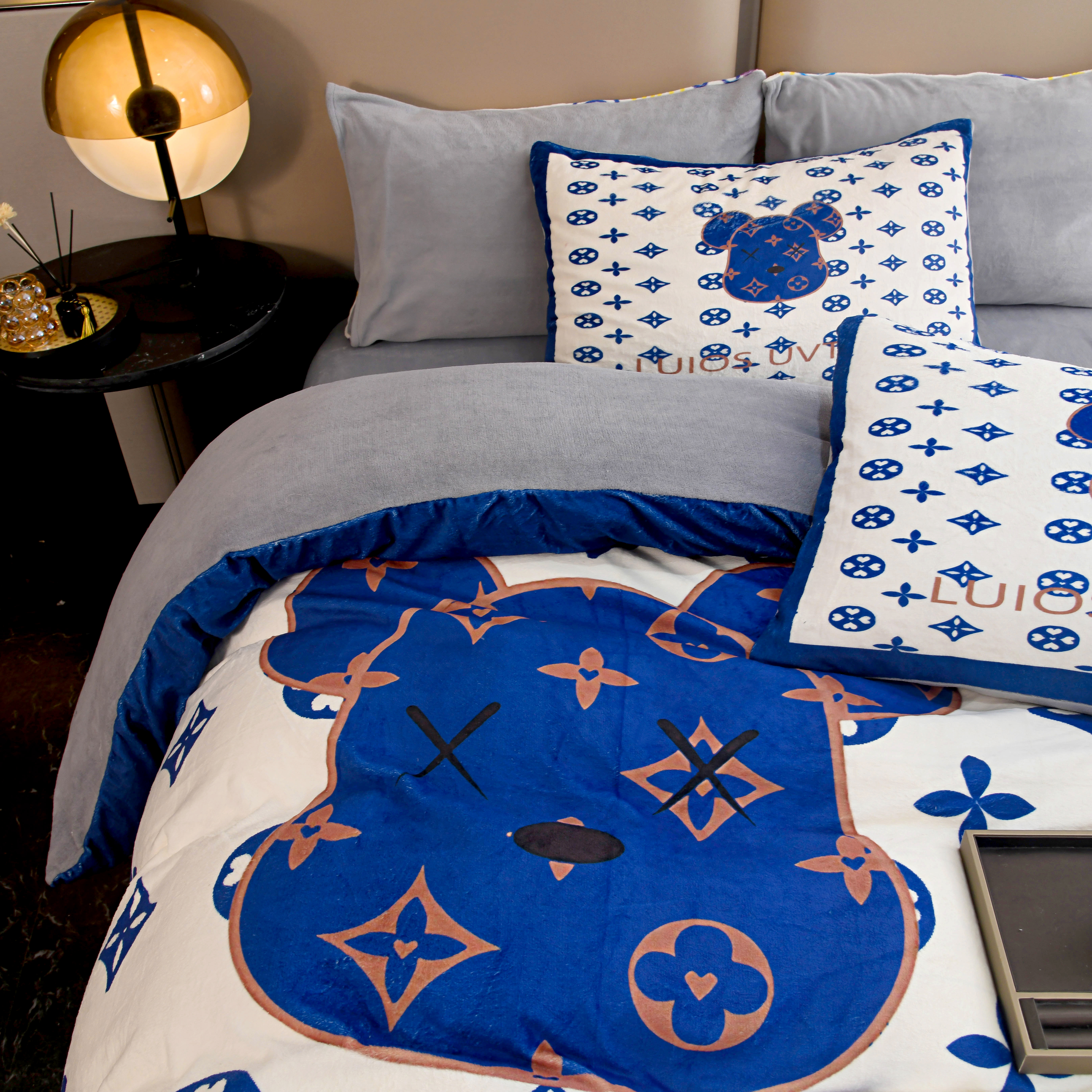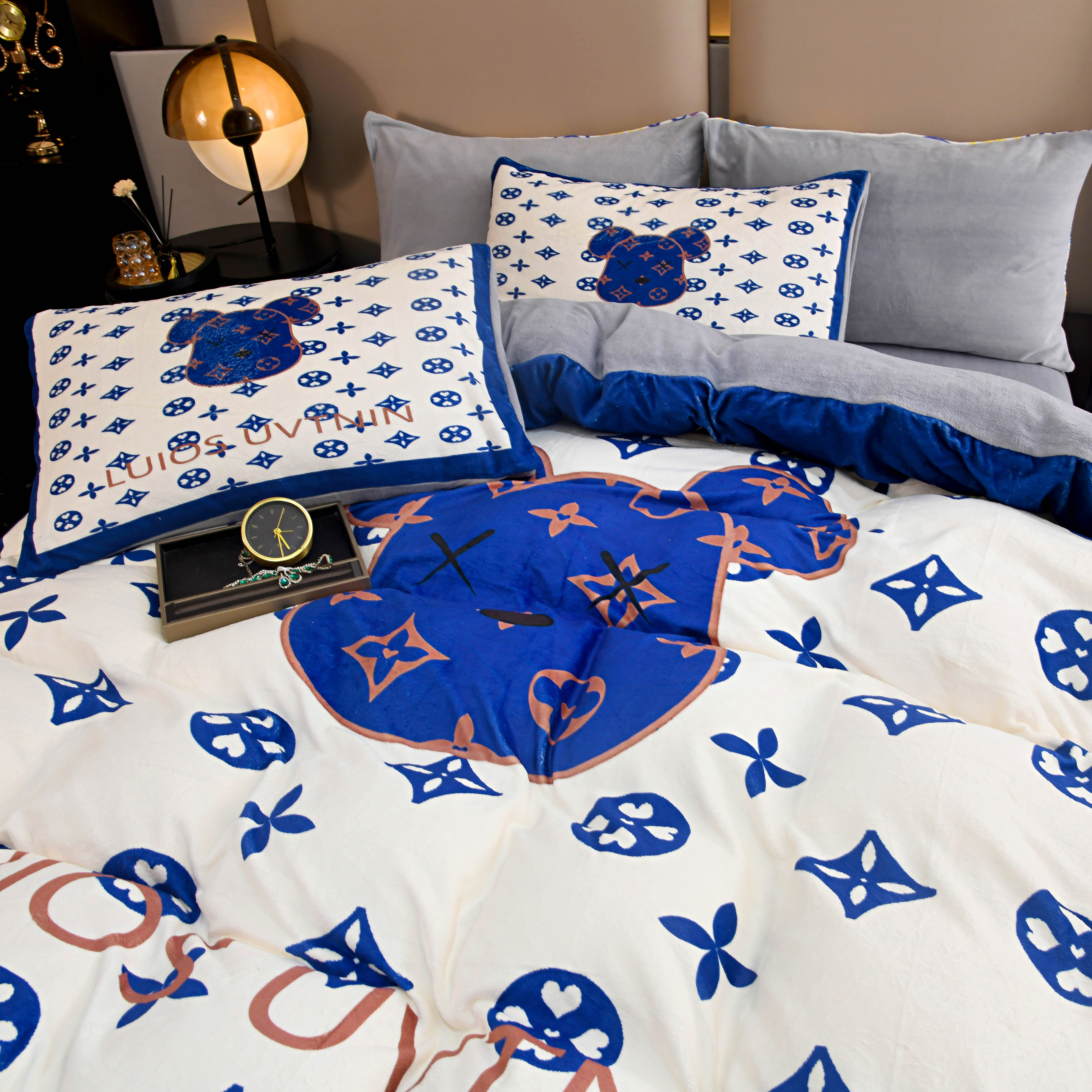 爵仕家纺 2023新款暴力熊牛奶绒系列四件套 克莱因蓝