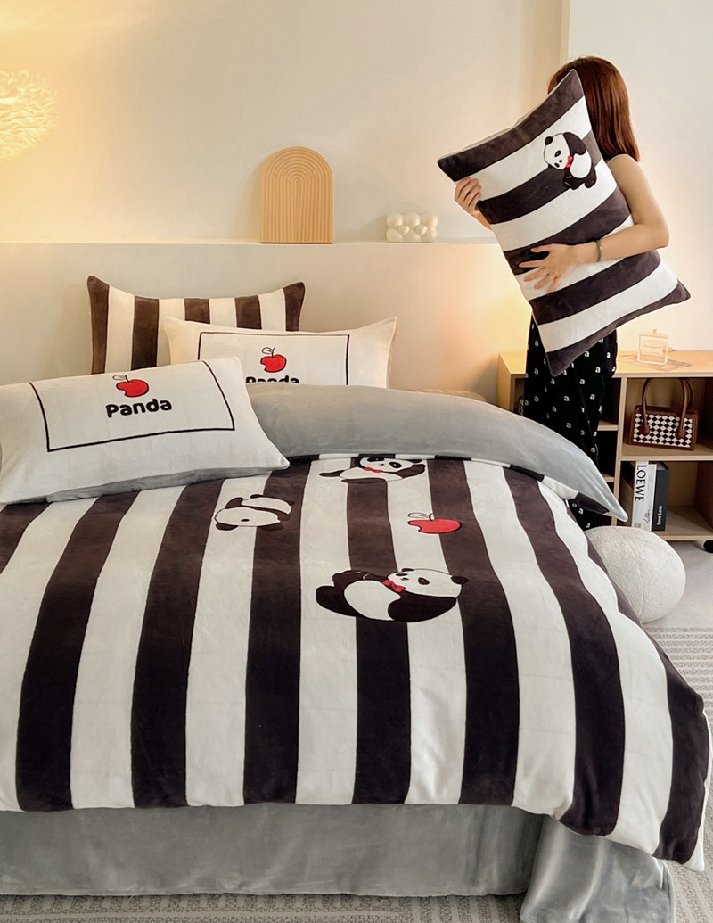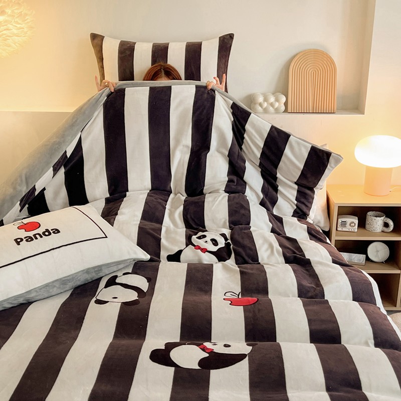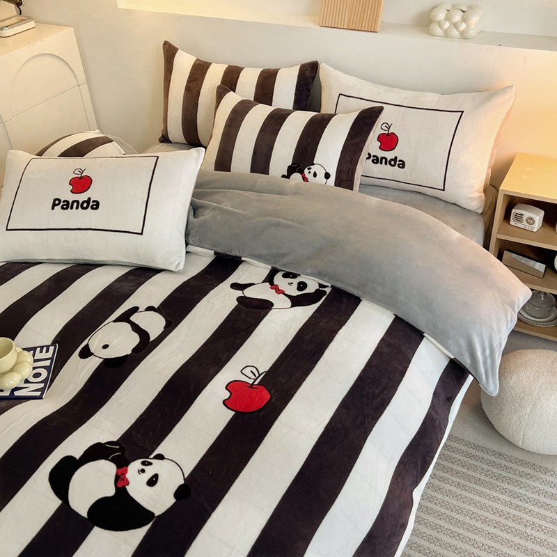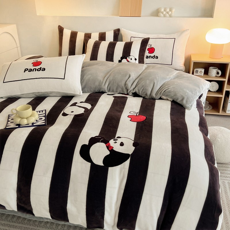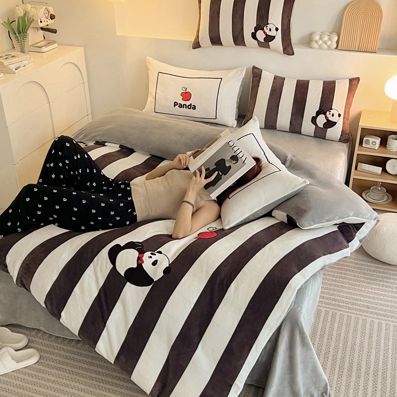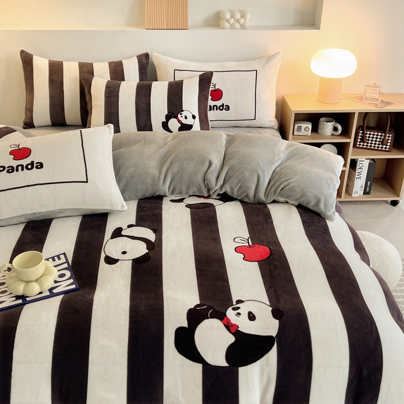 商品名称:寐居家纺 2023新款ins数码印花牛奶绒四件套 熊猫乐园