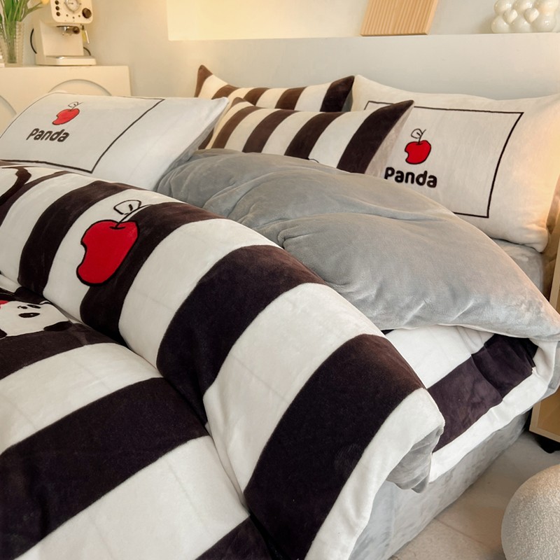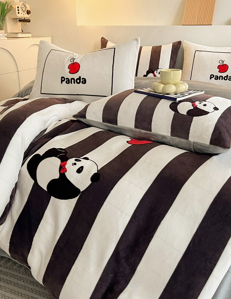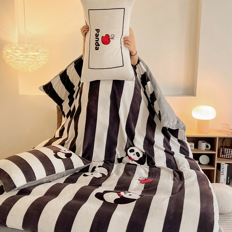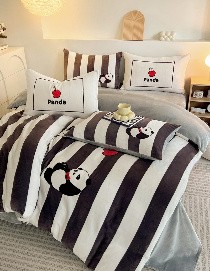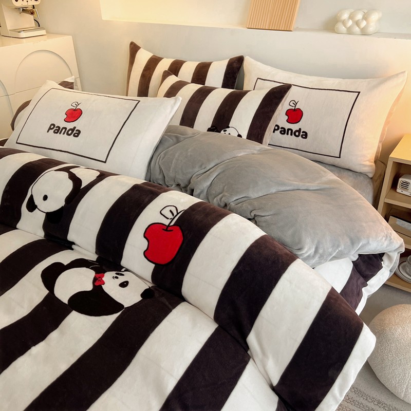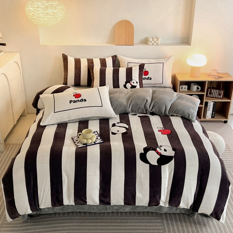 商品名称:寐居家纺 2023新款ins数码印花牛奶绒四件套 熊猫乐园