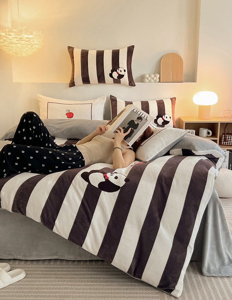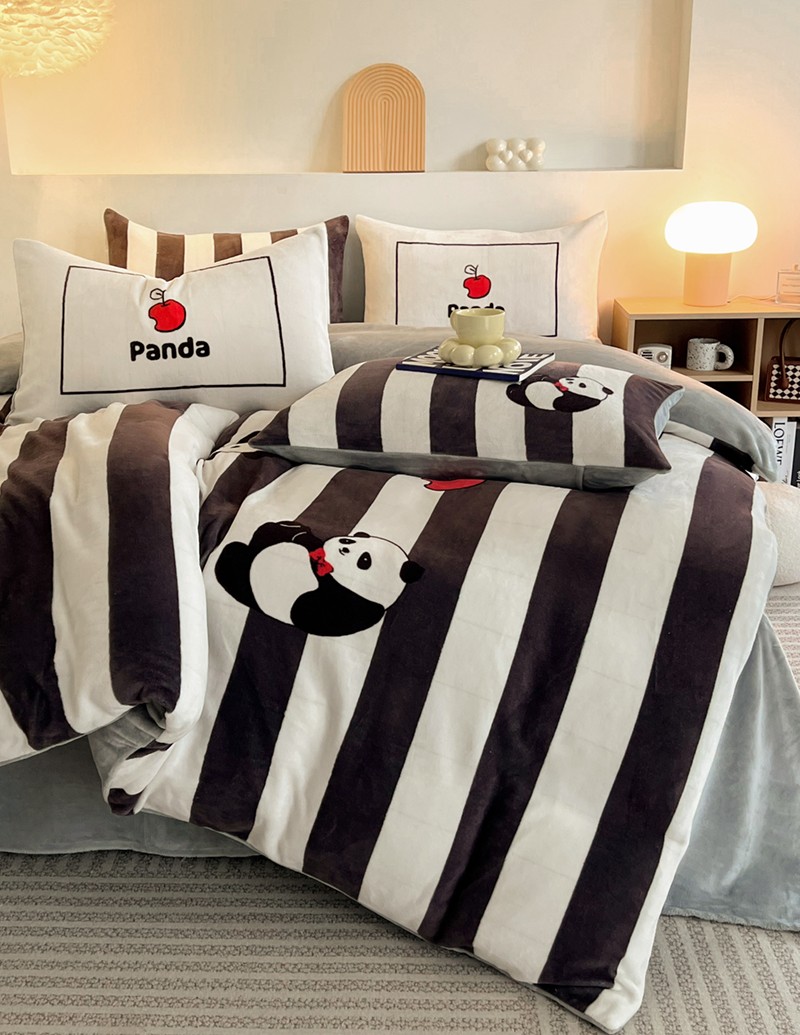 寐居家纺 2023新款ins数码印花牛奶绒四件套 熊猫乐园