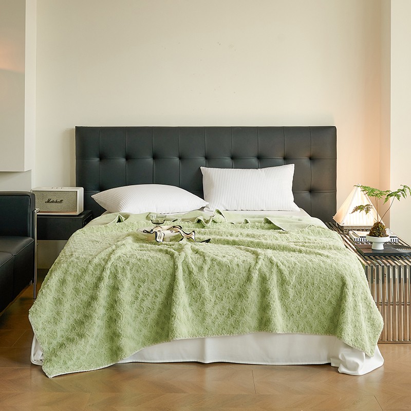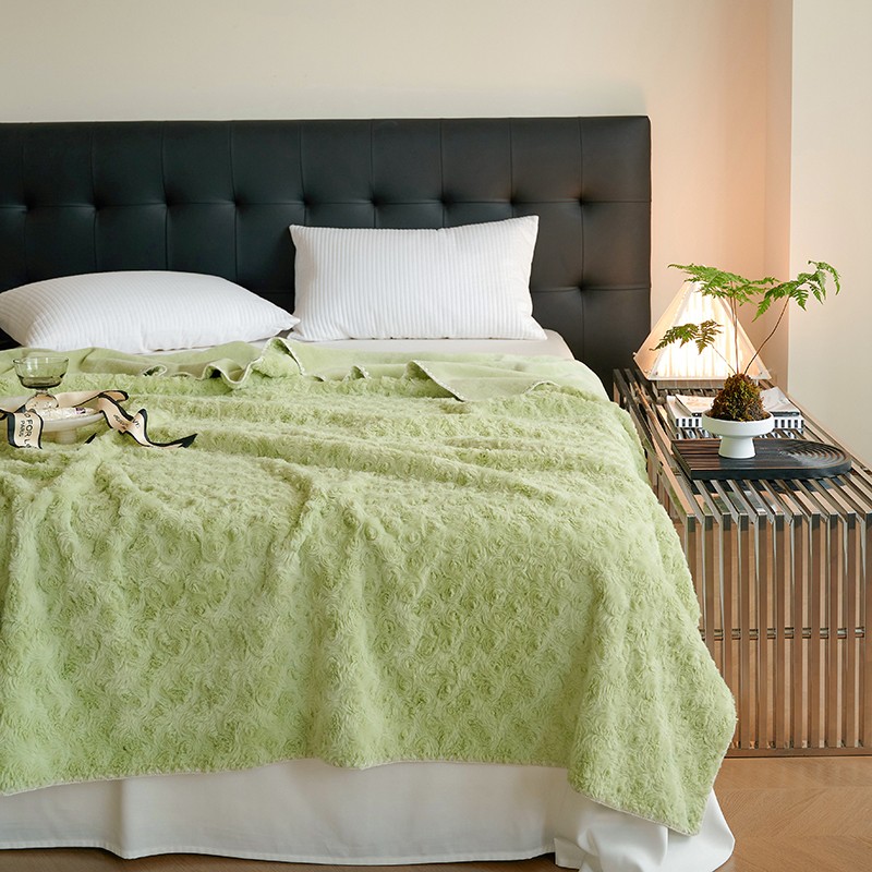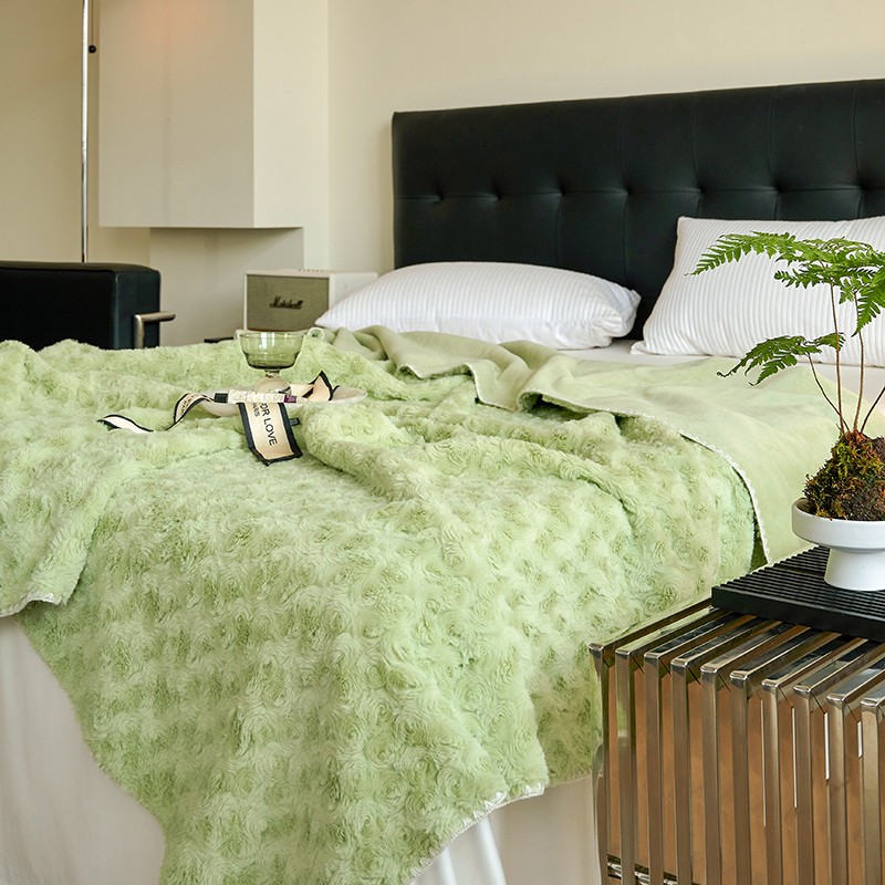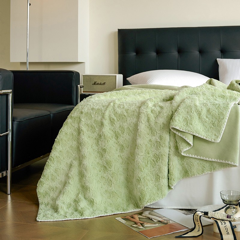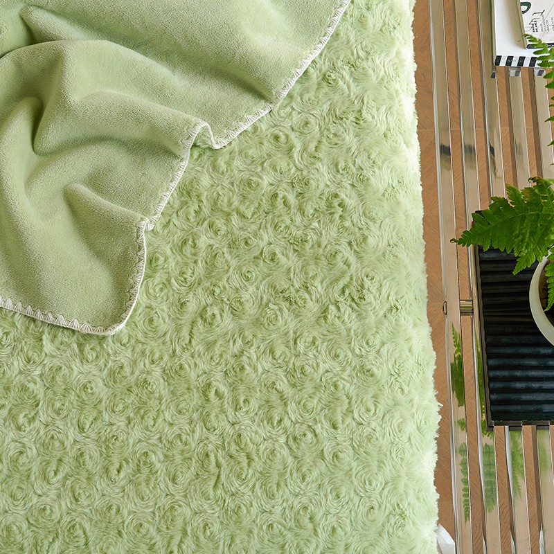 商品名称:寐居家纺 2023新款兔兔绒玫瑰多功能毛毯 兔绒玫瑰-青绿