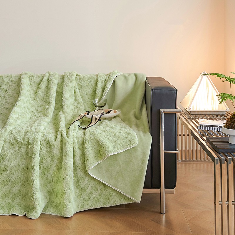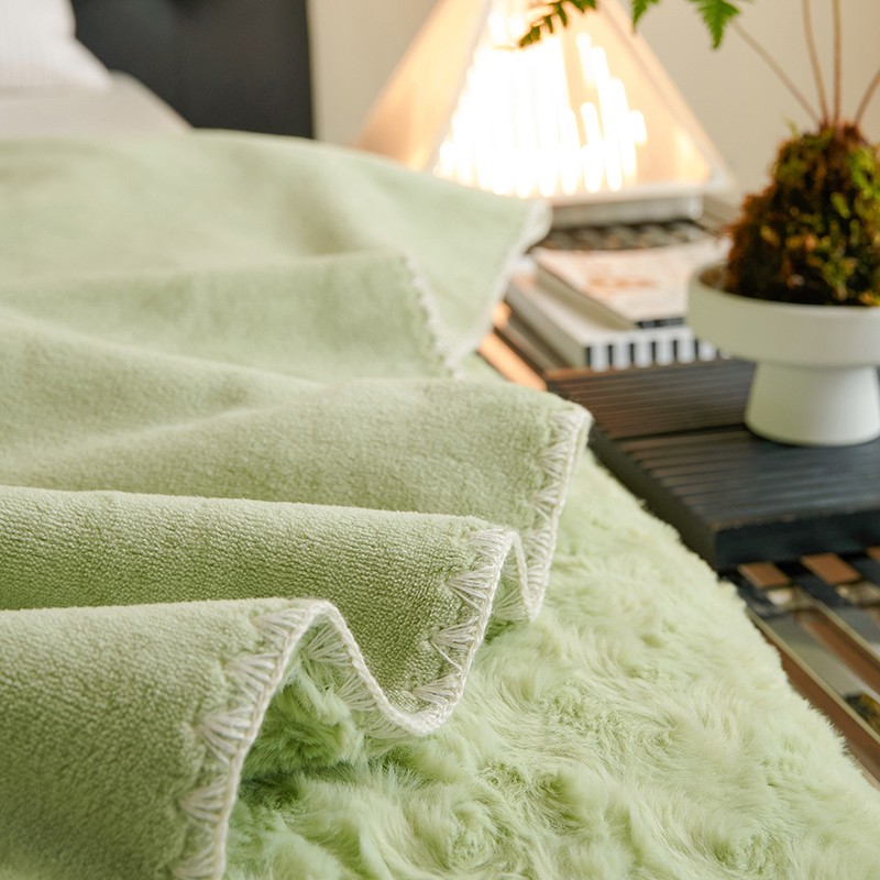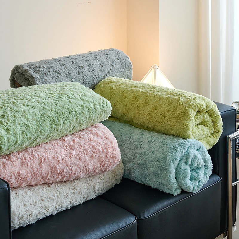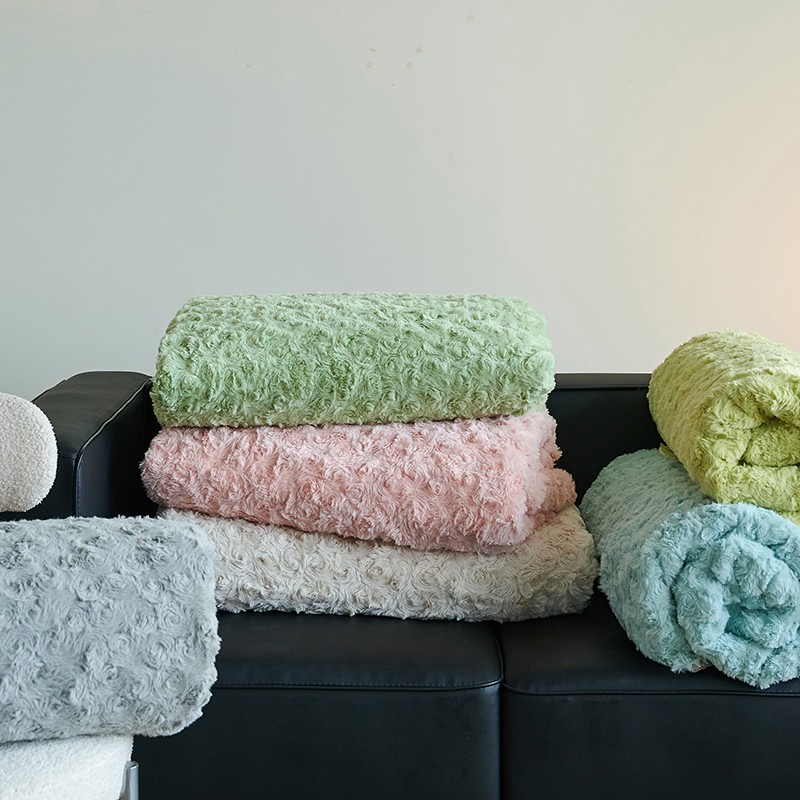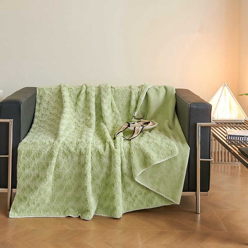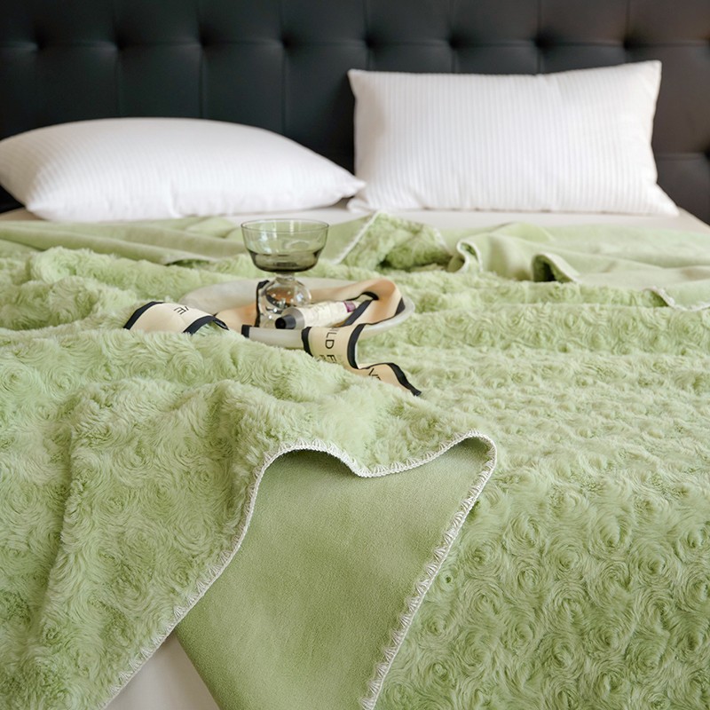 商品名称:寐居家纺 2023新款兔兔绒玫瑰多功能毛毯 兔绒玫瑰-青绿