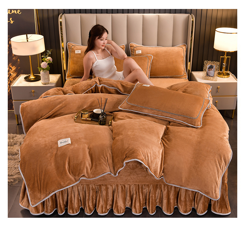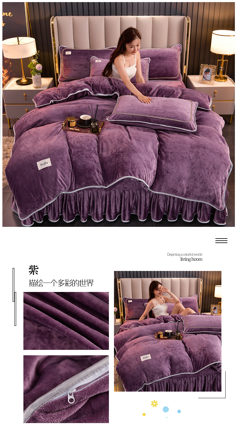 (总)畅畅家纺 2024新款高克重加厚保暖冬季牛奶绒纯色床盖款四件套,豆沙,灰色,天蓝,玉色,中国红