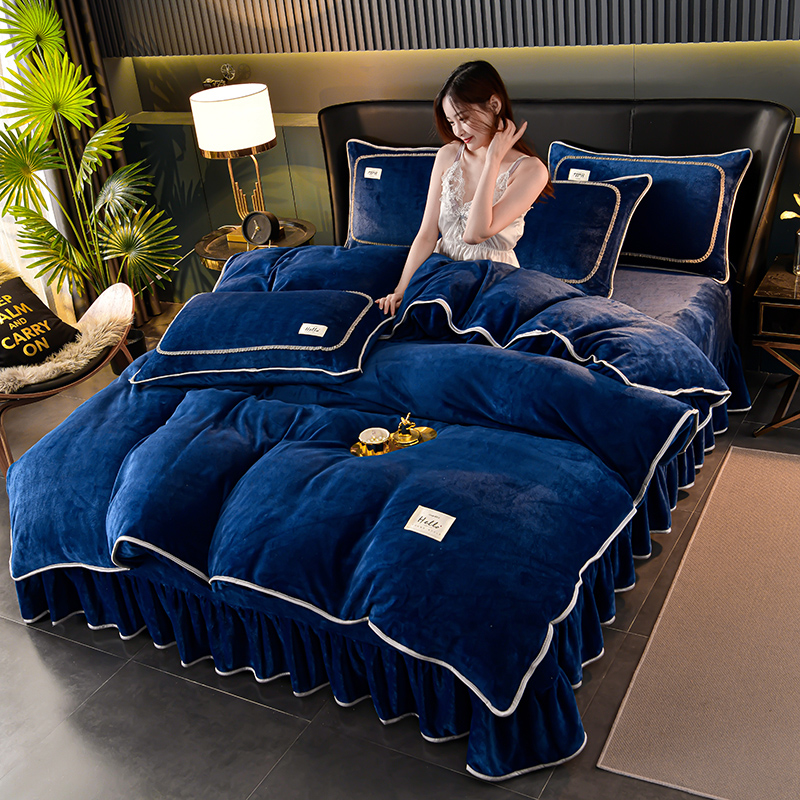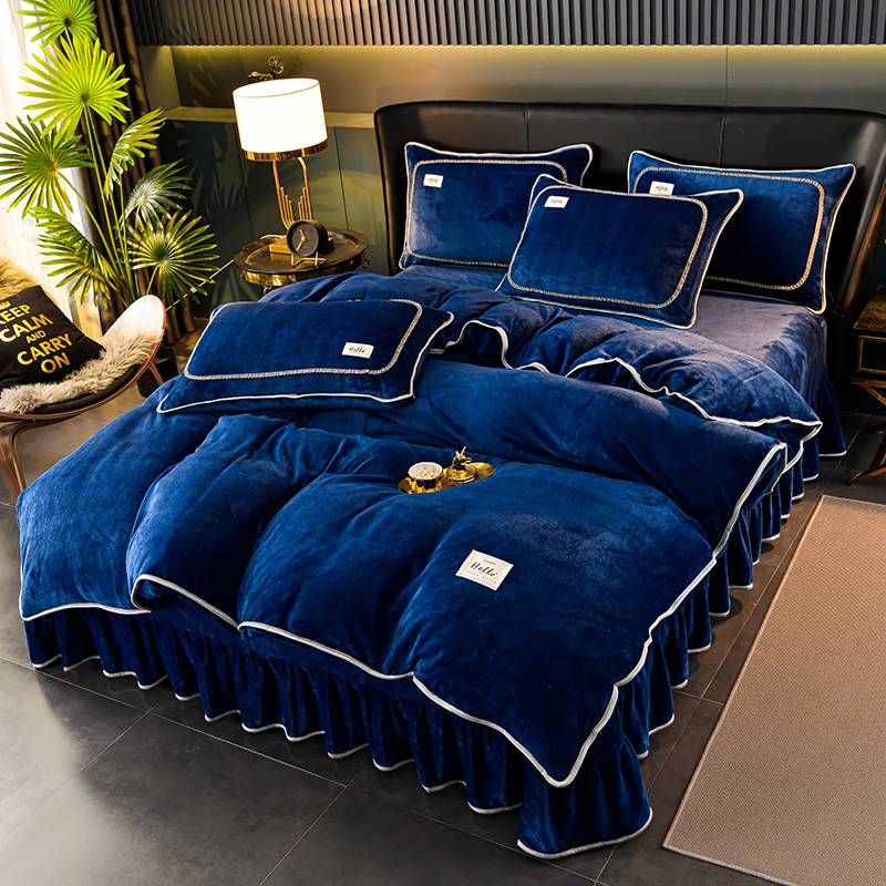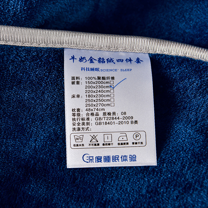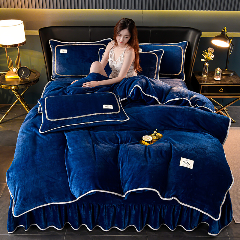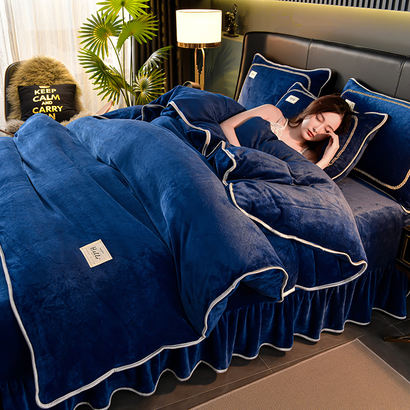 商品名称:畅畅家纺 2023新款纯色8.5斤9斤牛奶绒法莱绒宝宝金貂绒四件套 蓝色