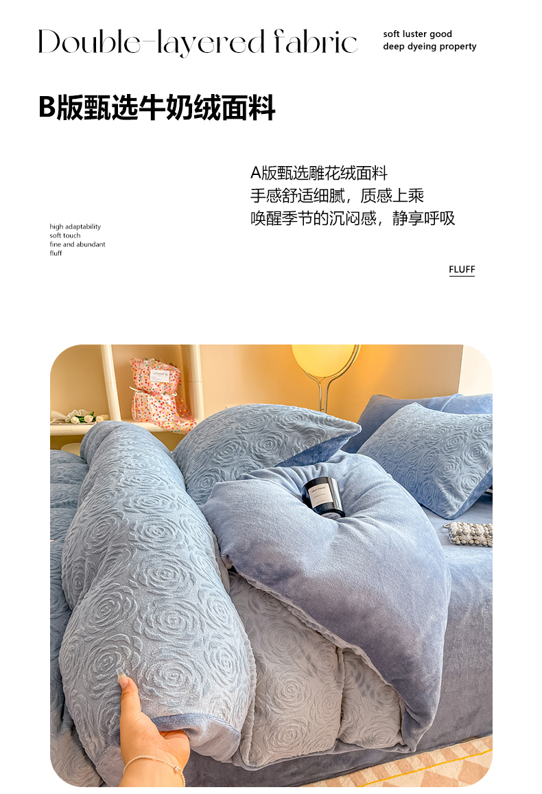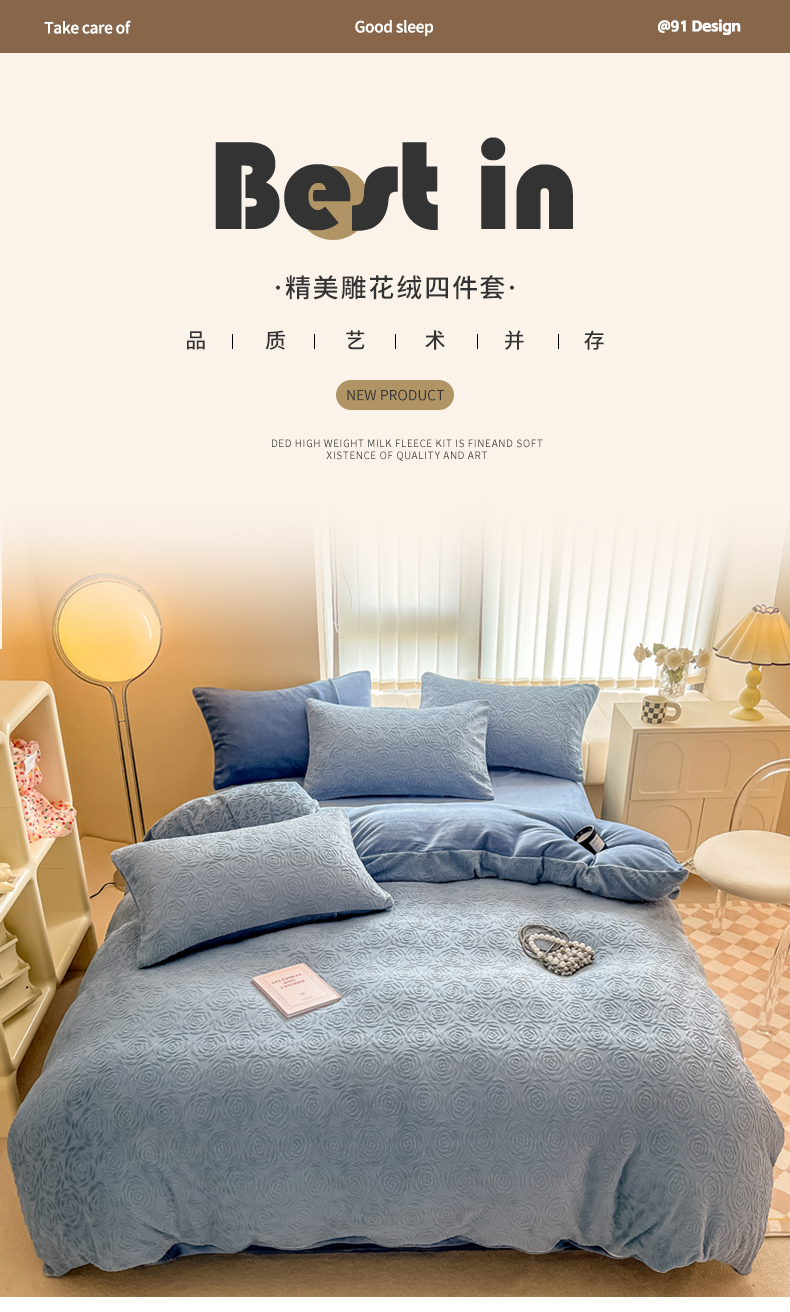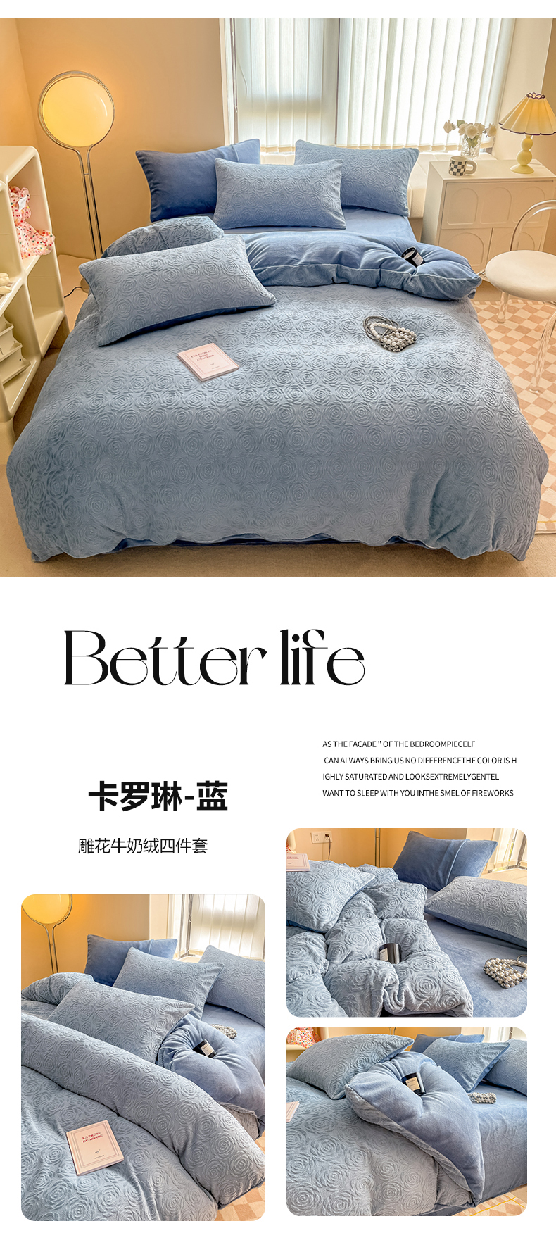 当前位置: 91家纺网 > 商品网购 > 床品套件 > 四件套 > 雕花绒四件套 > 慕尚家纺 2025新款慕尚雕花绒四件套 卡罗琳-蓝