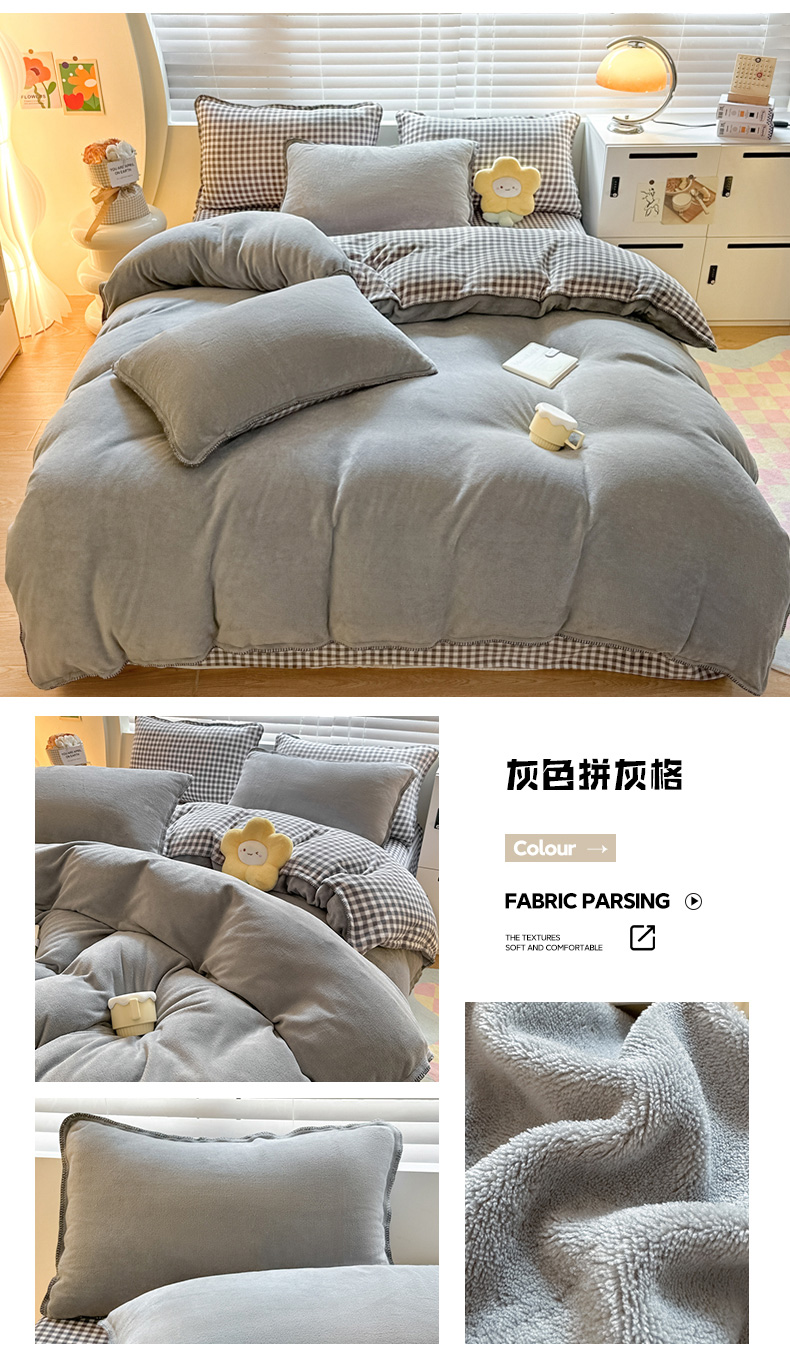 当前位置: 91家纺网 > 商品网购 > 床品套件 > 四件套 > 牛奶绒四件套 > 安哆啦 2024新款高克重牛奶绒混搭四件套 灰色拼灰格