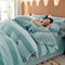 2023新款无印风兔绒泰迪绒拼接款四件套 静逸-湖蓝