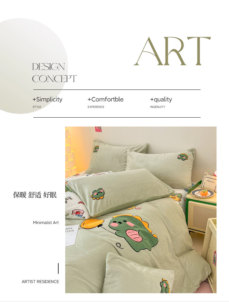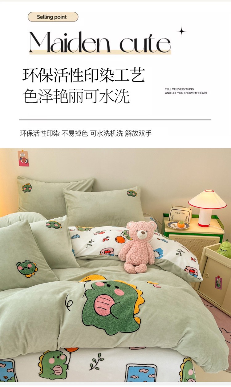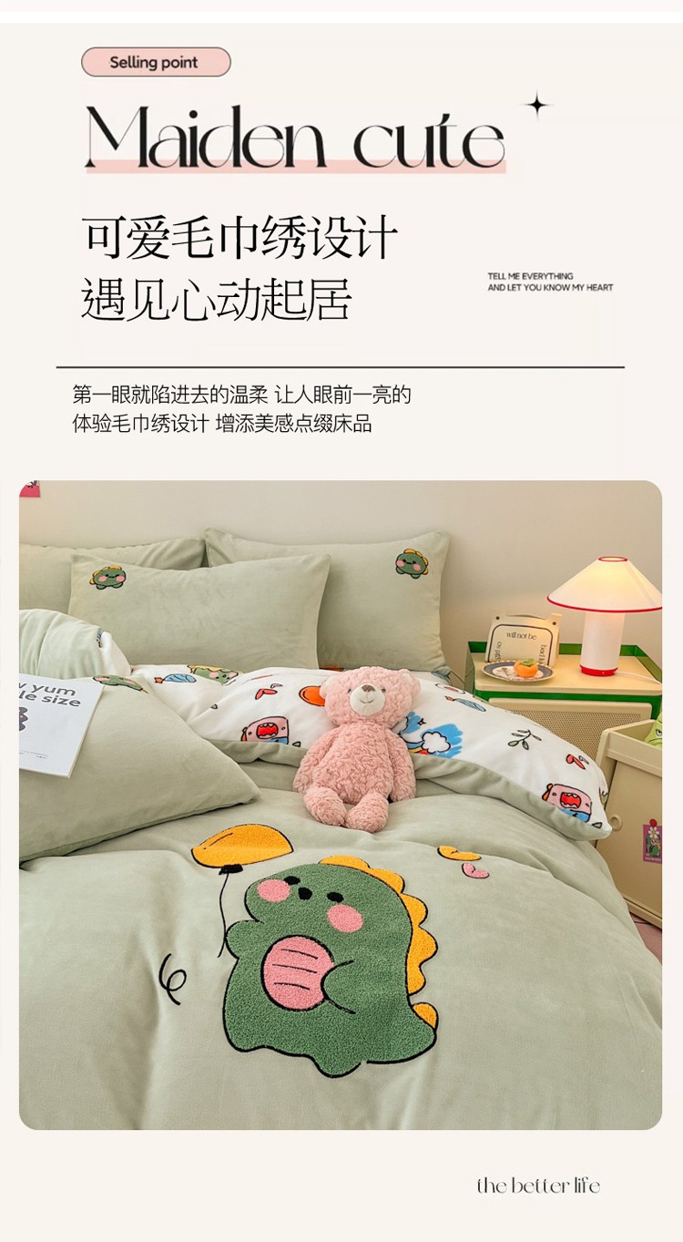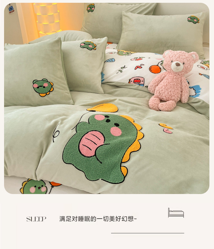 当前位置: 91家纺网 > 商品网购 > 床品套件 > 四件套 > 牛奶绒四件套 > 2023新款牛奶绒印花毛巾绣单被套 被套150*200cm 毛巾绣 毛巾绣-快乐恐龙