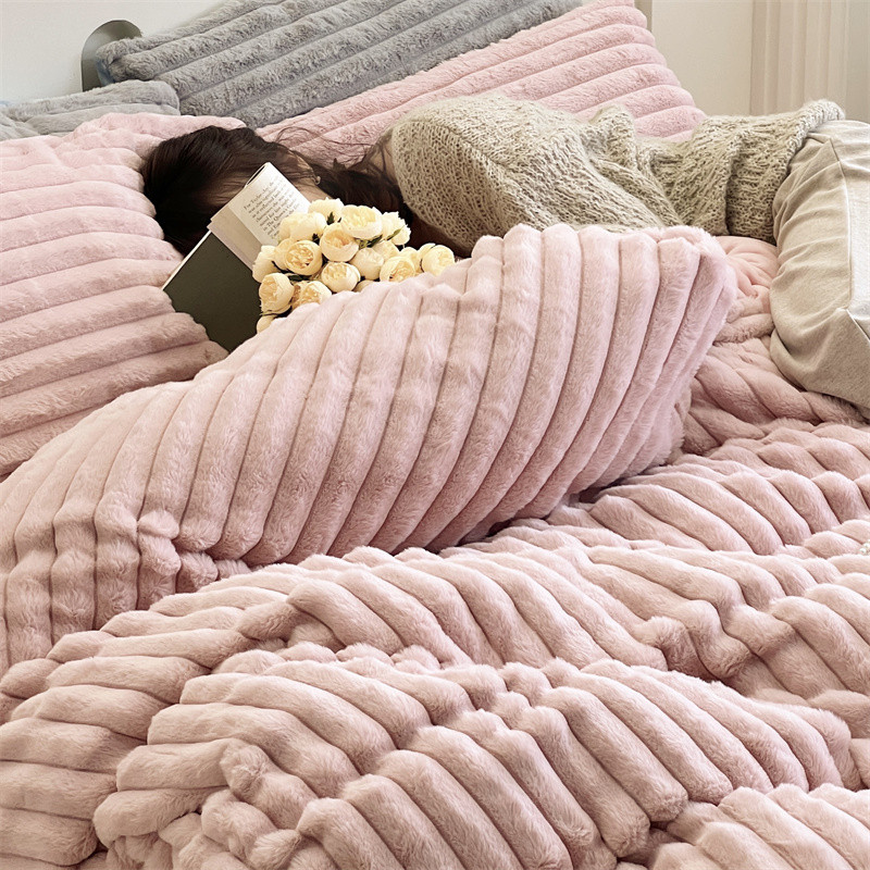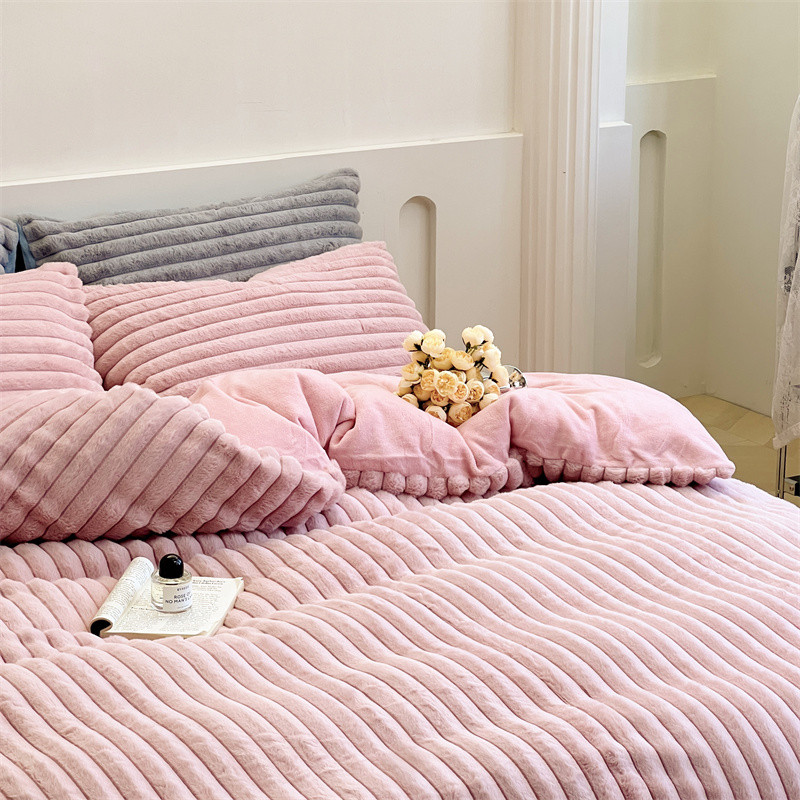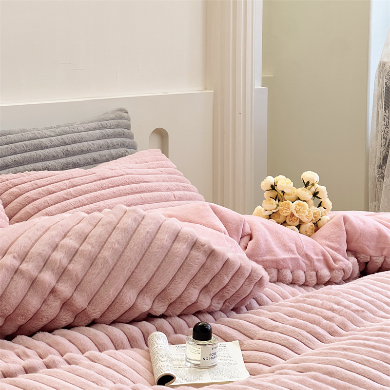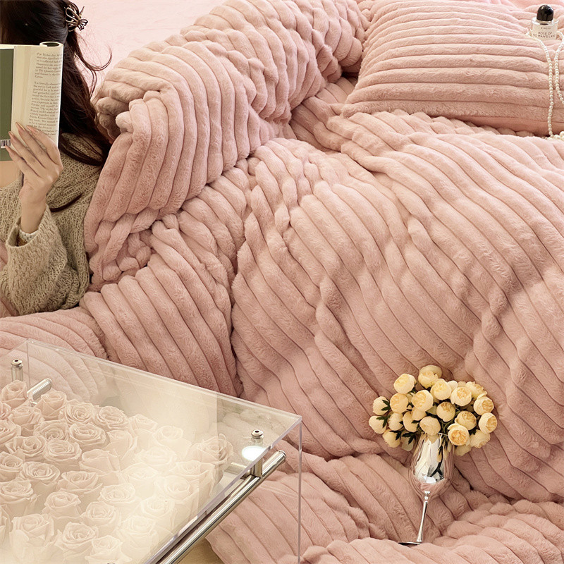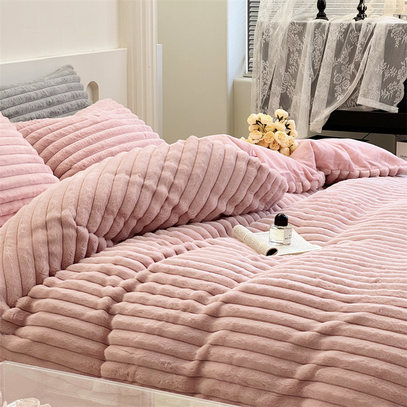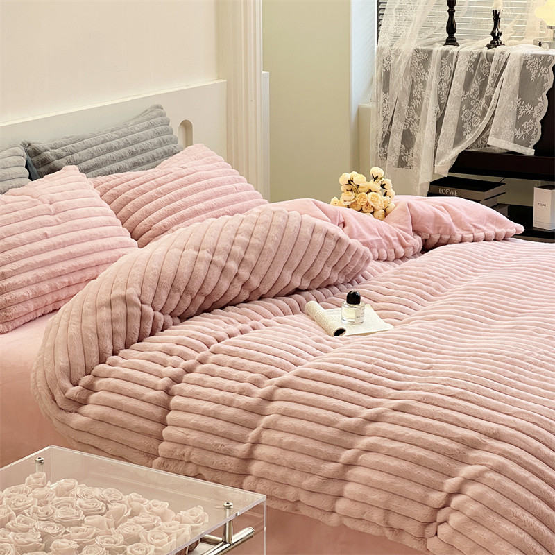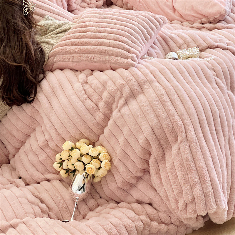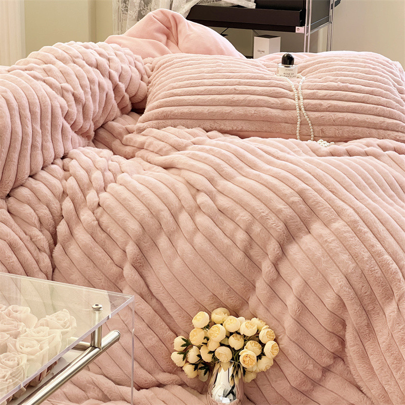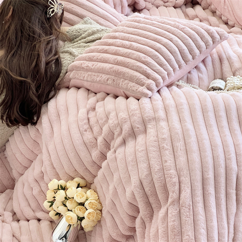 安莱生活 2023新款秋冬皮草兔毛四件套 橡皮粉