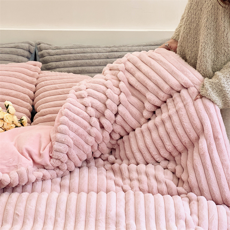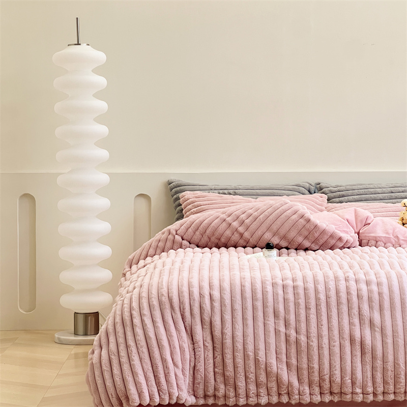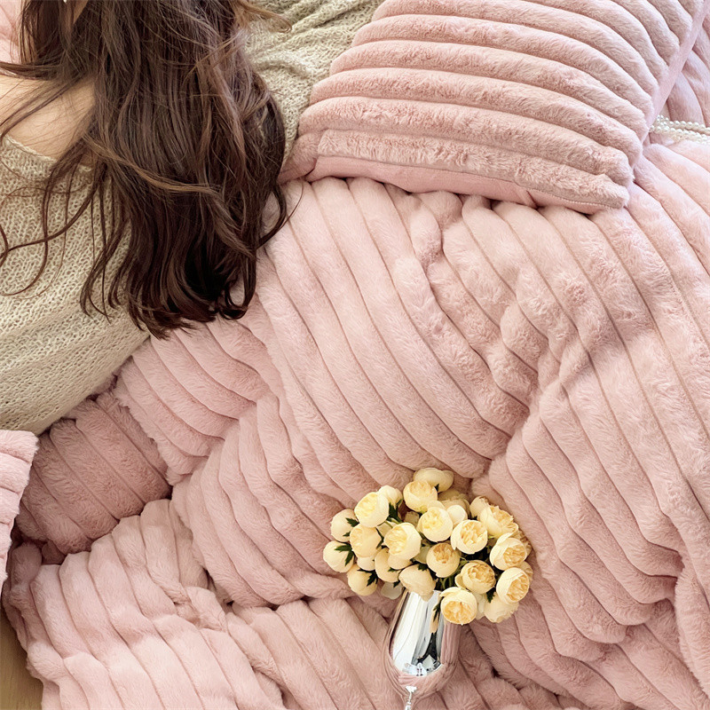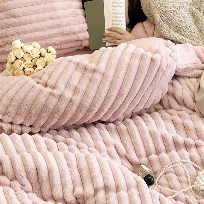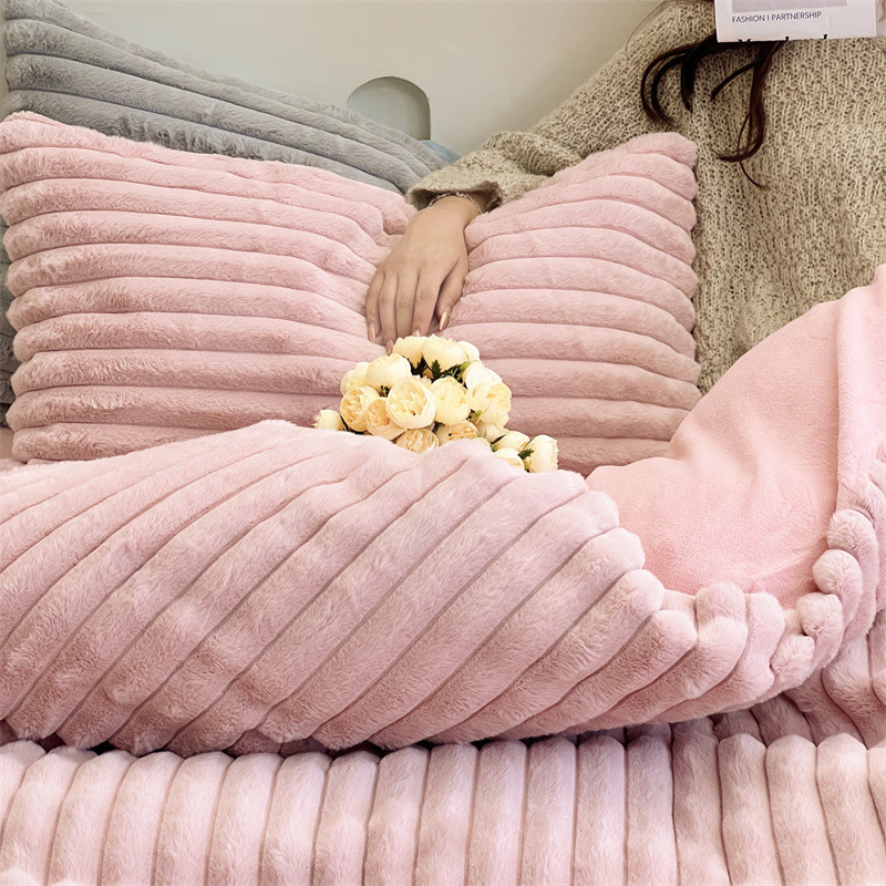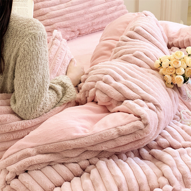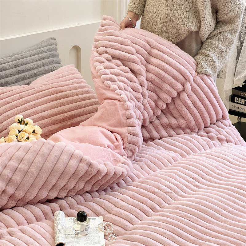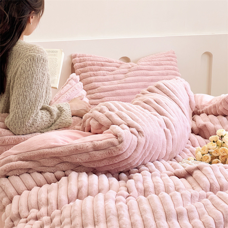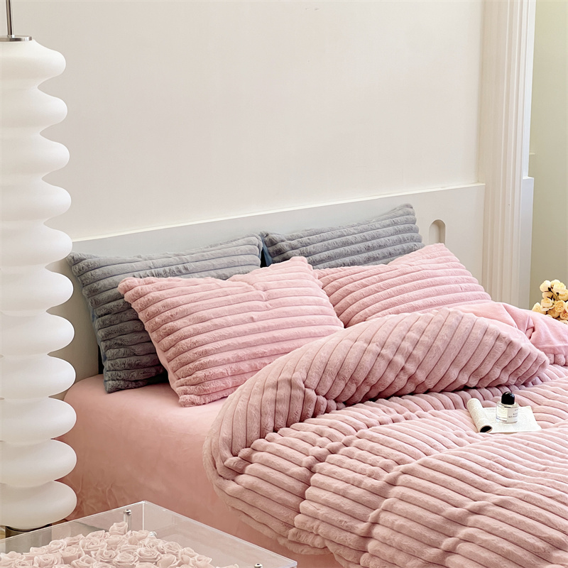 安莱生活 2023新款秋冬皮草兔毛四件套 橡皮粉