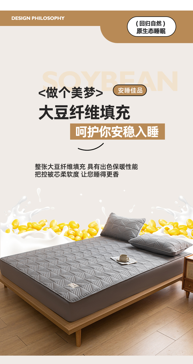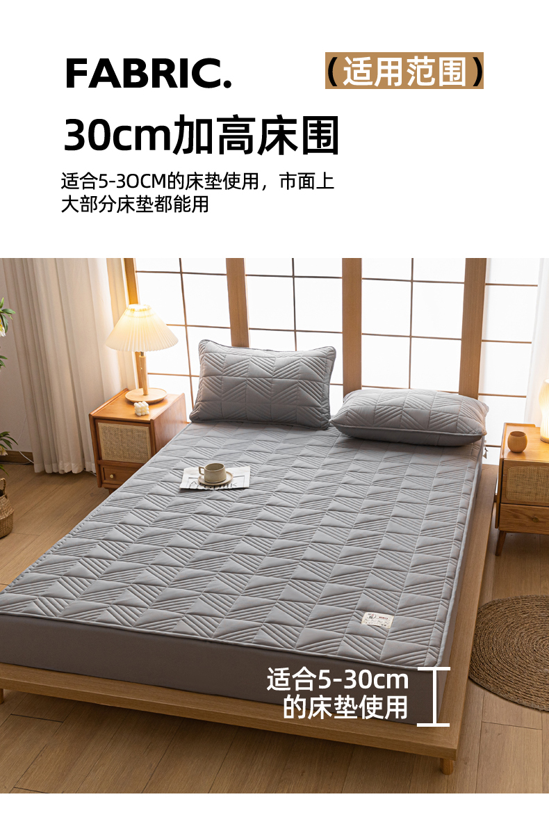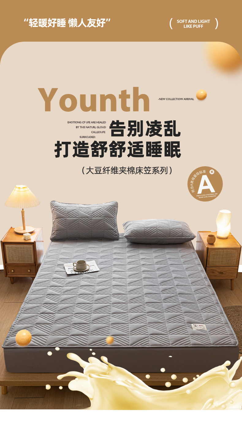 米粒家纺 2023新款A类大豆纤维夹棉床笠系列 格调-浅灰
