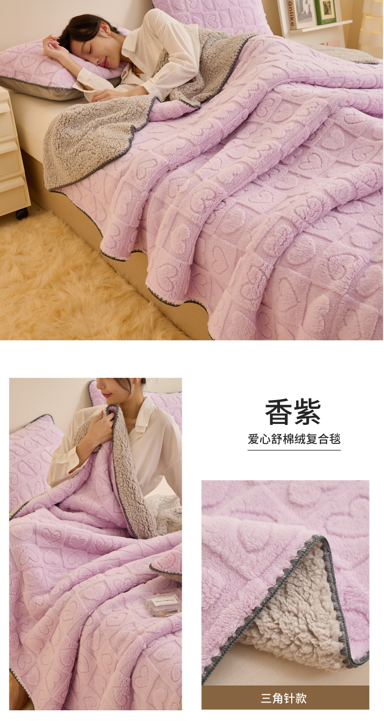当前位置: 91家纺网 > 商品网购 > 毛毯休闲毯绒毯 > 毛毯 > 21度C 2023新款爱心舒棉绒复合毯盖毯毛毯 爱心三角针-香紫
