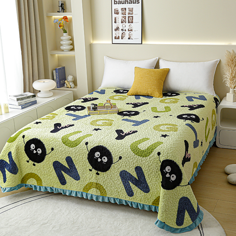 (总)家维 2025年新款牛奶绒床盖花边款床盖,缤纷情人节(绿),繁星点点,方格,花香满地,可爱熊,浪漫满屋,香间,小煤球,熊猫墩墩