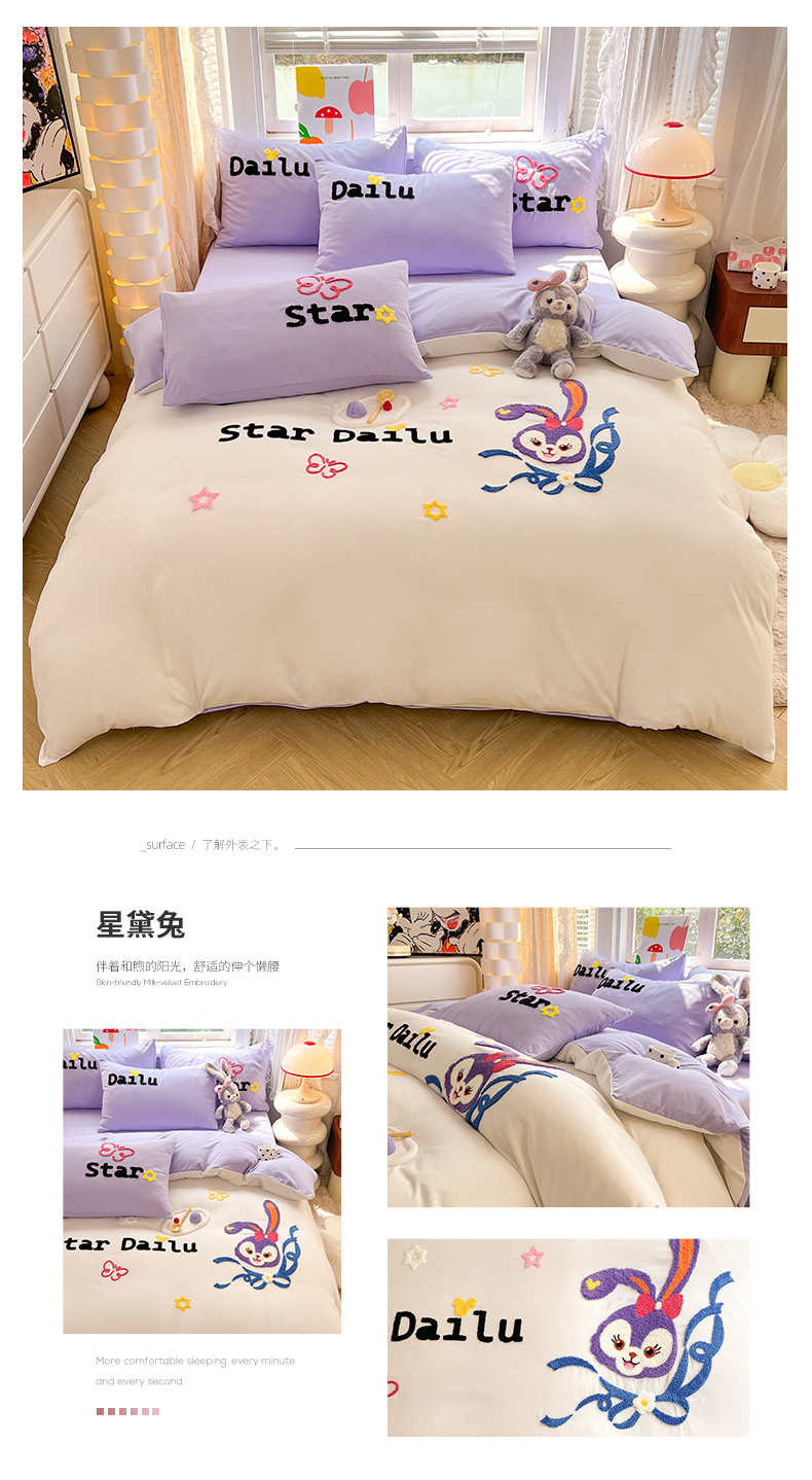 当前位置: 91家纺网 > 商品网购 > 床品套件 > 四件套 > 全棉普通四件套 > 易辰美 2024新款毛巾绣亲肤棉四件套 星黛兔加防伪掉标牌加5元