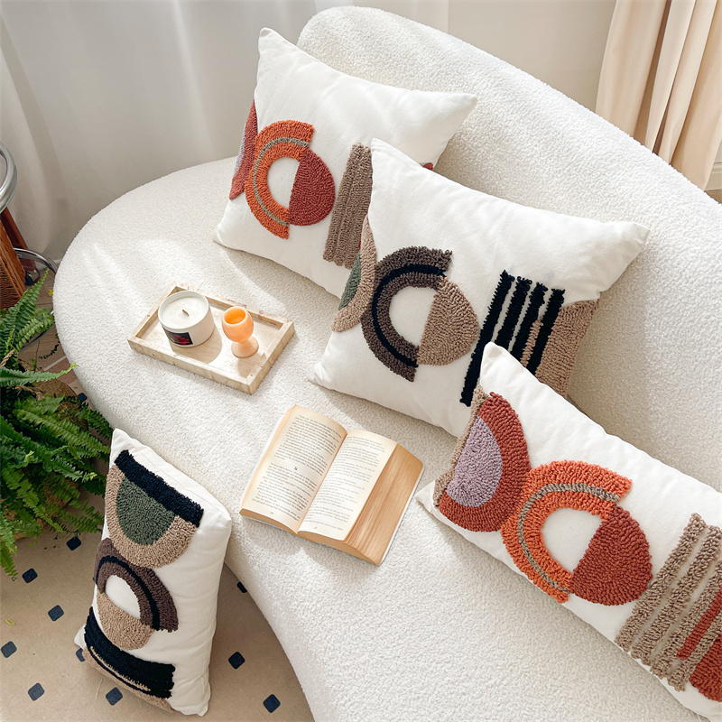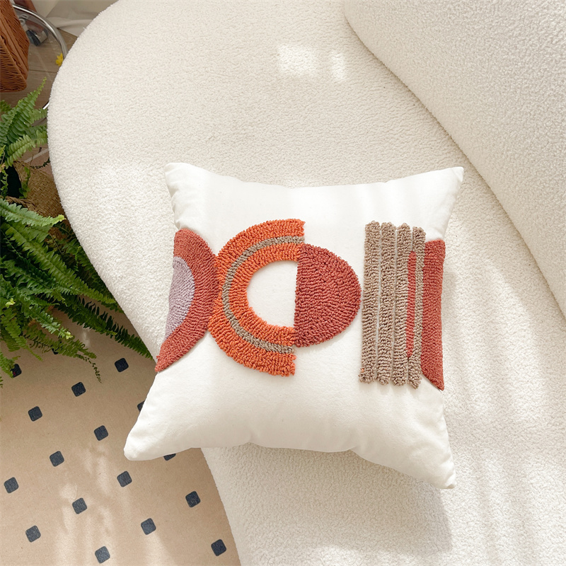 (总)918拾朵家居 2023新款简约风圈绒刺绣抱枕,灰咖(方),灰咖(长),洋橘(方),洋橘(长)
