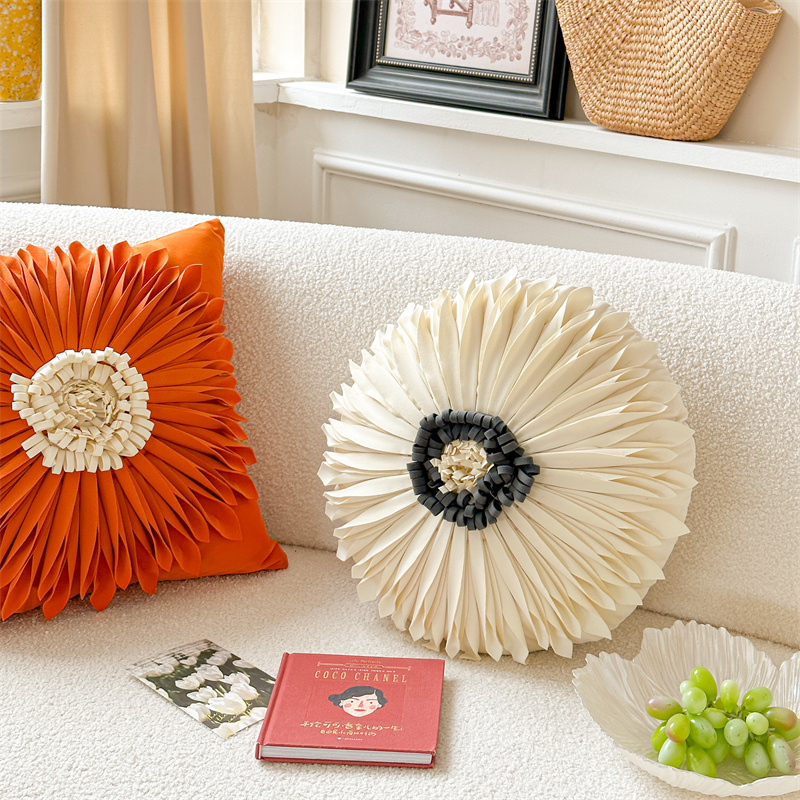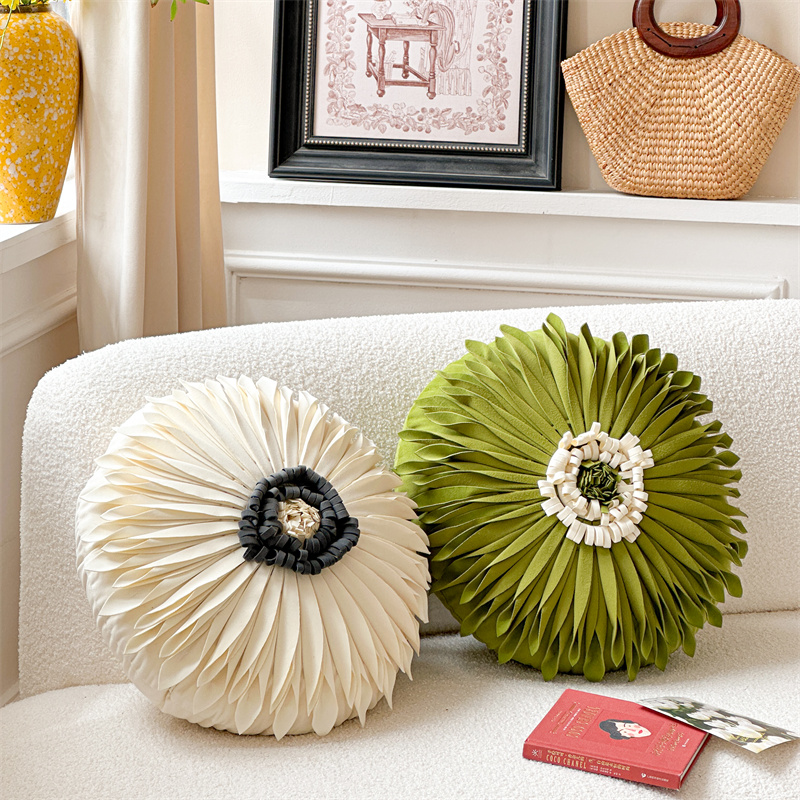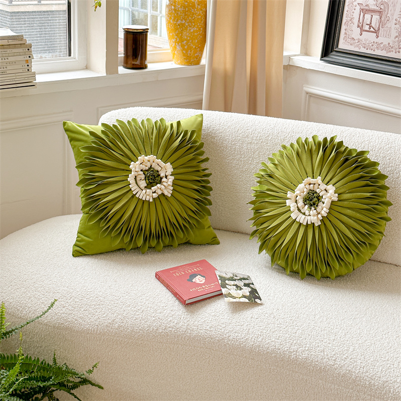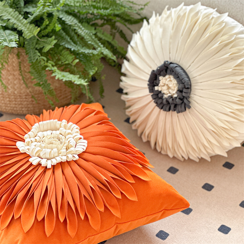 (总)918拾朵家居 2023新款网红手工立体花朵抱枕 1,白(圆),橘(方),绿(方),绿(圆)