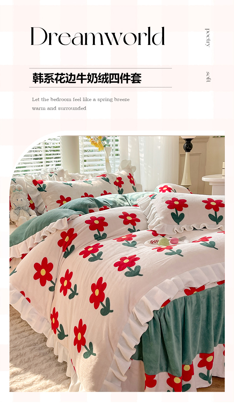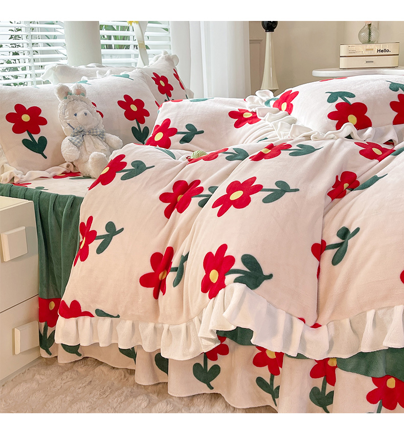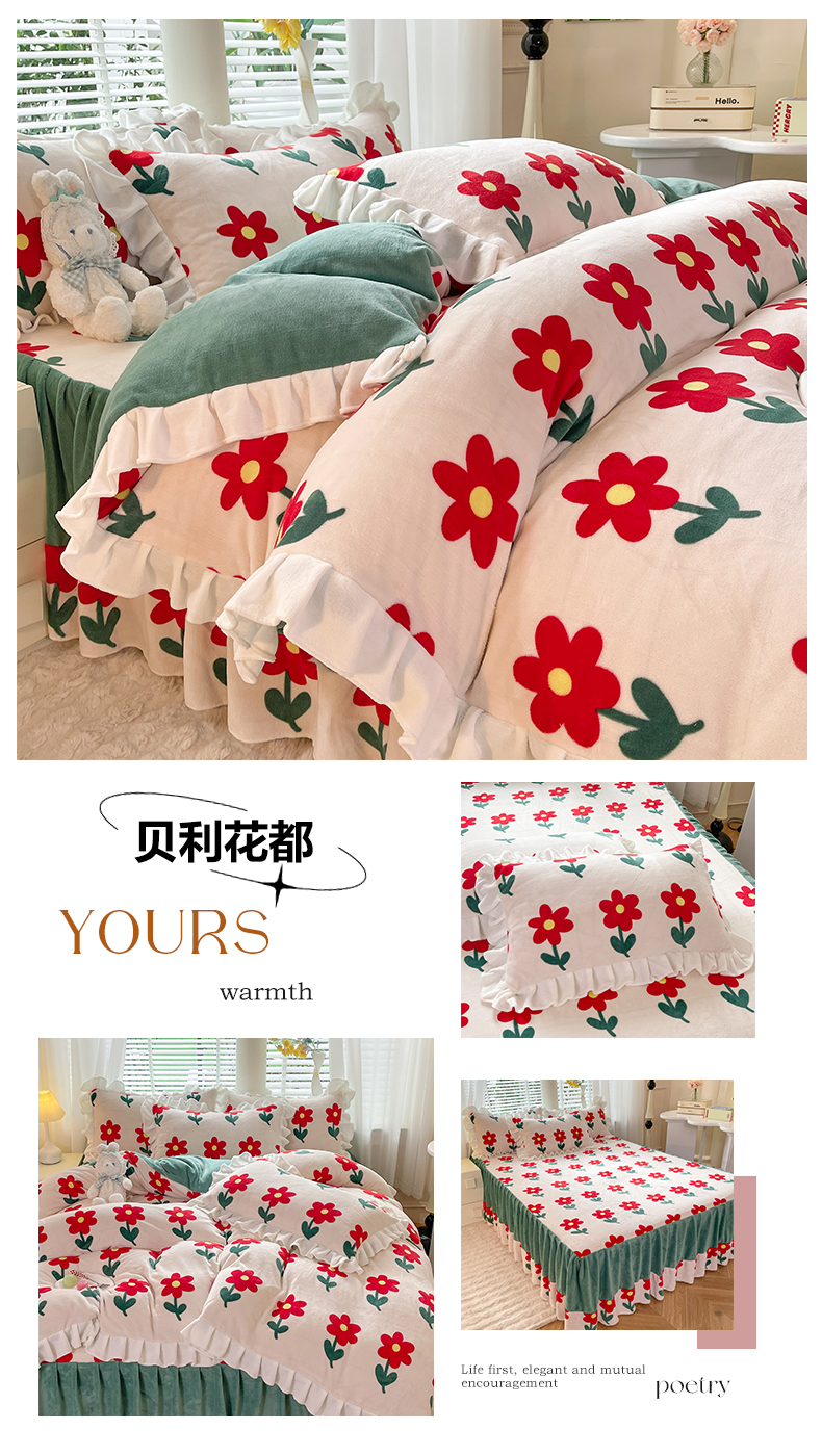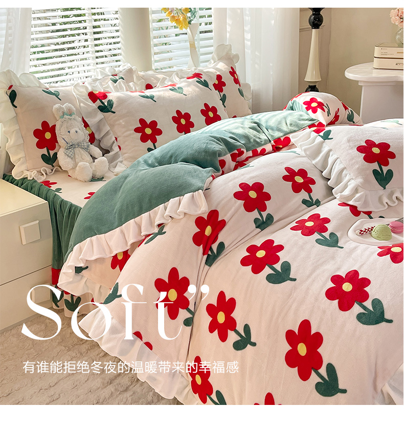 (总)金盛皇朝家纺 2024新款双层花边牛奶绒夹棉床盖四件套,繁花米兔,花影如梦,萌宝熊猫,甜甜宝贝,兔兔吉祥,心心相印,悠悠米咖,紫韵格调