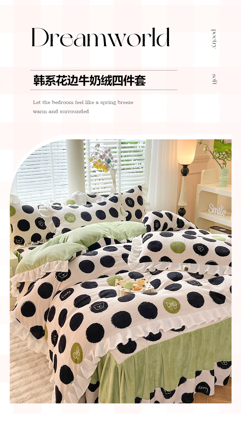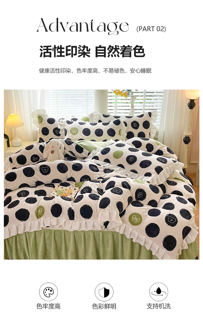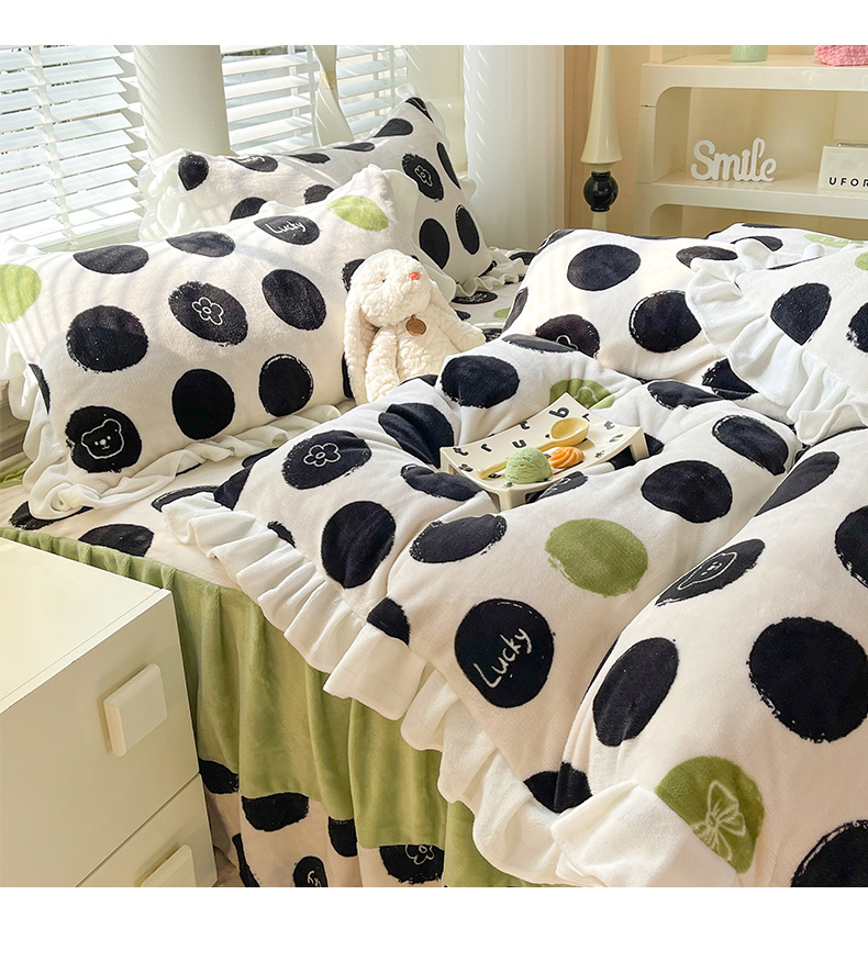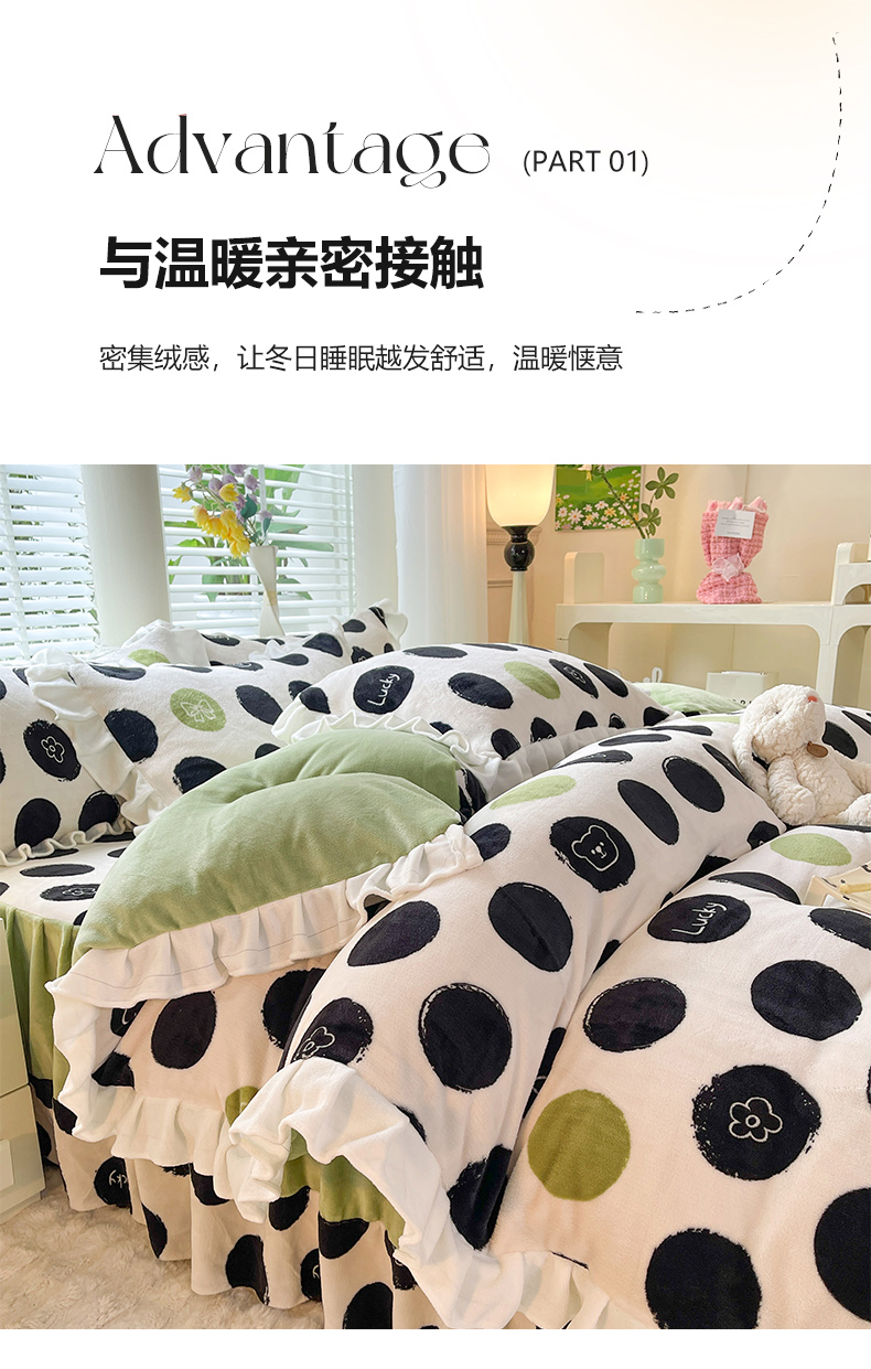 商品名称:金盛皇朝家纺 2023高克重牛奶绒韩版花边床裙款四件套 幸运熊熊