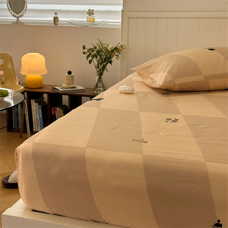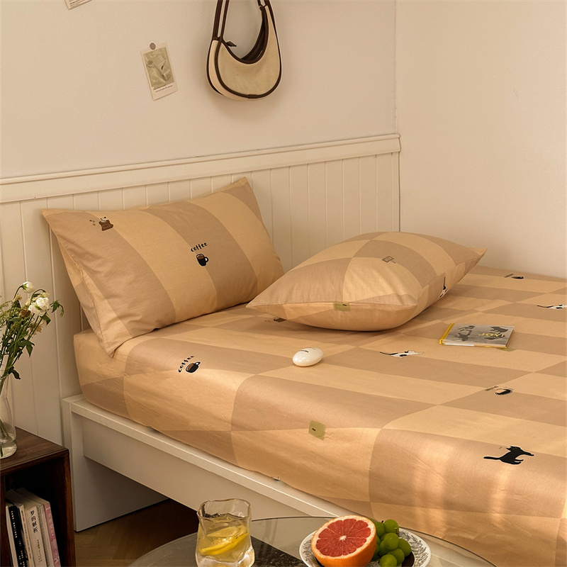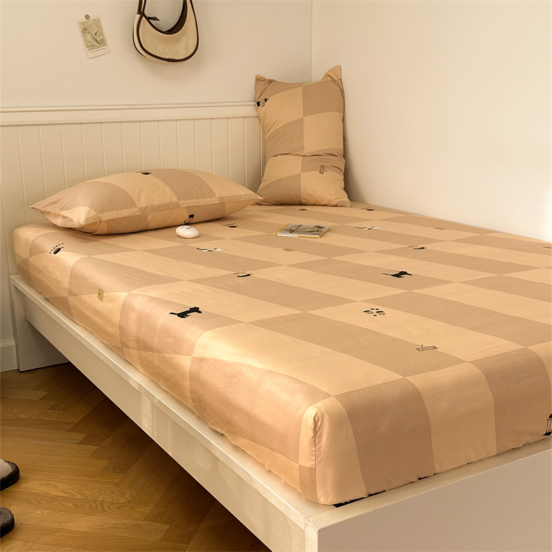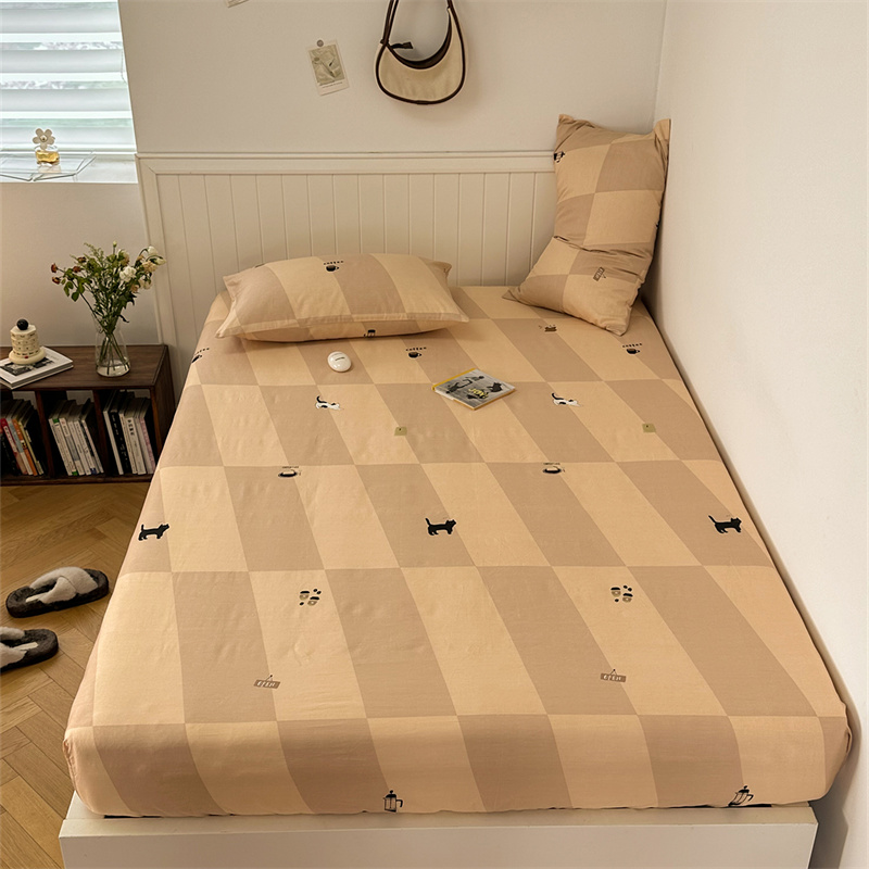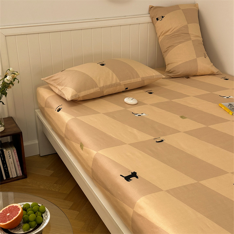 洋铭区 2023新款全棉单品床笠猫咪橙