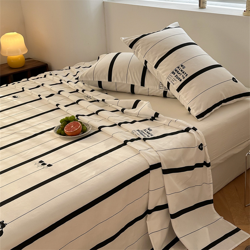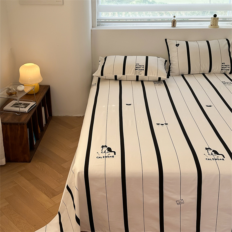 商品名称:洋铭区 2023新款全棉单品床单条纹小猫