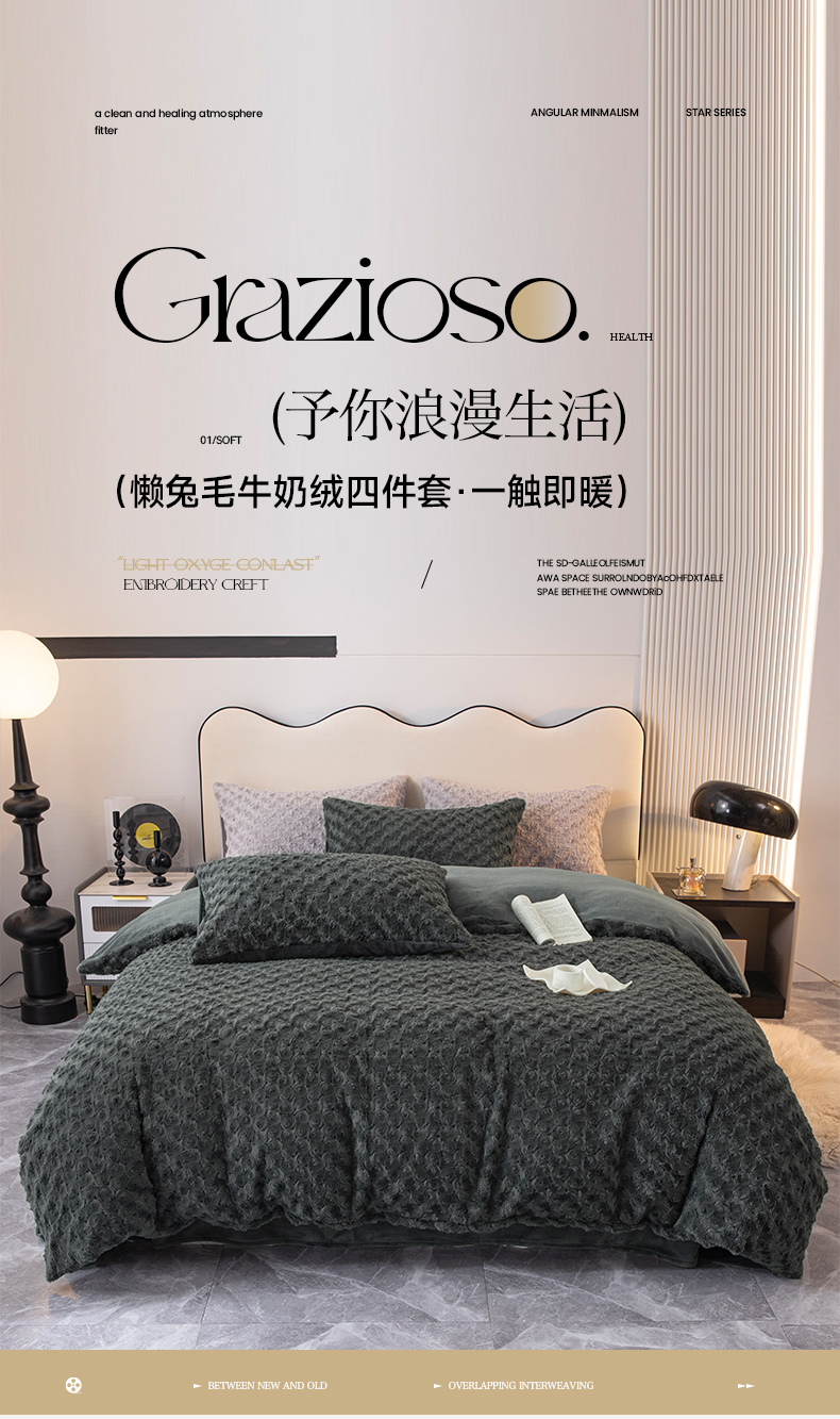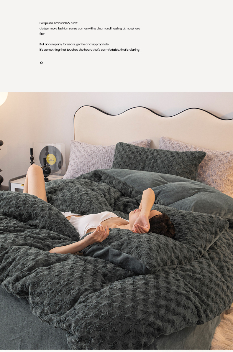 当前位置: 91家纺网 > 商品网购 > 床品套件 > 四件套 > 牛奶绒四件套 > 寐眠 2023新款懒兔毛牛奶绒四件套玫瑰 慵懒炭灰