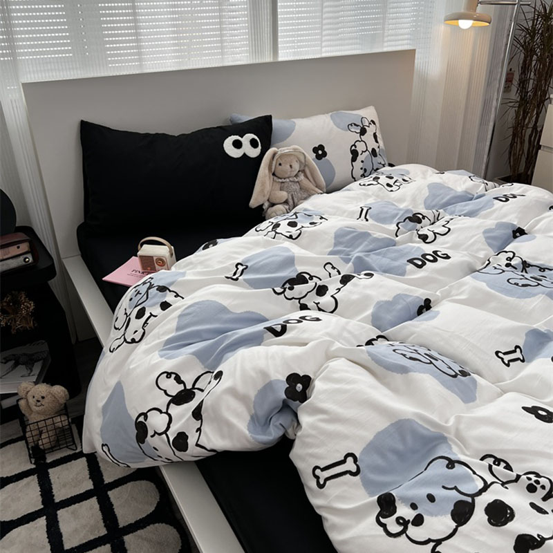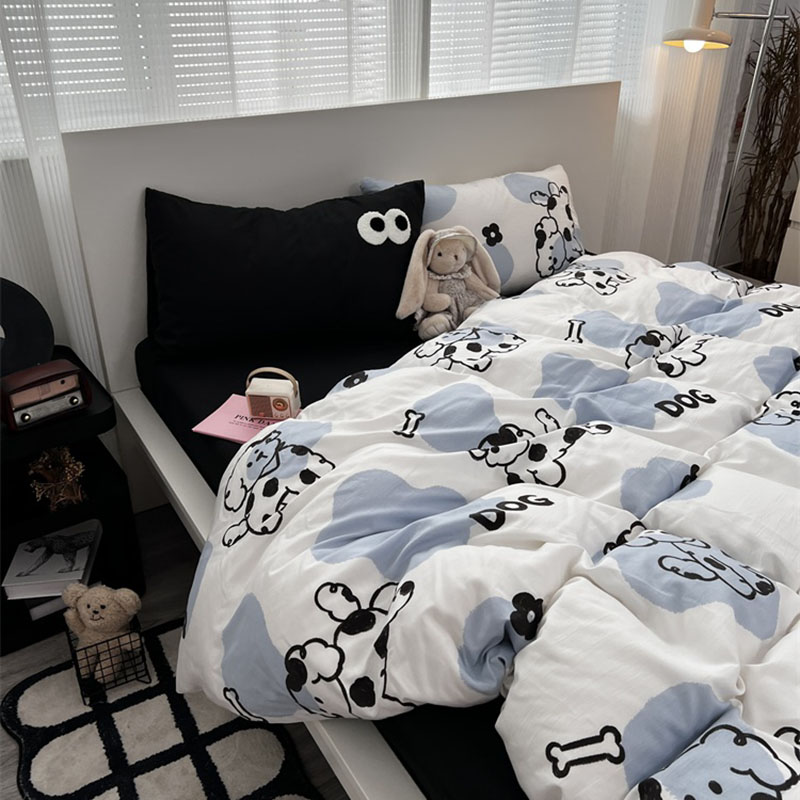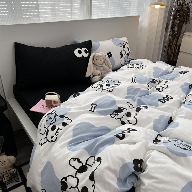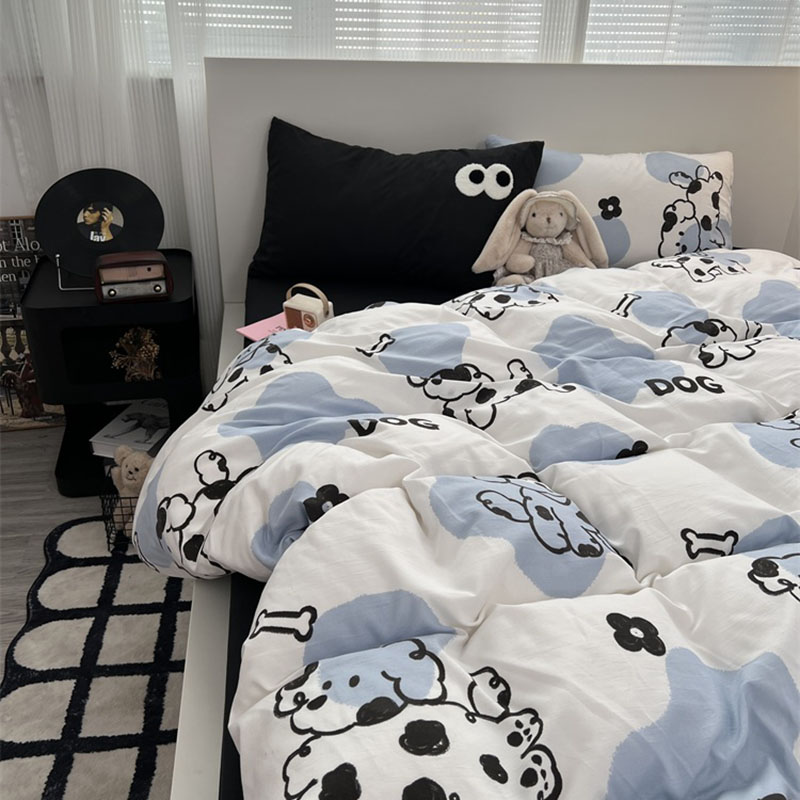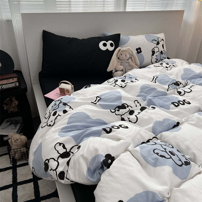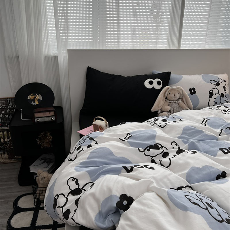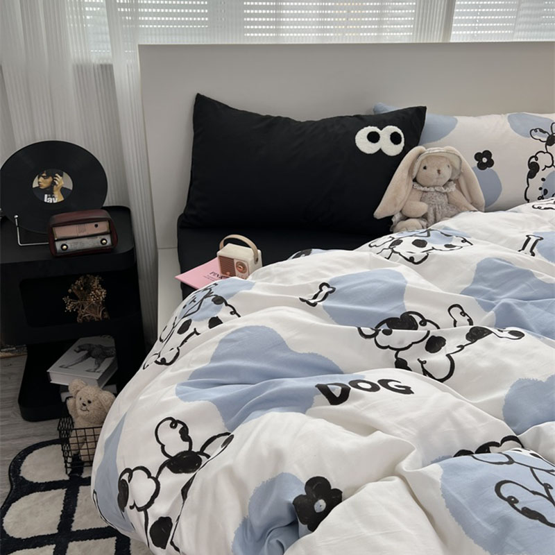 当前位置: 91家纺网 > 商品网购 > 床品套件 > 四件套 > 水洗棉四件套 > 奈颜 2023新款爆款水洗棉双层纱毛巾绣甜酷风四件套-大眼(手机实拍) 甜酷涂鸦狗-黑