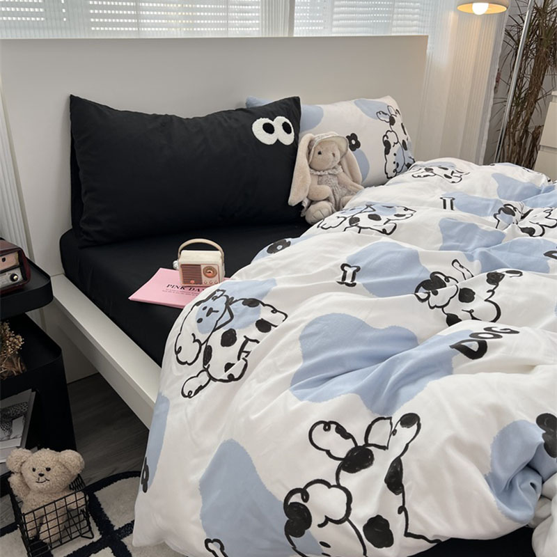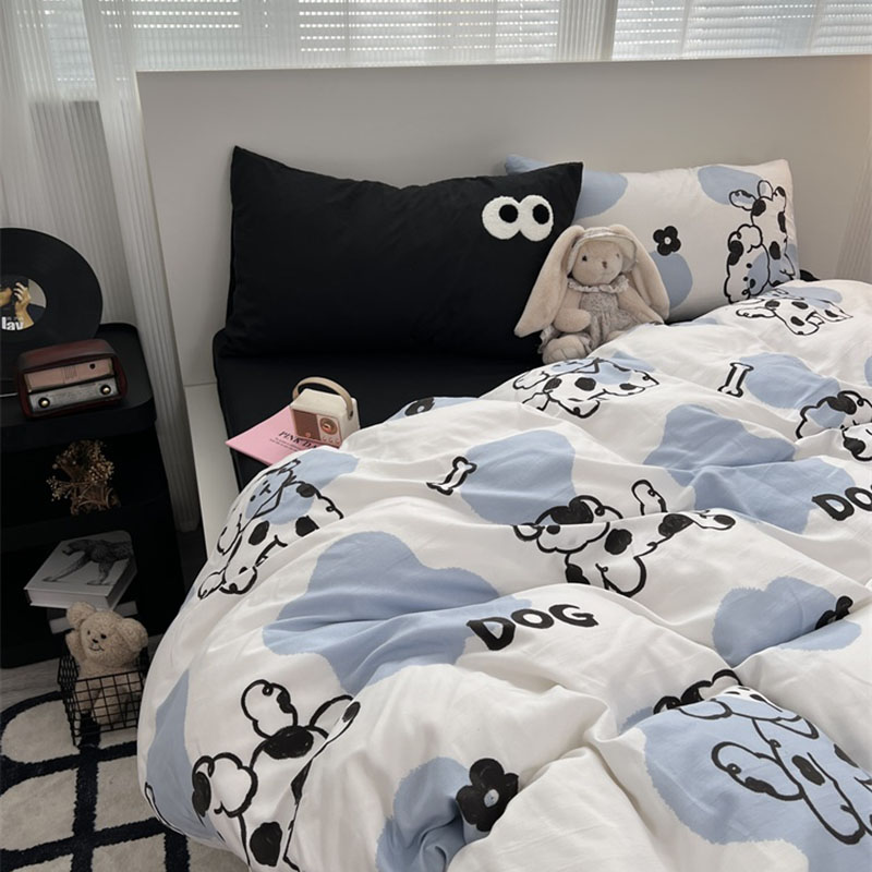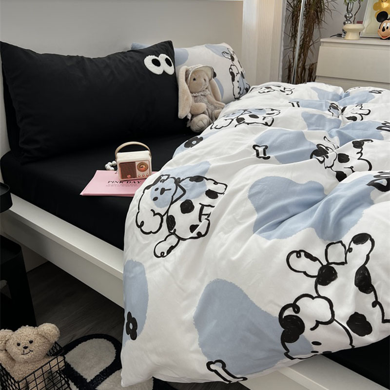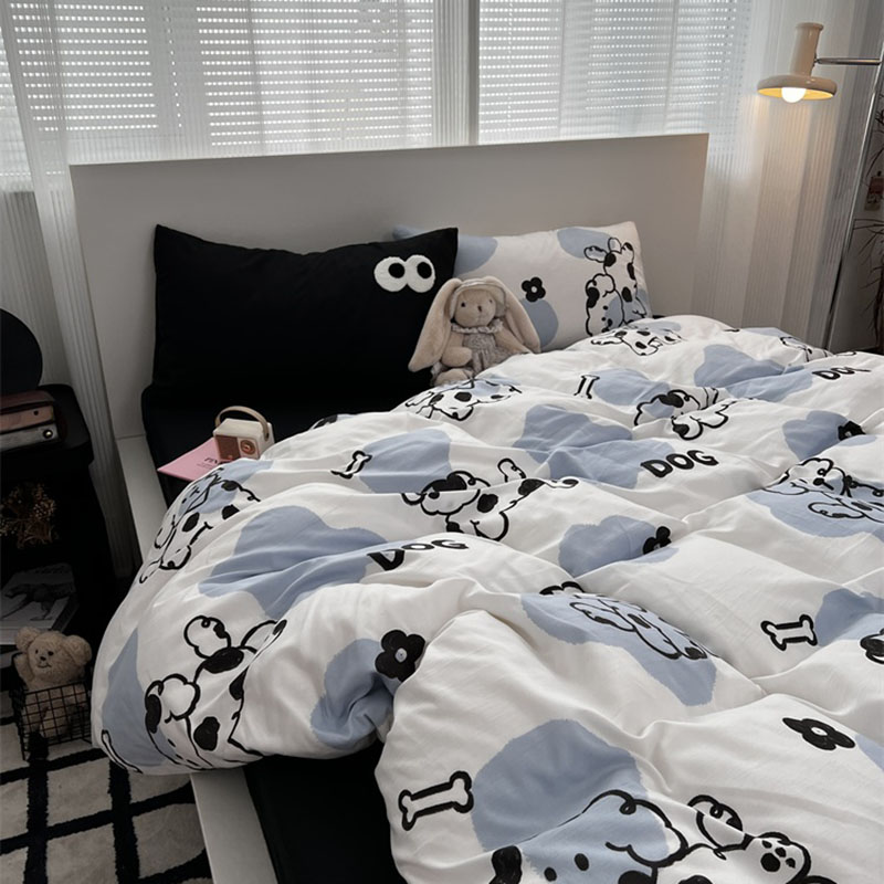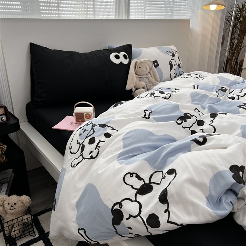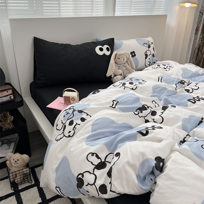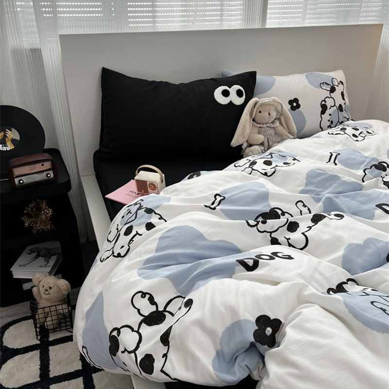当前位置: 91家纺网 > 商品网购 > 床品套件 > 四件套 > 水洗棉四件套 > 奈颜 2023新款爆款水洗棉双层纱毛巾绣甜酷风四件套-大眼(手机实拍) 甜酷涂鸦狗-黑