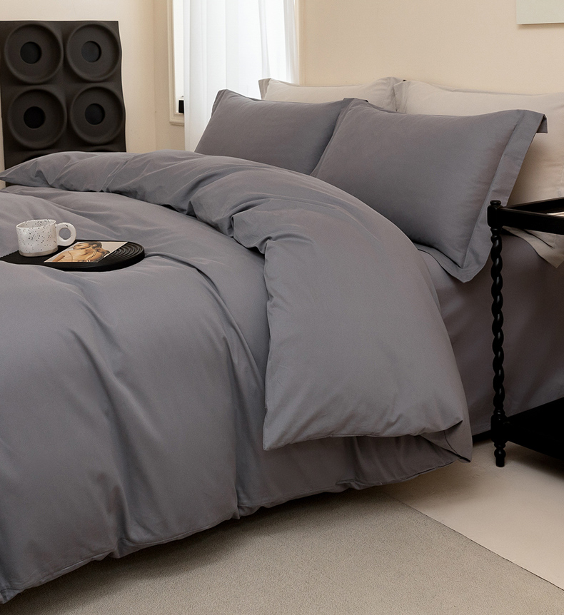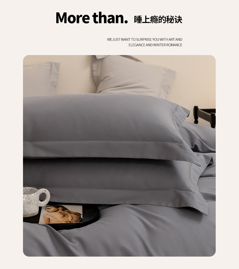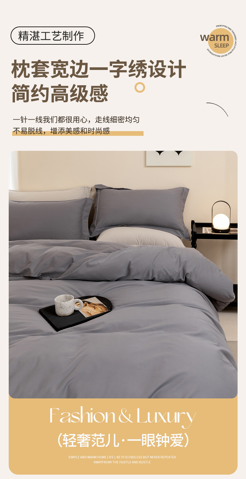 ONE TWO ONE 121 2023新款A类高支高密长绒棉一字绣宽边磨毛四件套 深邃灰