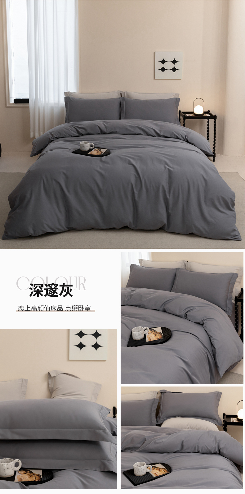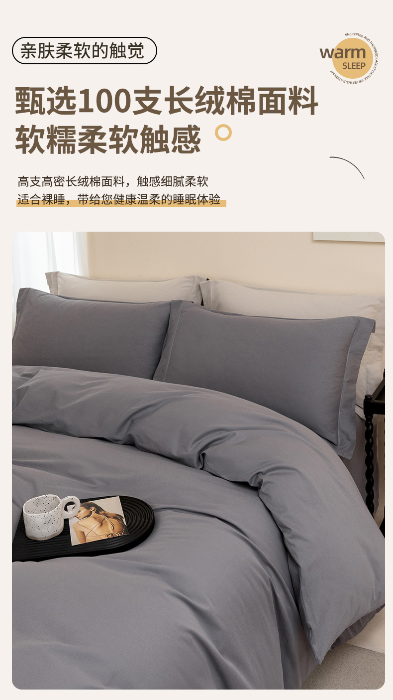 商品名称:ONE TWO ONE 121 2023新款A类高支高密长绒棉一字绣宽边磨毛四件套 深邃灰
