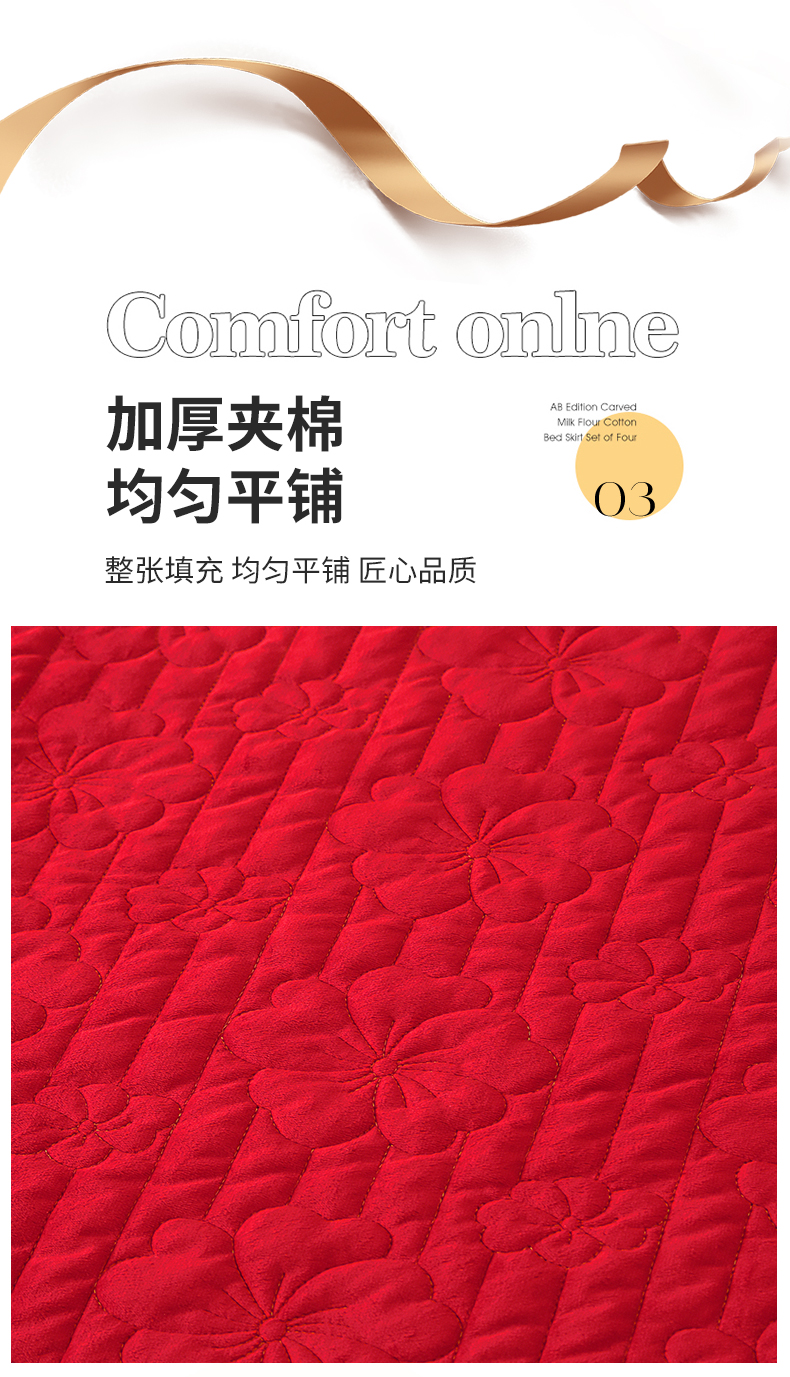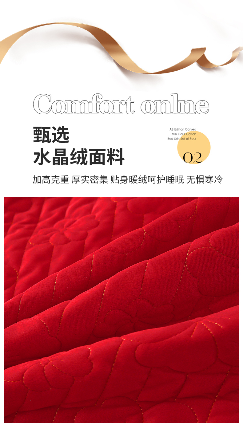 (总)屹成家纺2025新款水晶绒夹棉绗缝床裙四件套(塞纳河畔)四件套起售价不低于230元,大红,豆沙,翡翠绿,粉玉,橄榄绿,蔚蓝,银灰