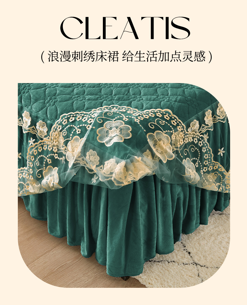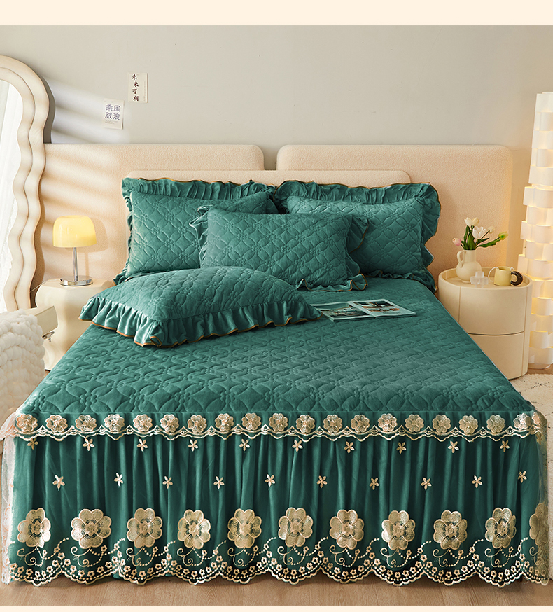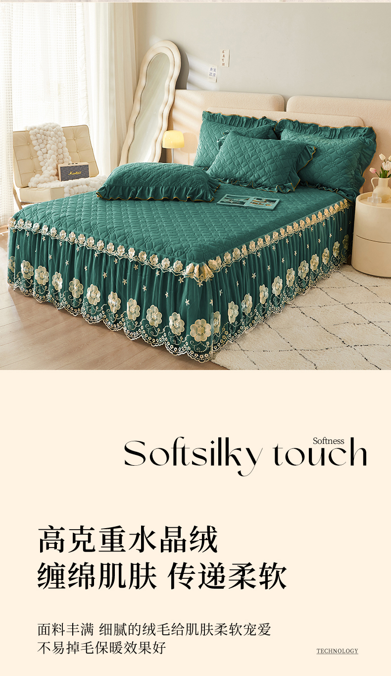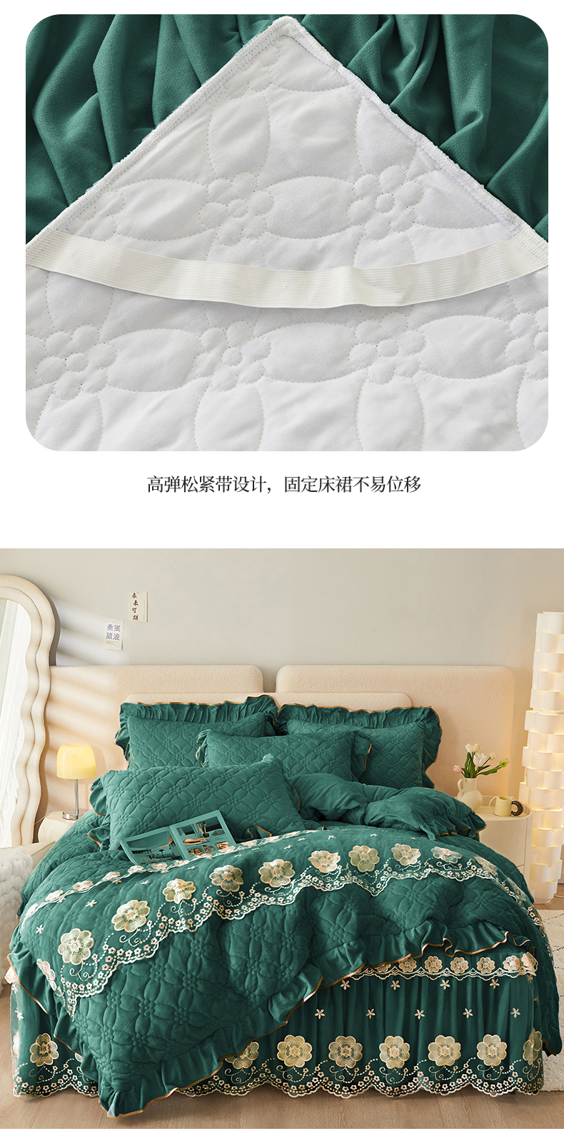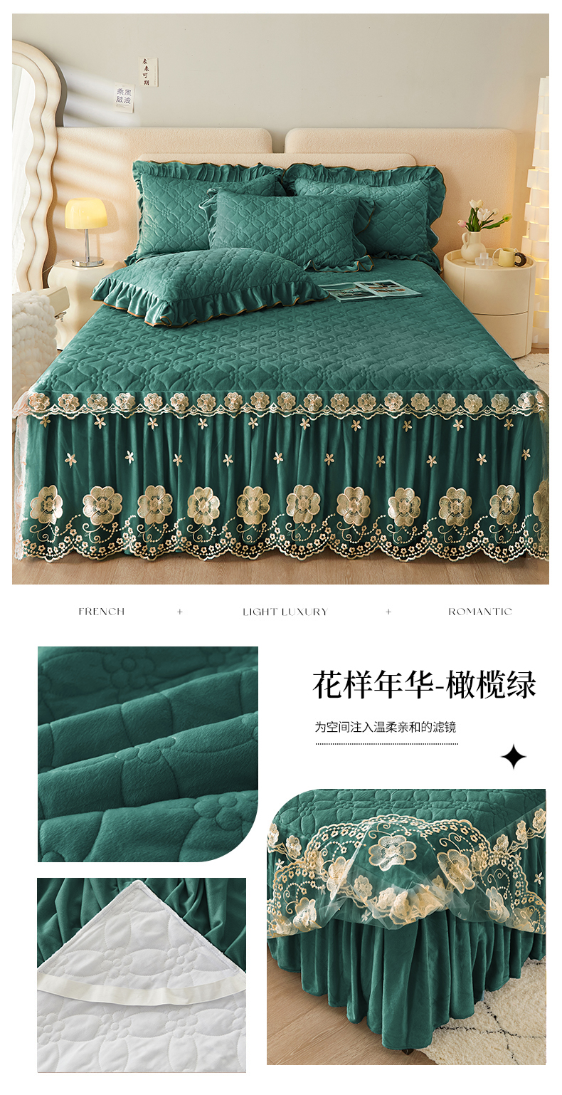 当前位置: 91家纺网 > 商品网购 > 床品套件 > 四件套 > 全棉普通四件套 > 罗艺轩 2024秋冬新款水晶绒花样年华全夹棉加厚床裙四件套 花样年华-橄榄绿