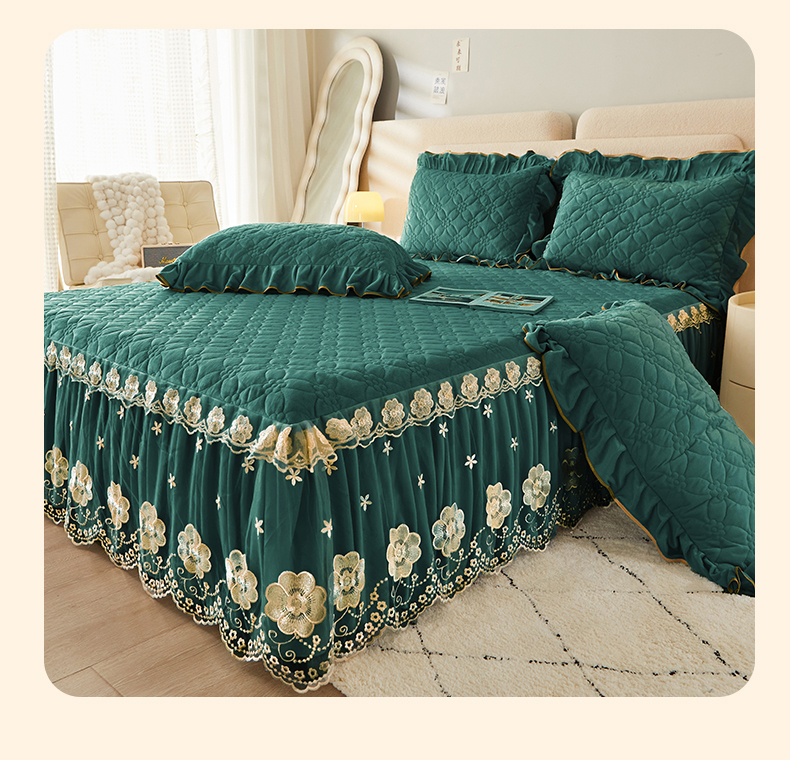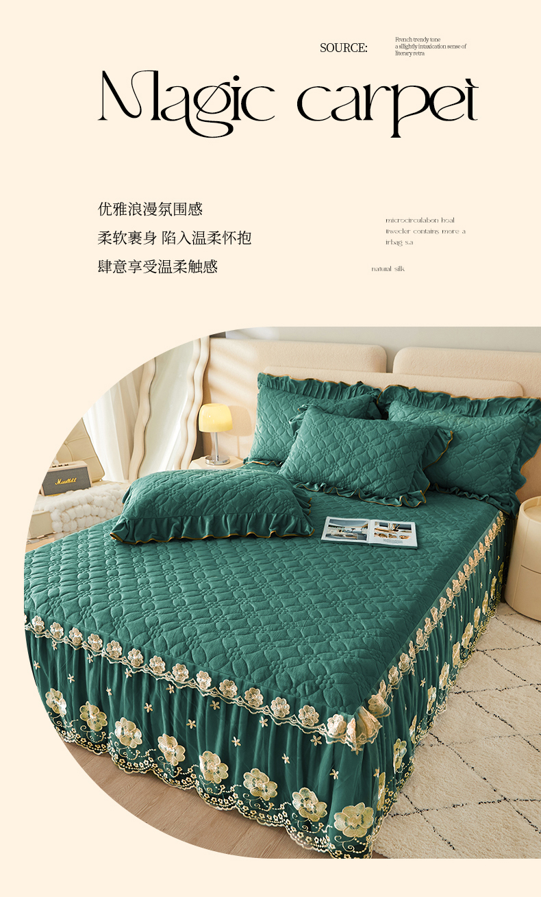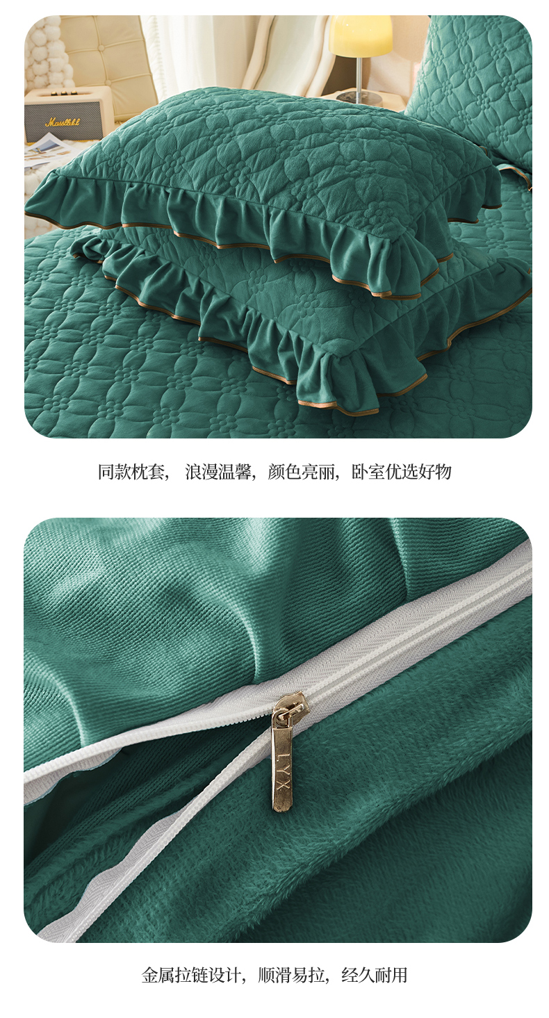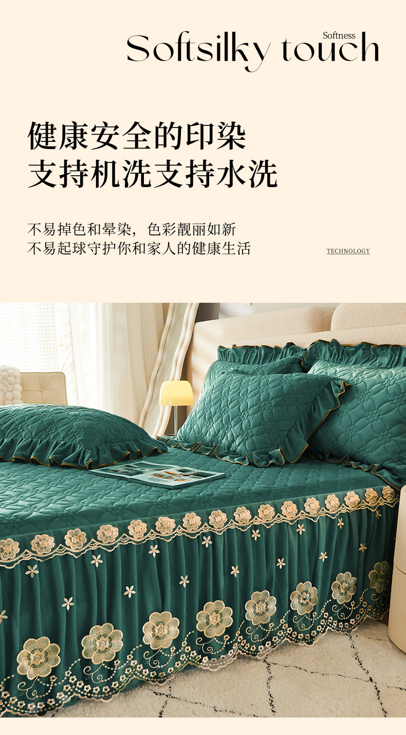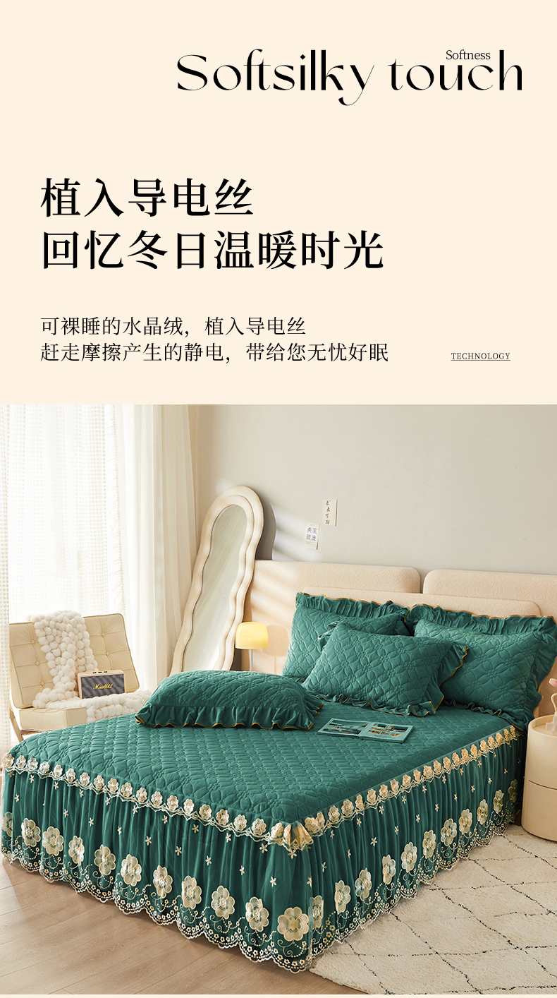 当前位置: 91家纺网 > 商品网购 > 床品套件 > 四件套 > 全棉普通四件套 > 罗艺轩 2024秋冬新款水晶绒花样年华全夹棉加厚床裙四件套 花样年华-橄榄绿