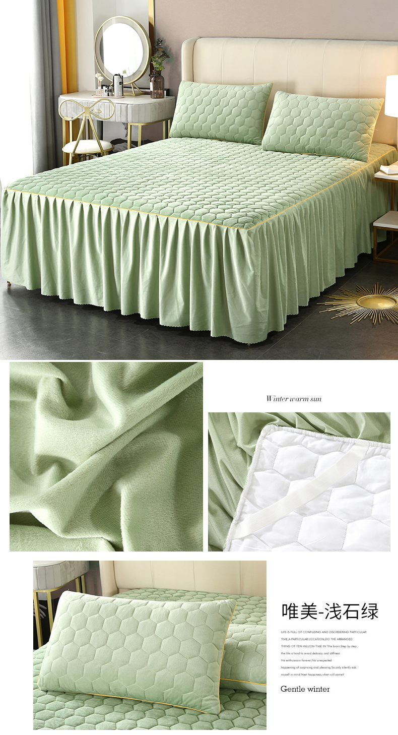 商品名称:胜权家纺 2023新款牛奶绒纯色夹棉单床裙单件保暖三件套席梦思床护垫 唯美-浅石绿