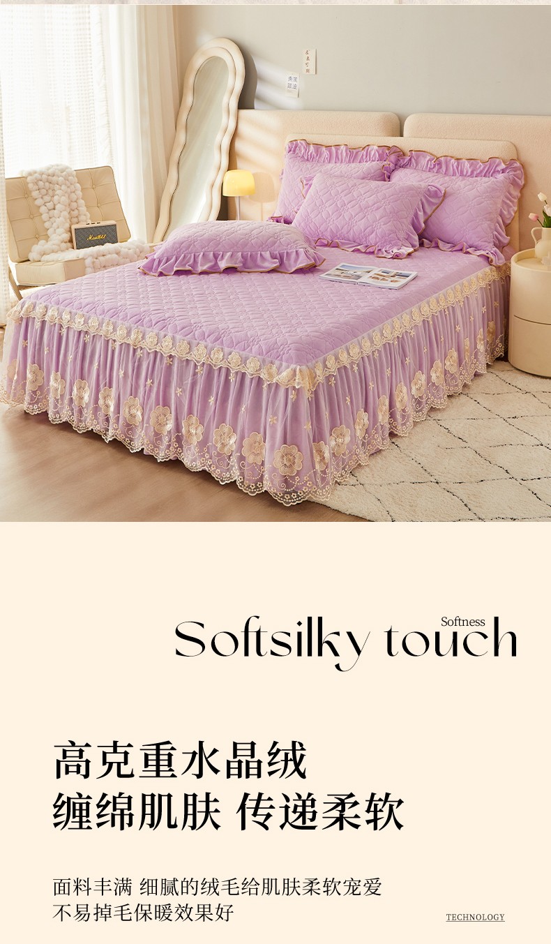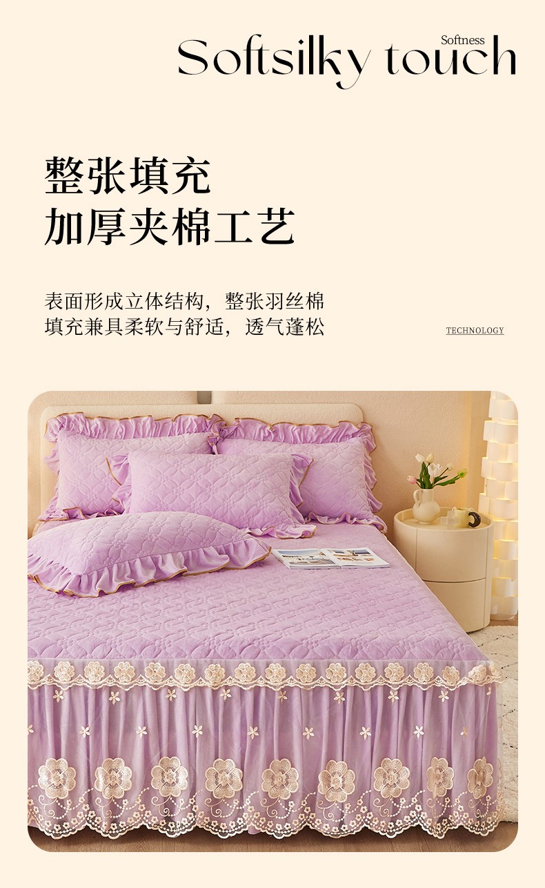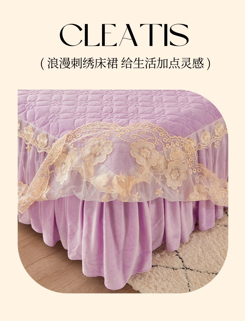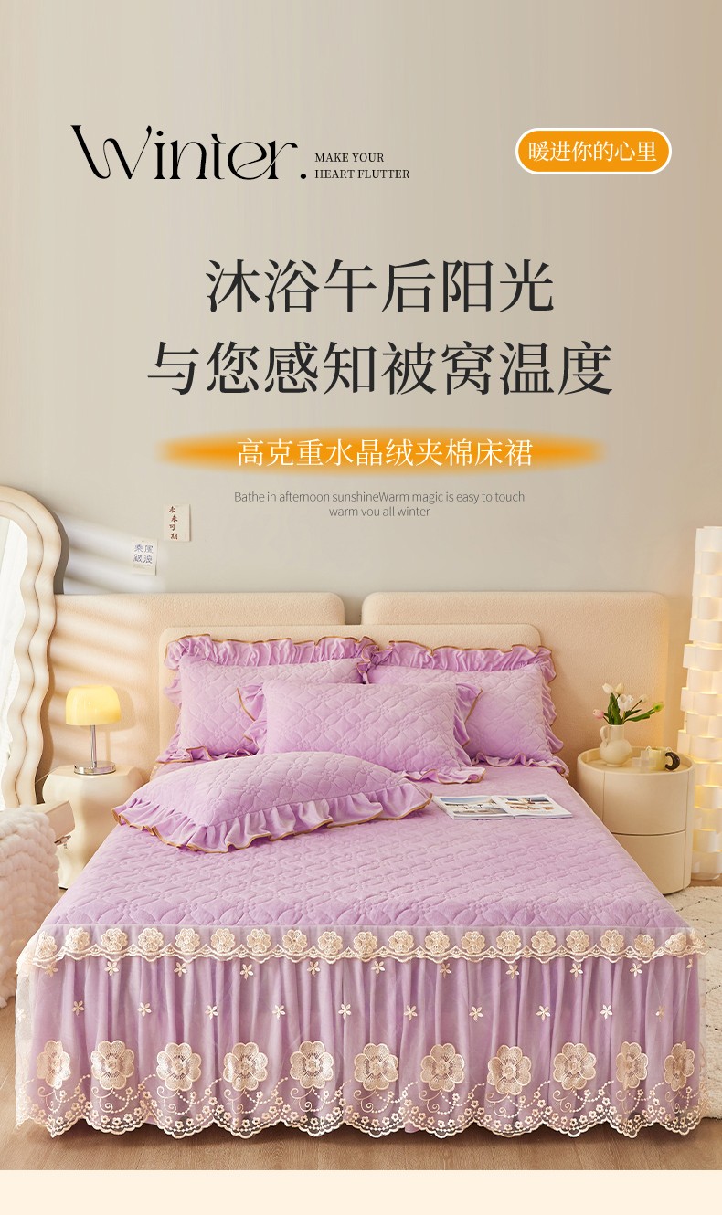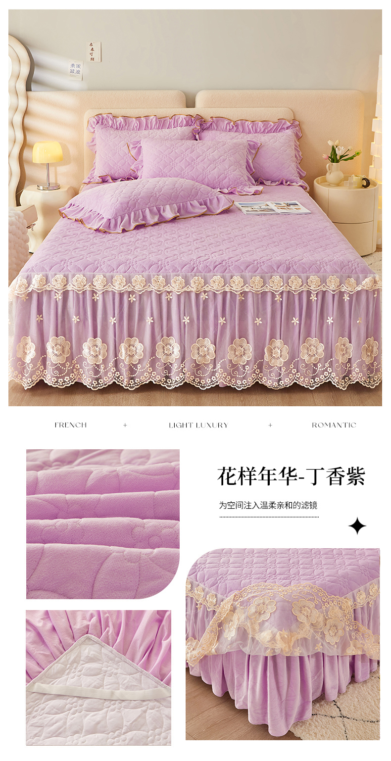 • 91家纺网 家纺一手货源 找家纺 罗艺轩 2024秋冬新款水晶绒花样年华全夹棉加厚床裙三件套 花样年华-丁香紫