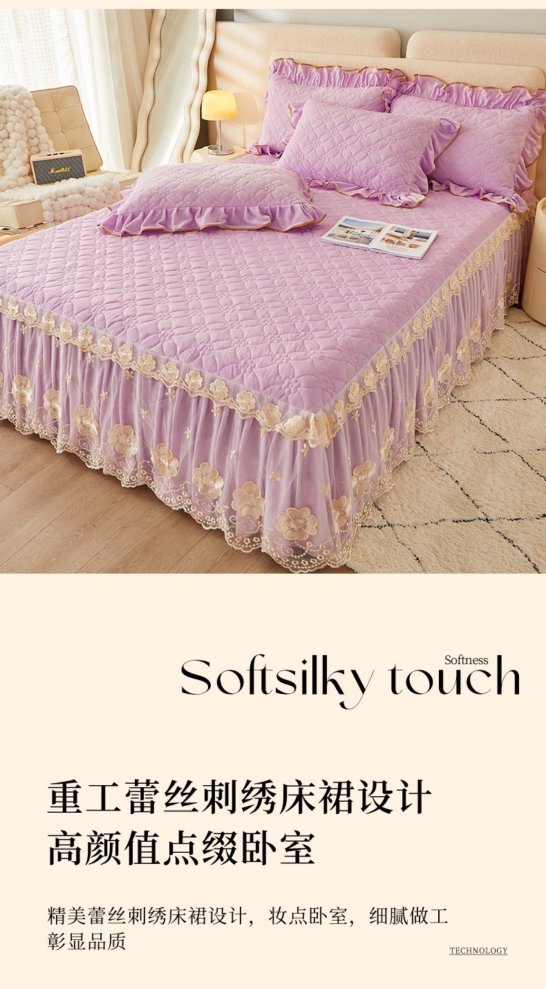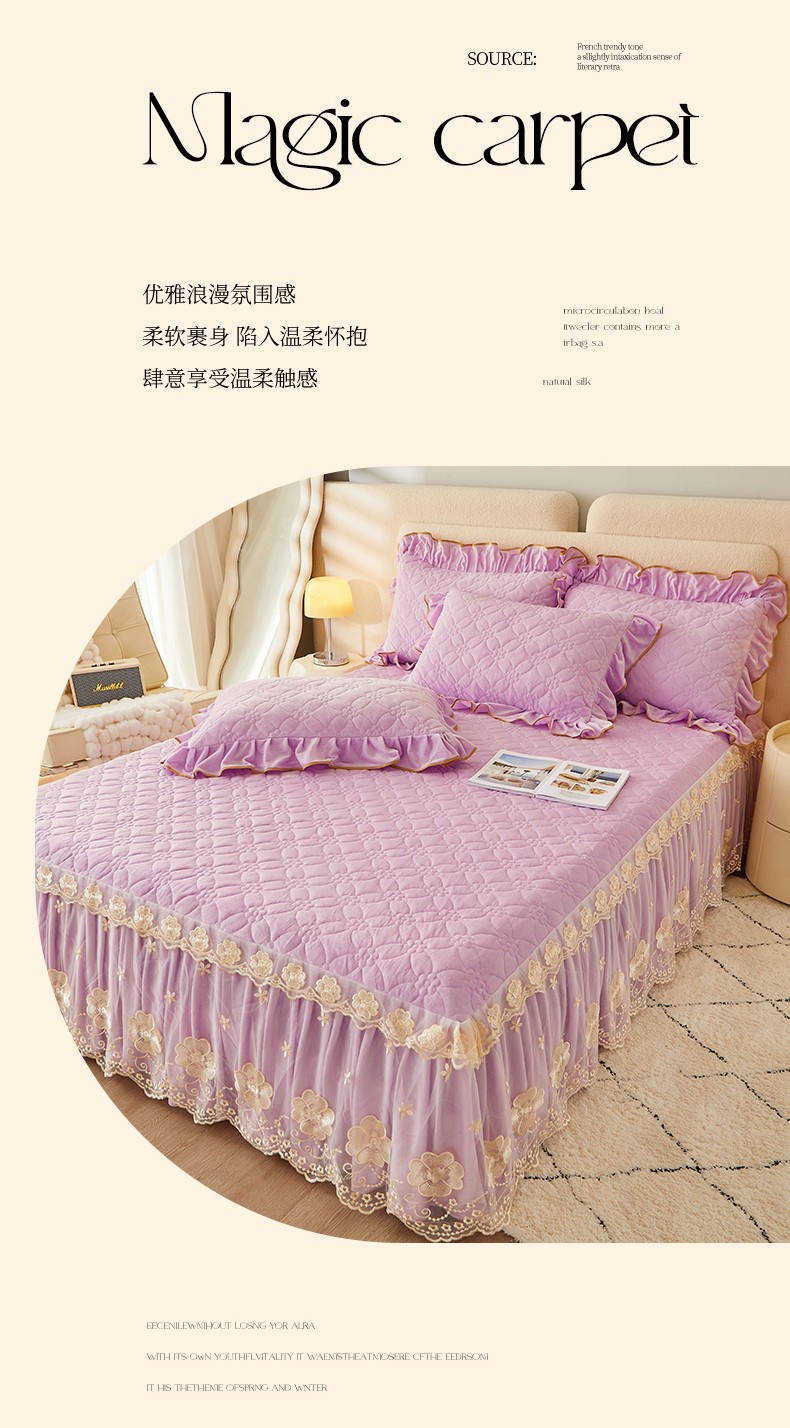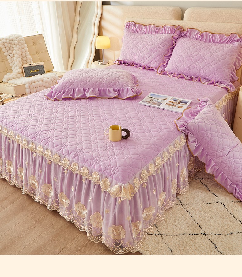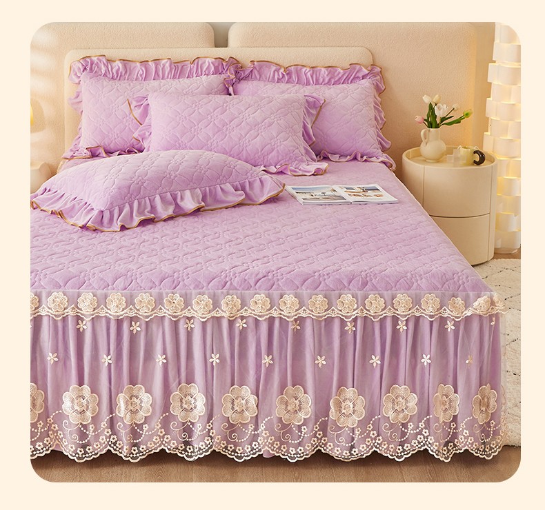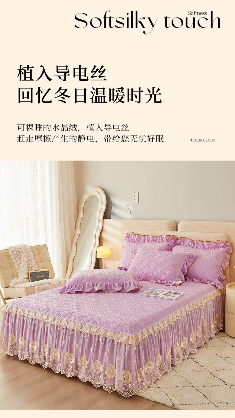 • 91家纺网 家纺一手货源 找家纺 罗艺轩 2024秋冬新款水晶绒花样年华全夹棉加厚床裙三件套 花样年华-丁香紫