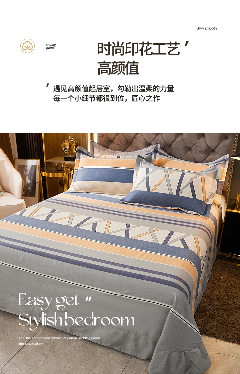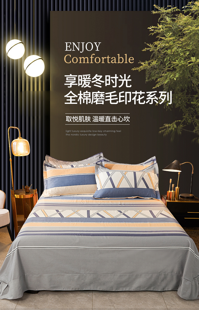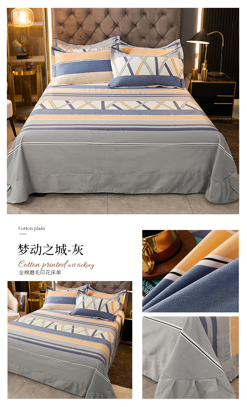 • 91家纺网 家纺一手货源 找家纺 伊而梦 2023新款全棉磨毛印花四件套系列单品床单 梦动之城-灰