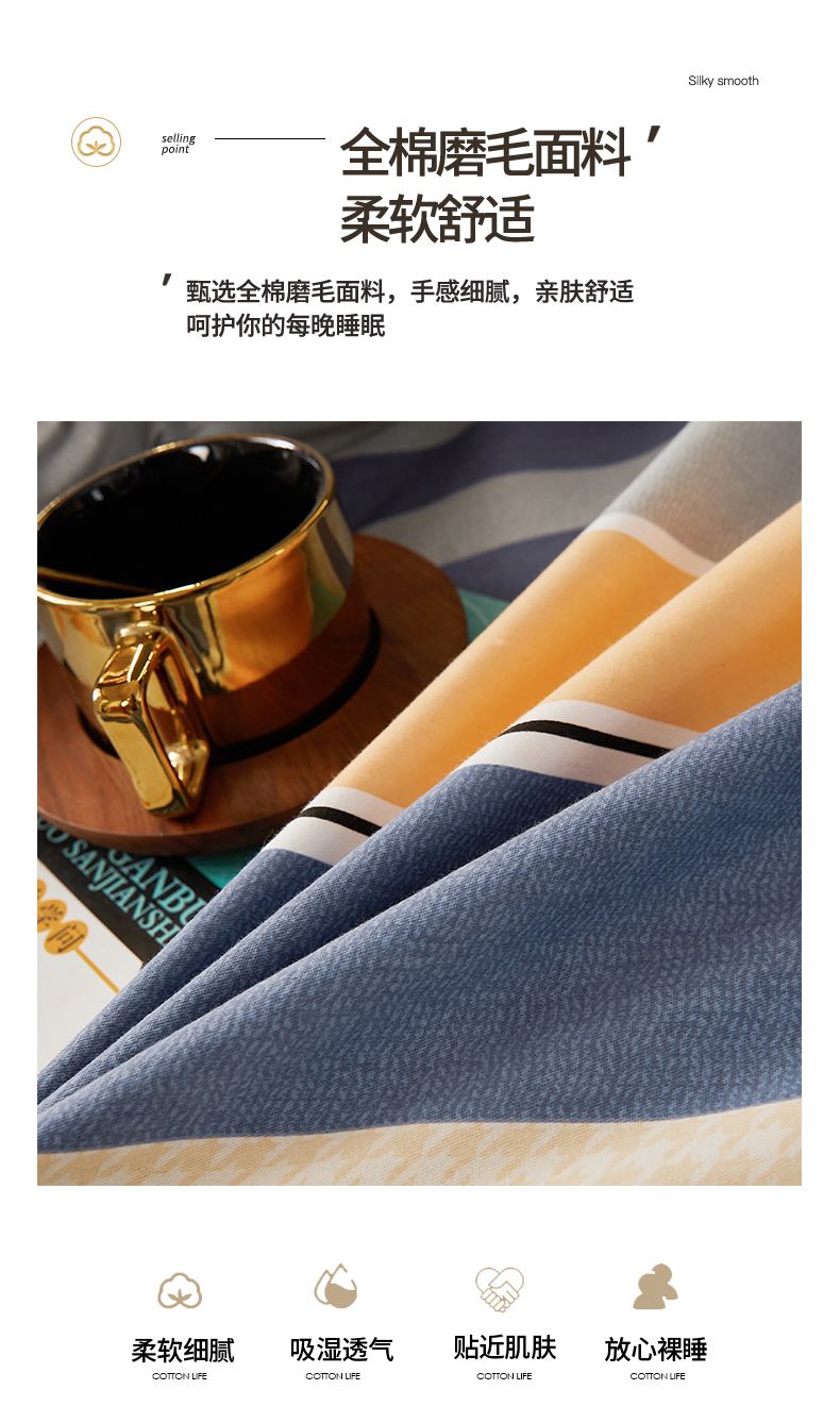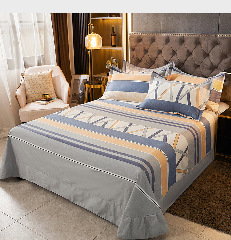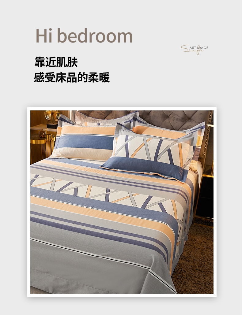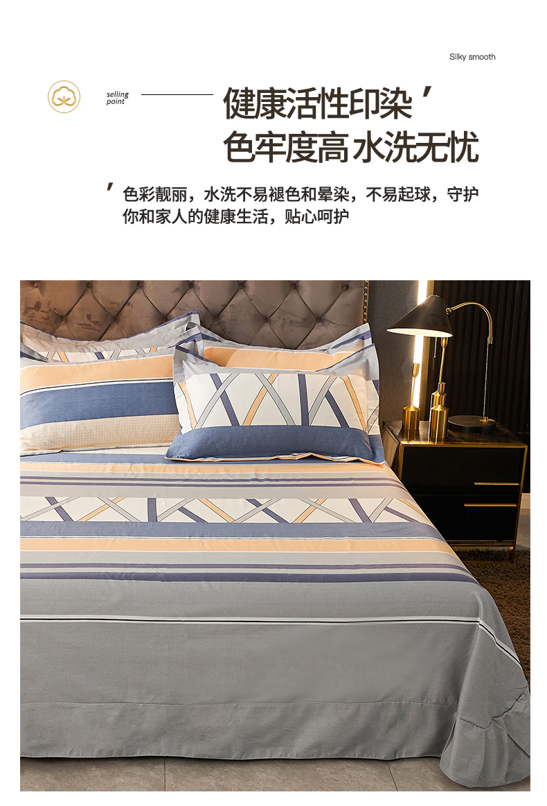 • 91家纺网 家纺一手货源 找家纺 伊而梦 2023新款全棉磨毛印花四件套系列单品床单 梦动之城-灰