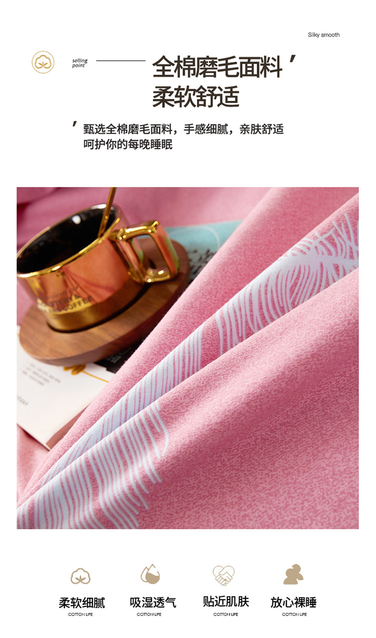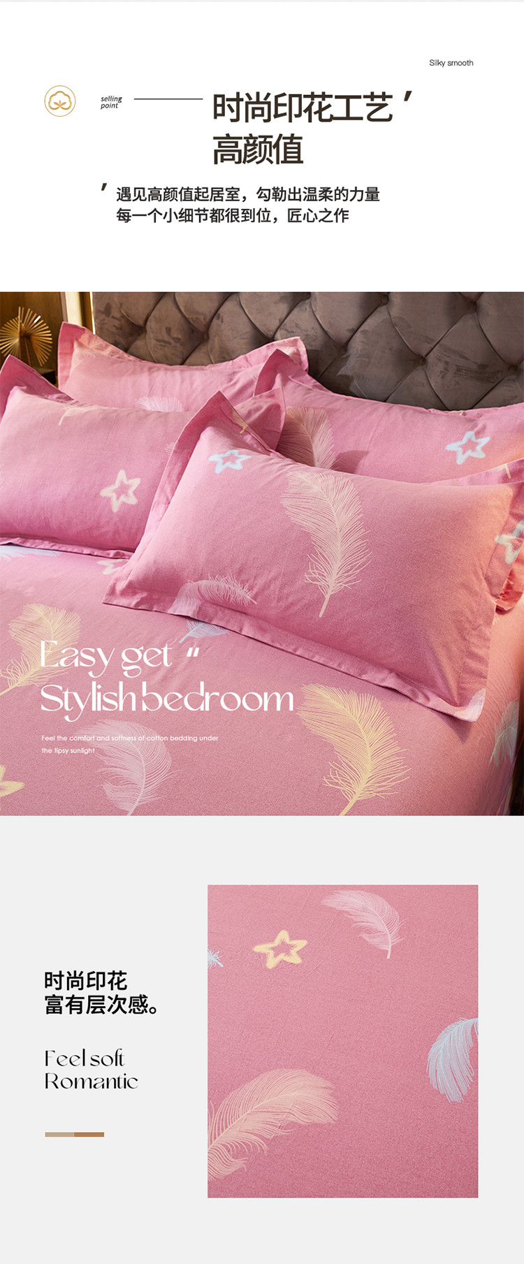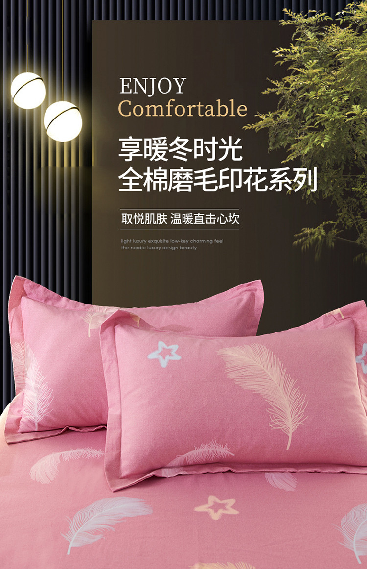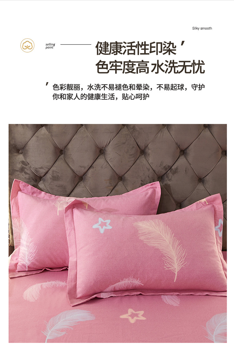 商品名称:伊而梦 2023新款全棉磨毛印花四件套系列单品枕套 梦之羽-粉