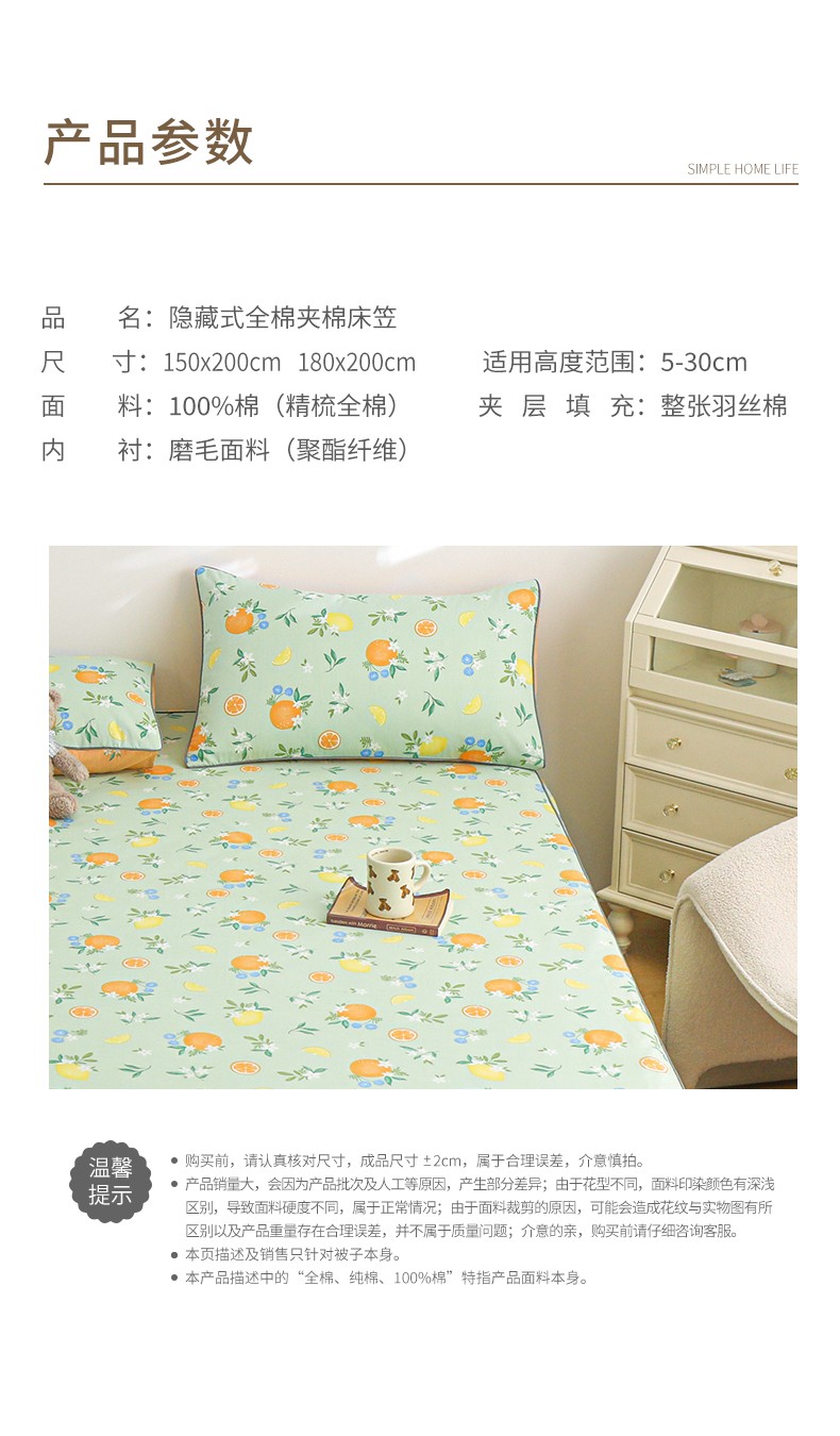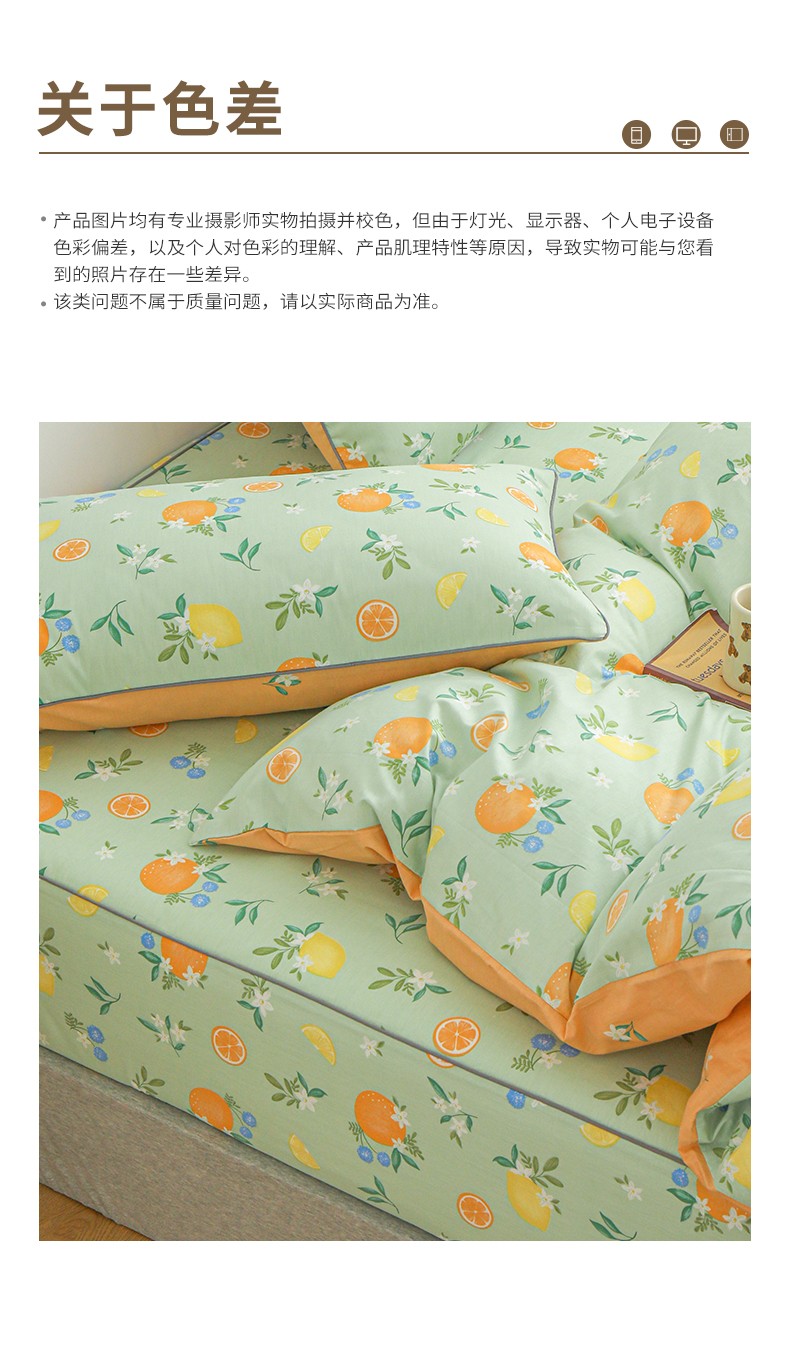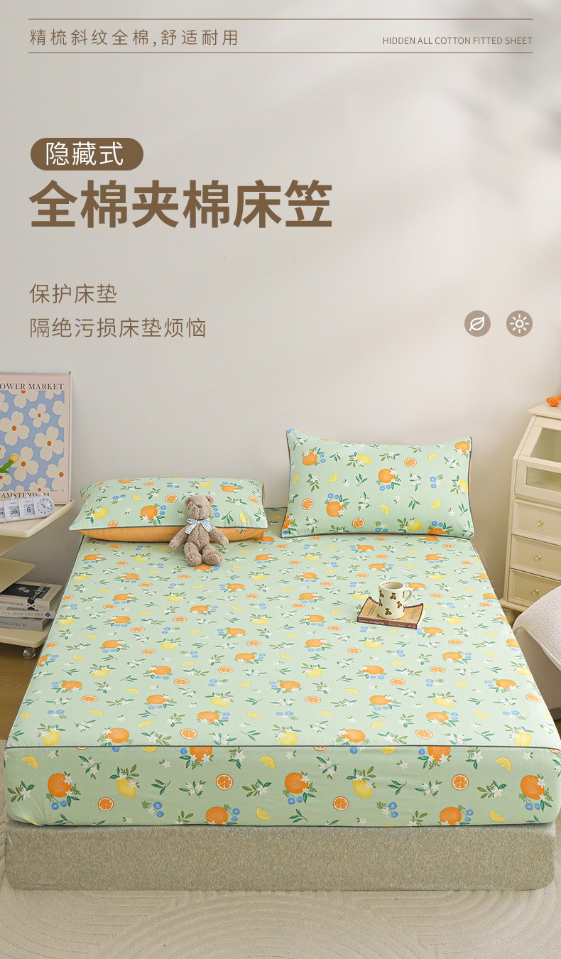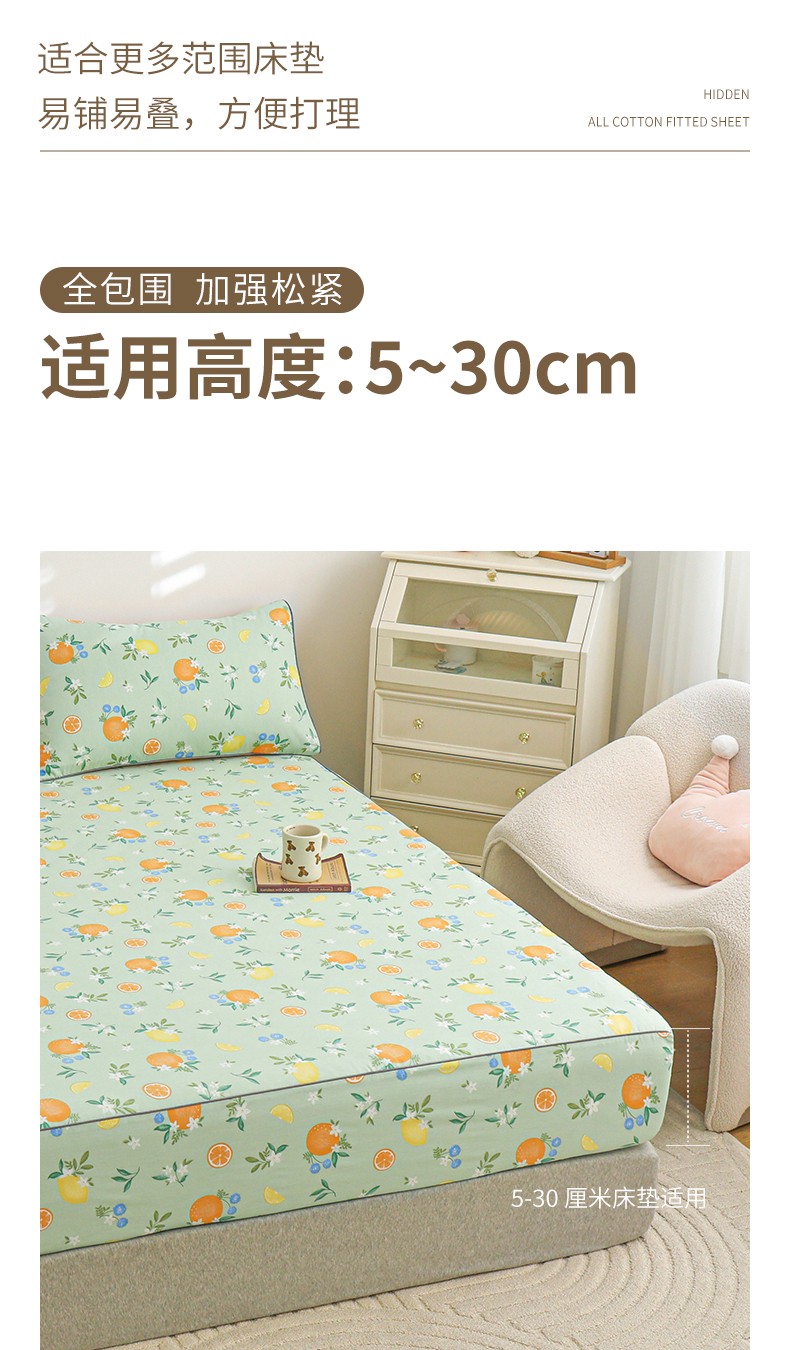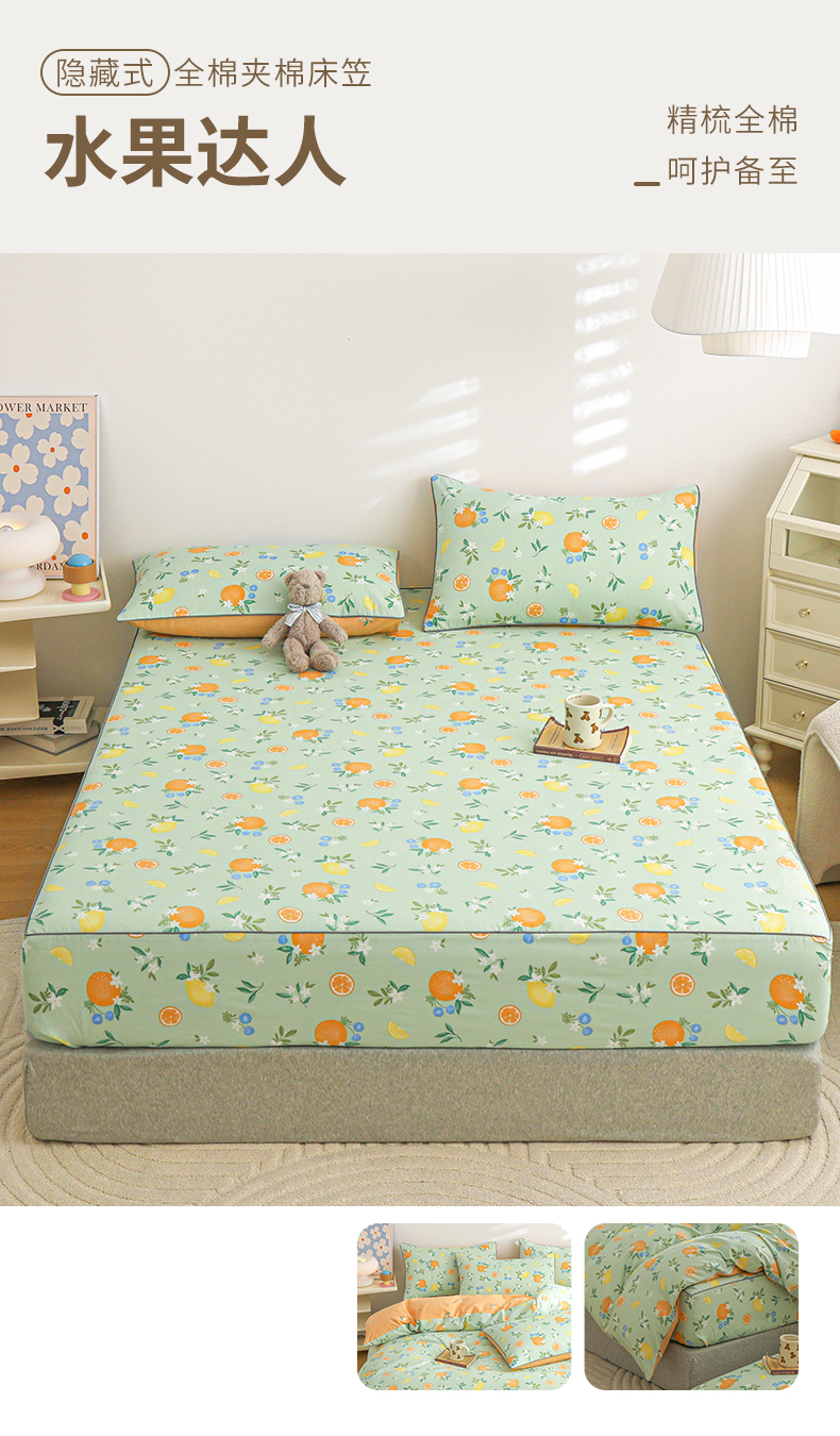 商品名称:元元 2024新款13372加密精梳全棉单品套件系列-单床笠 水果达人